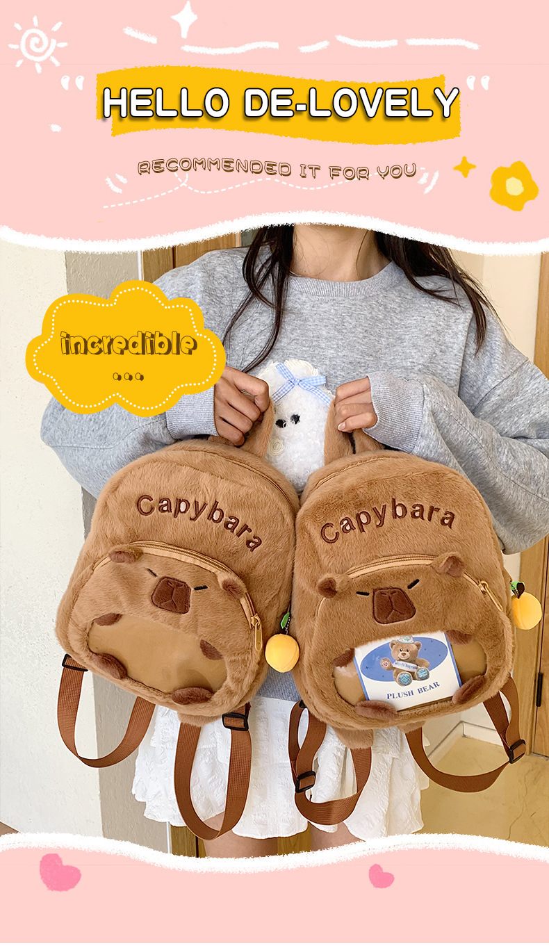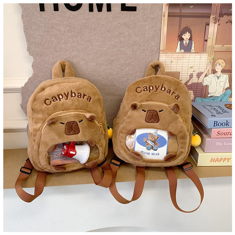 Mochila infantil de peluche Kapibara lindas mochila de niña caricatura mochila de jardín de infantes mochila para padres e hijos mochila de niña