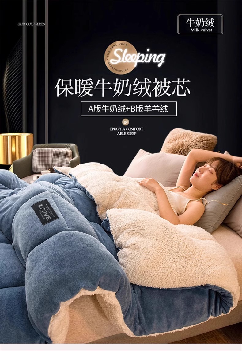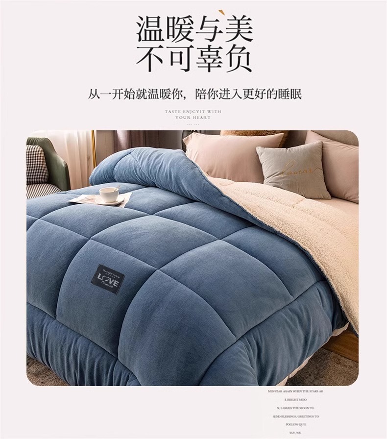 Leche de cordero manta de cachemira doble cara engrosada cálida edredón de invierno siesta sopa edredón de algodón central edredón de invierno