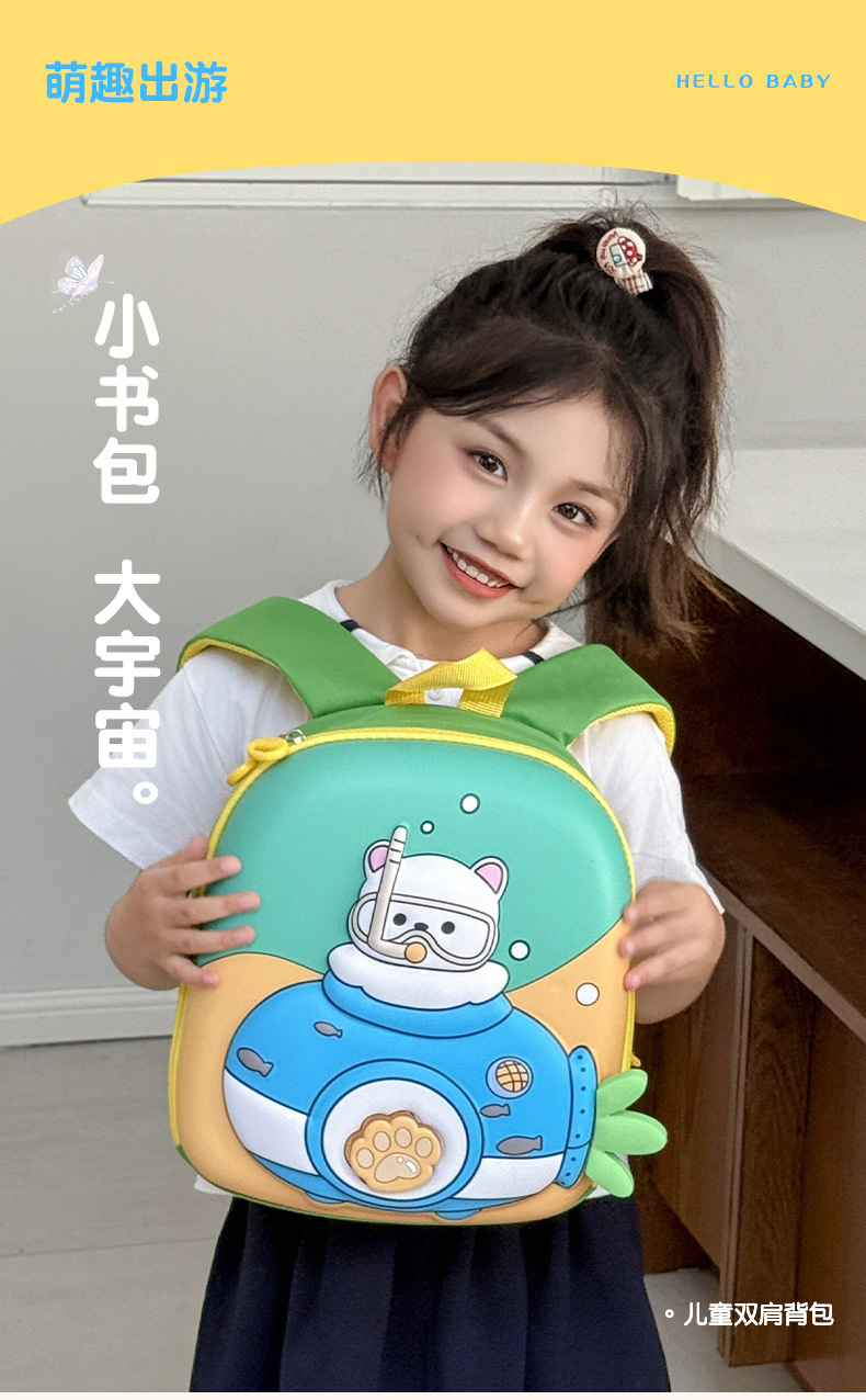 Cartoon estereoscópico Eggshell mochila infantil infantil caricatura lindas mochila para niños de clase media pequeña mochila ligera