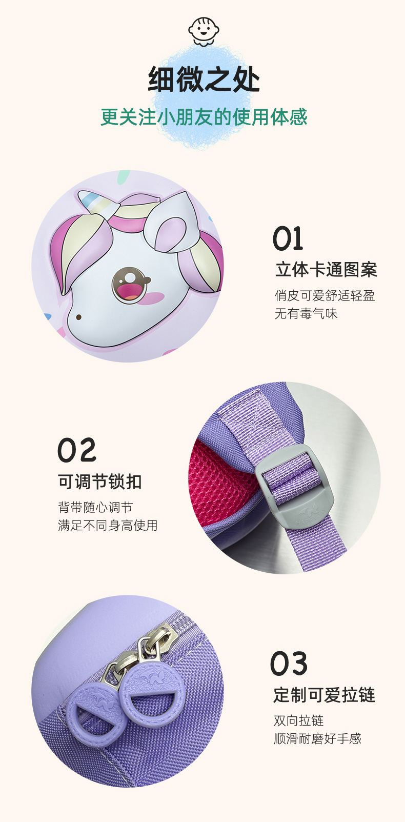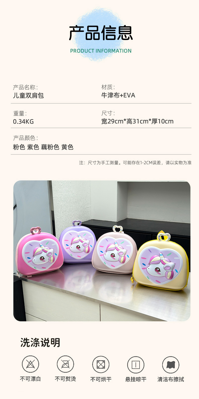Cartoon Unicornio bolsas de niñas lindas mochila infantil transpirable 3 años de edad 5 años de edad preescolar mochila para niños