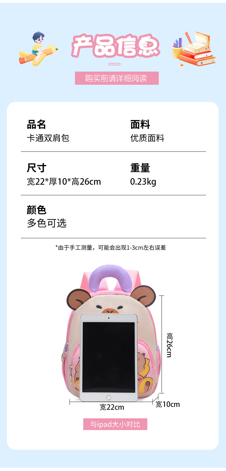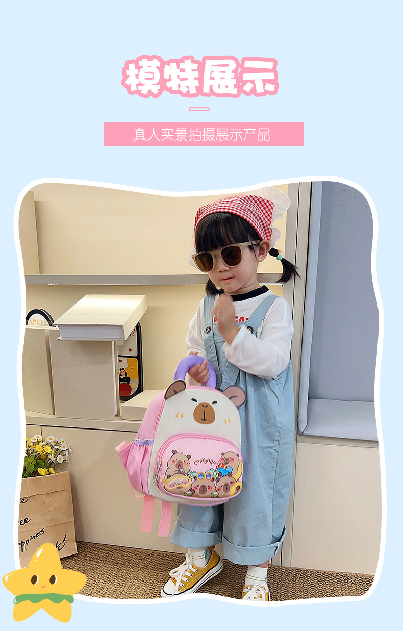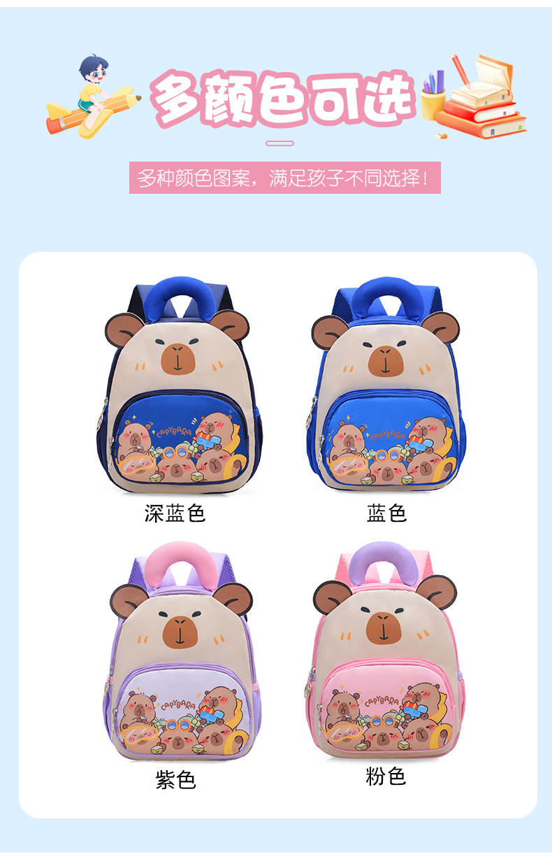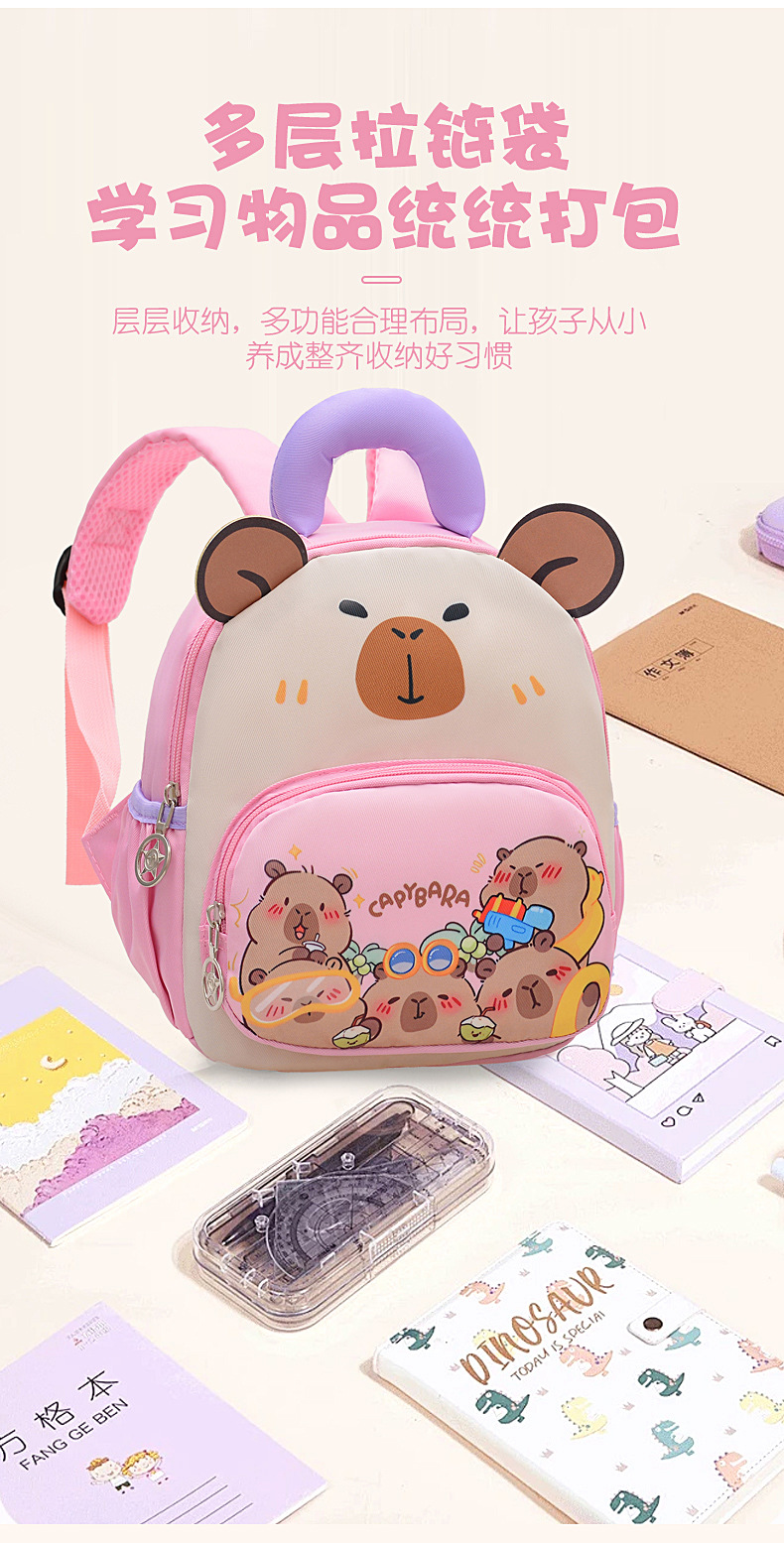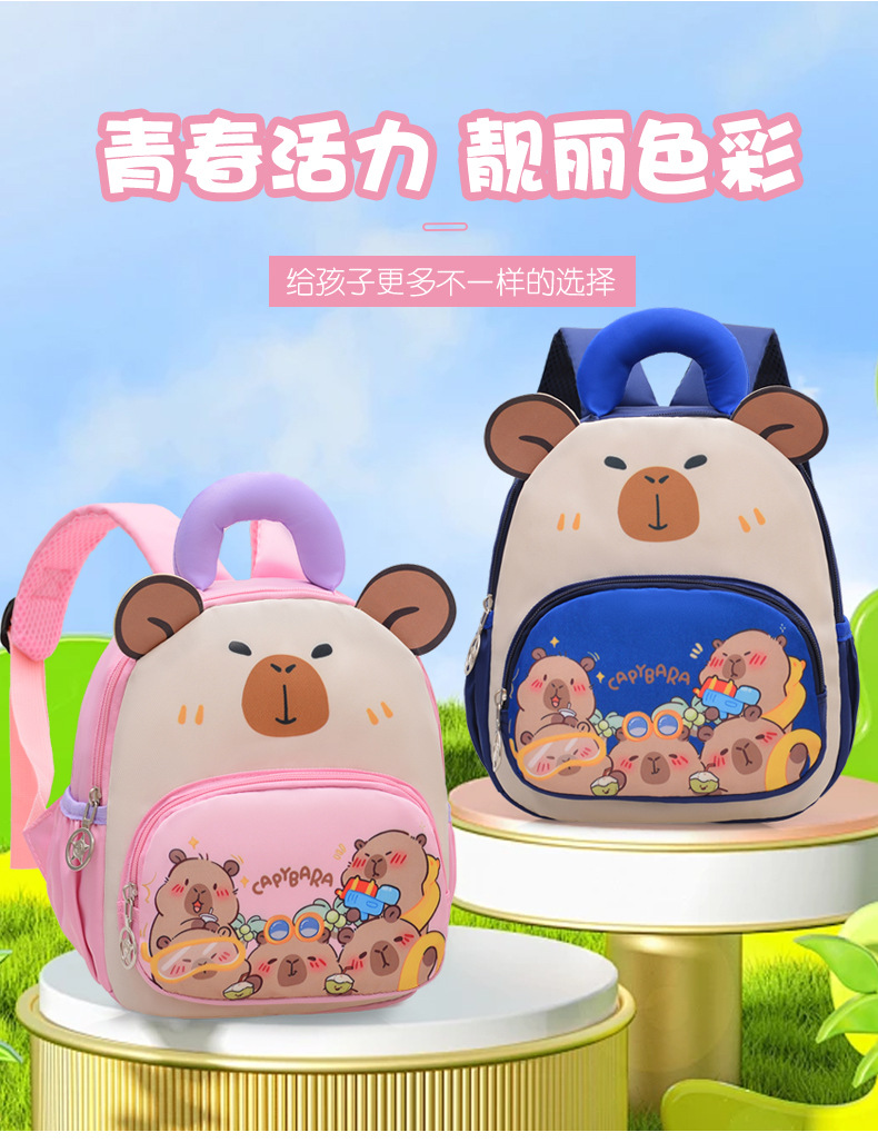 Mochila infantil Capibara, mochila infantil de dibujos animados, 3 años de edad, 5 años de edad, lindas niñas, mochila de jardín de infantes, luz