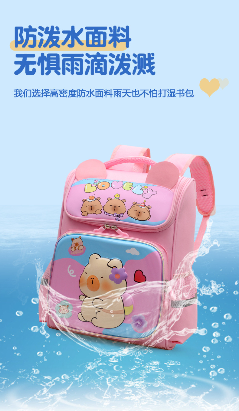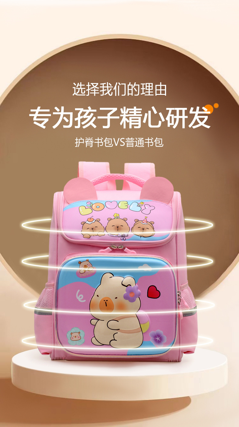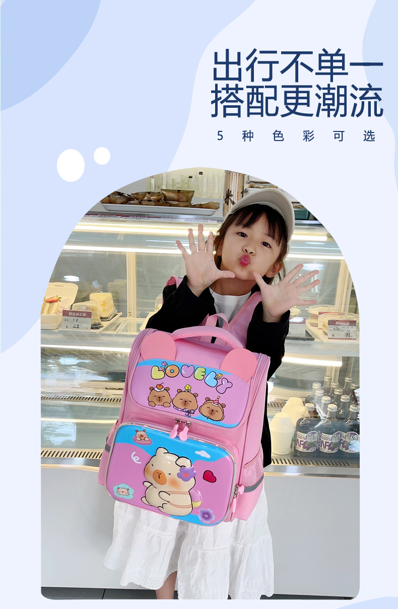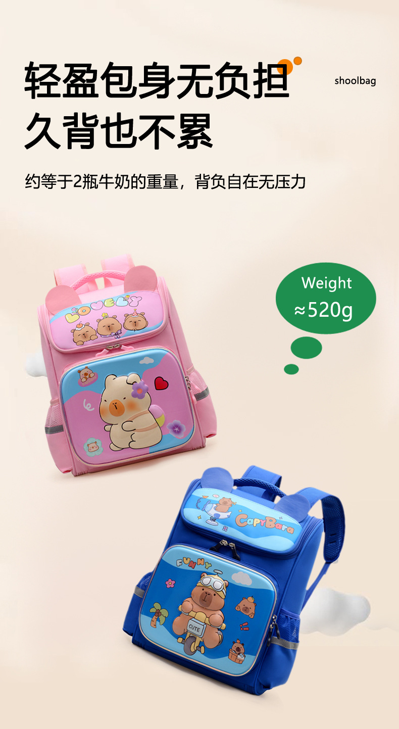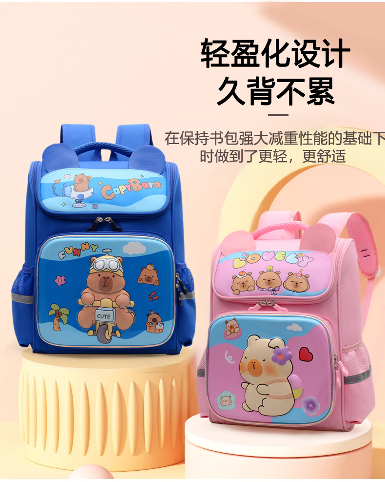 Kapibara mochila infantil de dibujos animados lindas mochila de niñas de grado uno, dos y tres niños mochila ligera