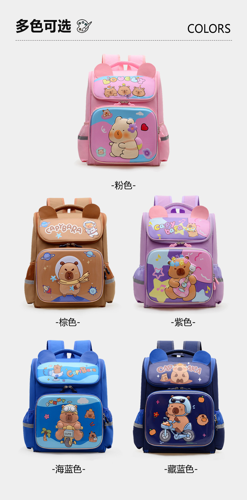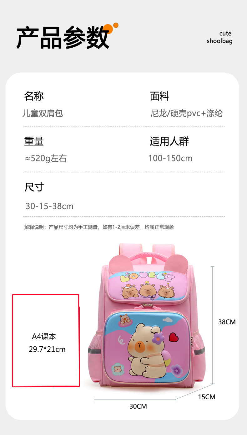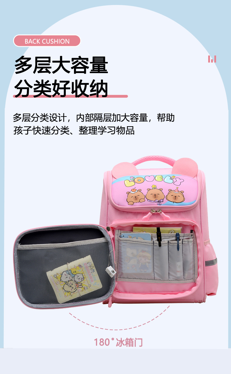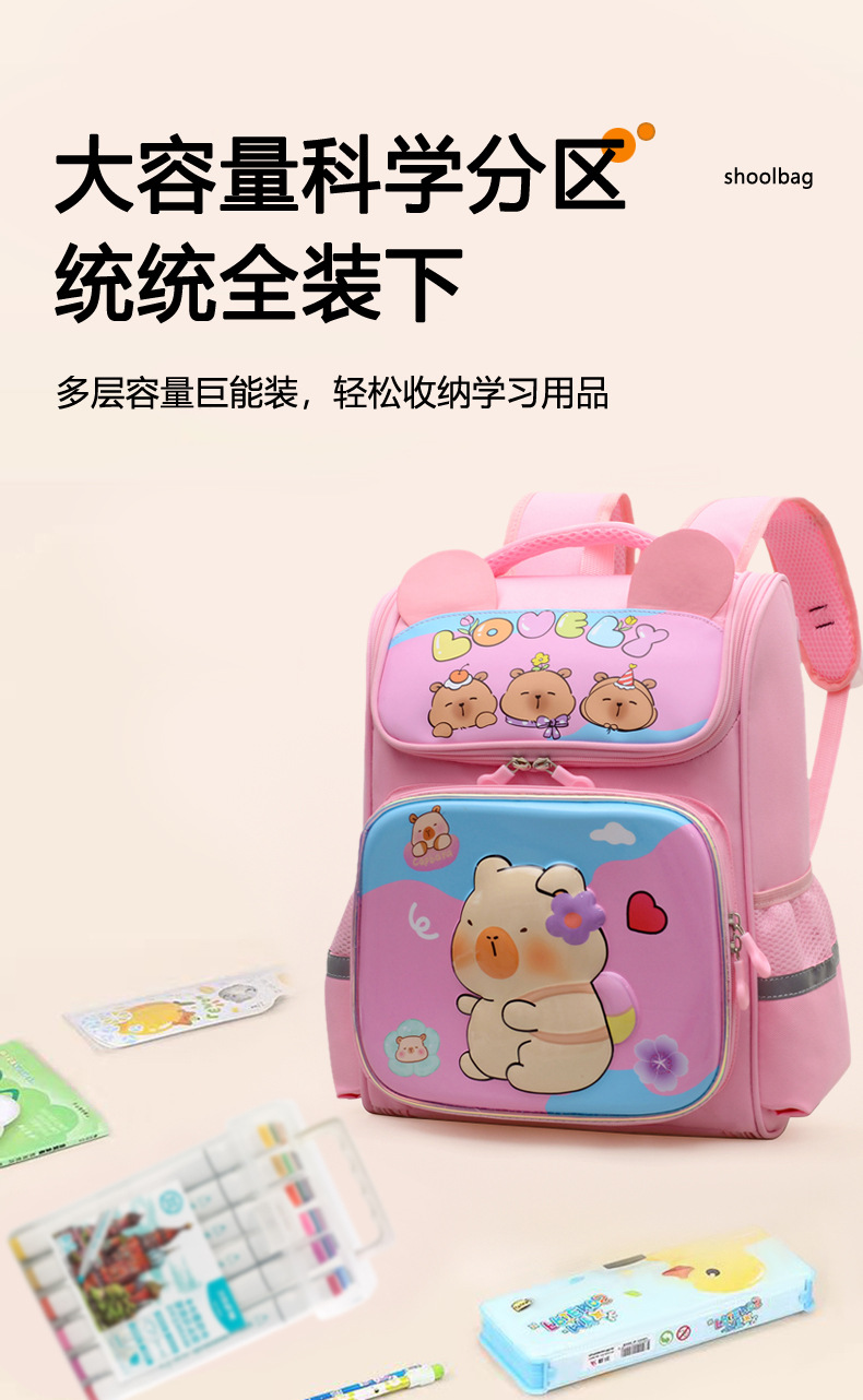 Kapibara mochila infantil de dibujos animados lindas mochila de niñas de grado uno, dos y tres niños mochila ligera