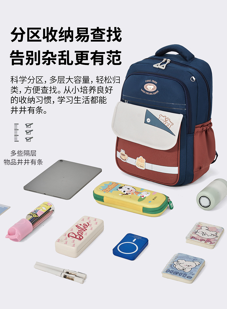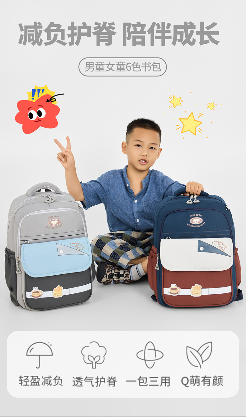 Mochila de estudiantes de primaria de gran capacidad, mochila para niños, mochila de hombros respirada, mochila de niñas resistente al desgaste.