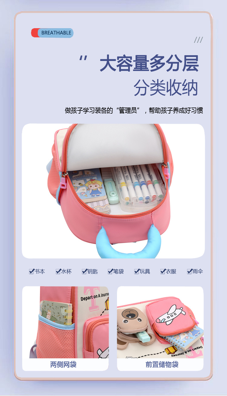 Mochila infantil transfronteriza, mochila transpirable preescolar, mochila escolar de 3 años, 5 años, niños y niñas, mochila pequeña ligera