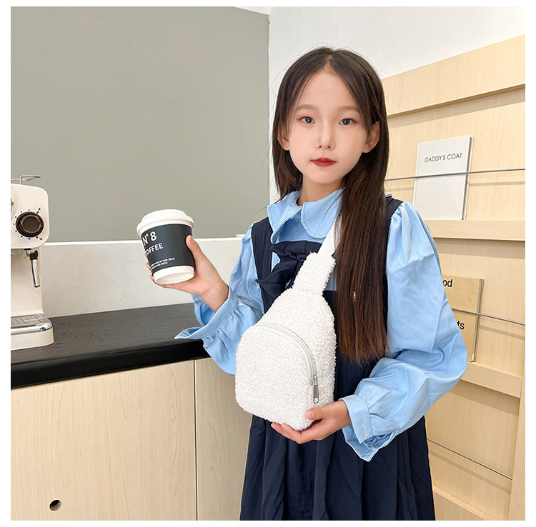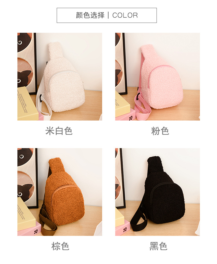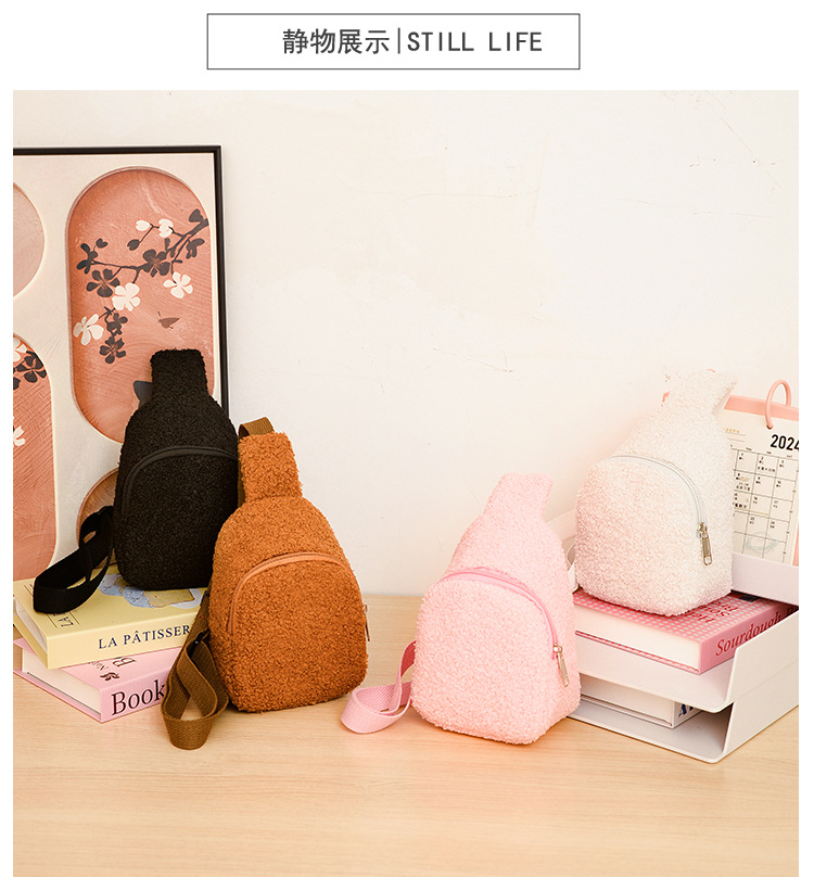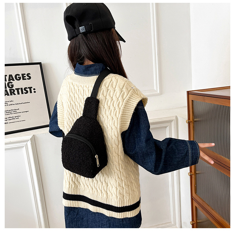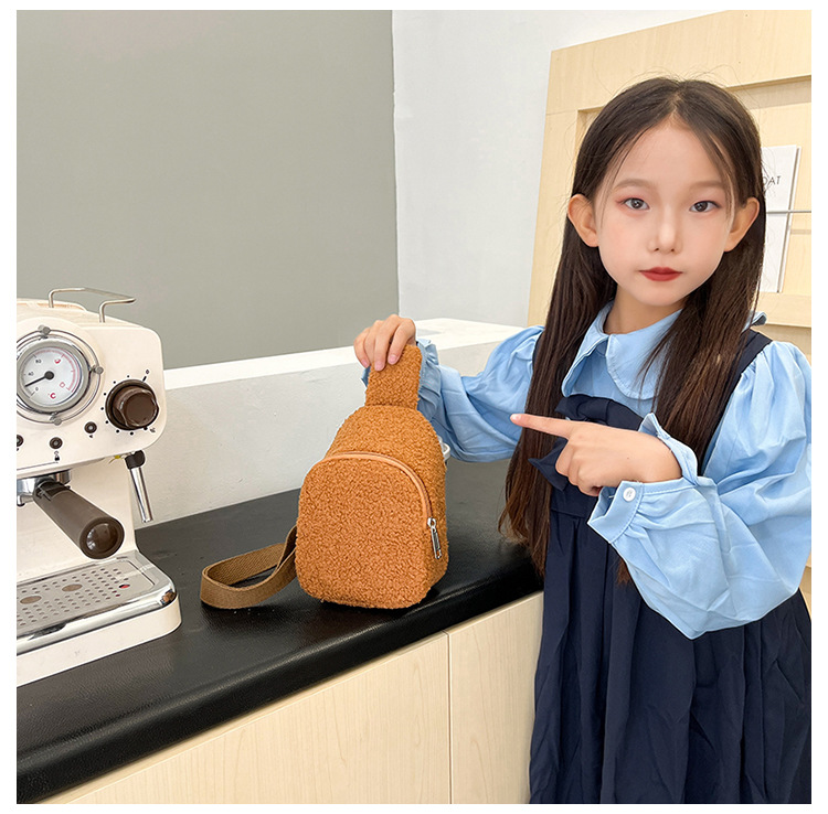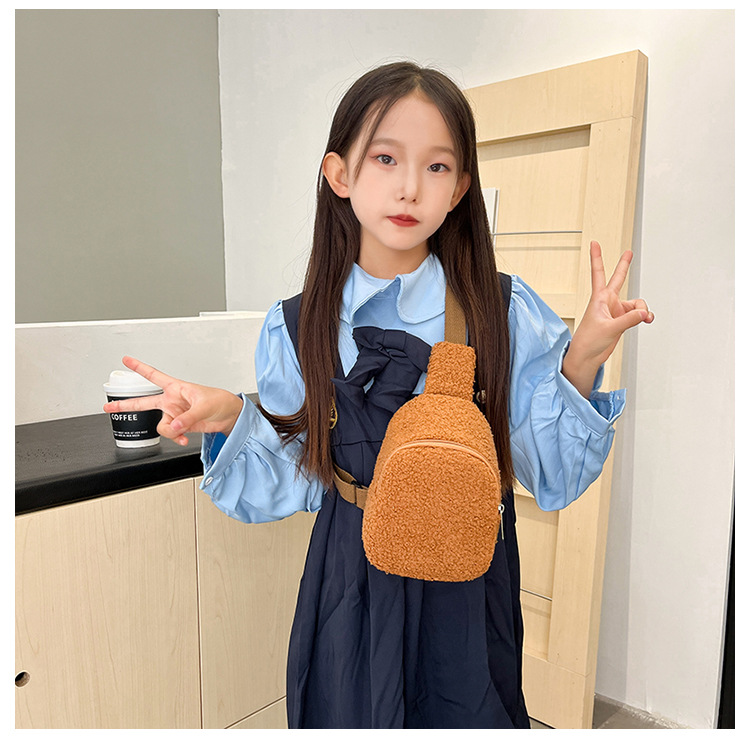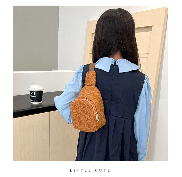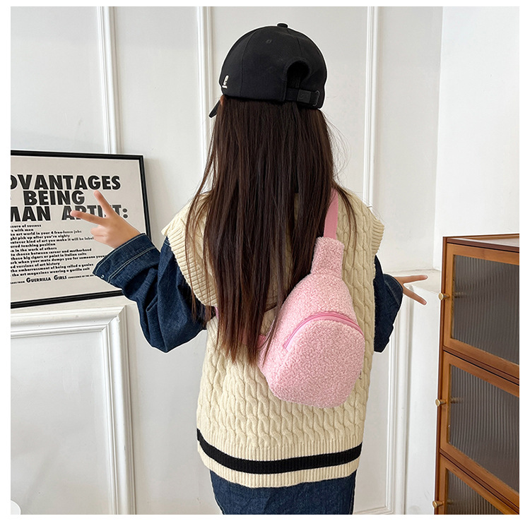 Bolsas de niños al por mayor transfronterizas bolsas de pecho de peluche de color sólido otoño y invierno nuevas niñas al aire libre mochila de hombro