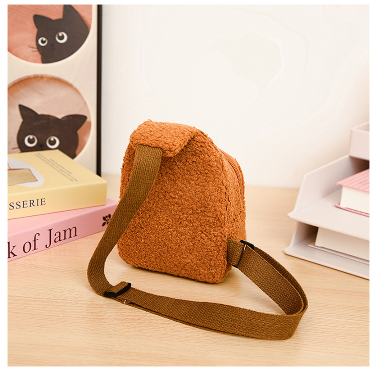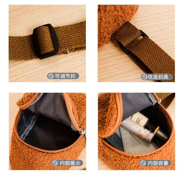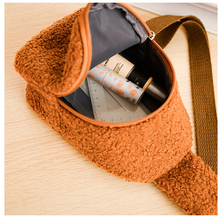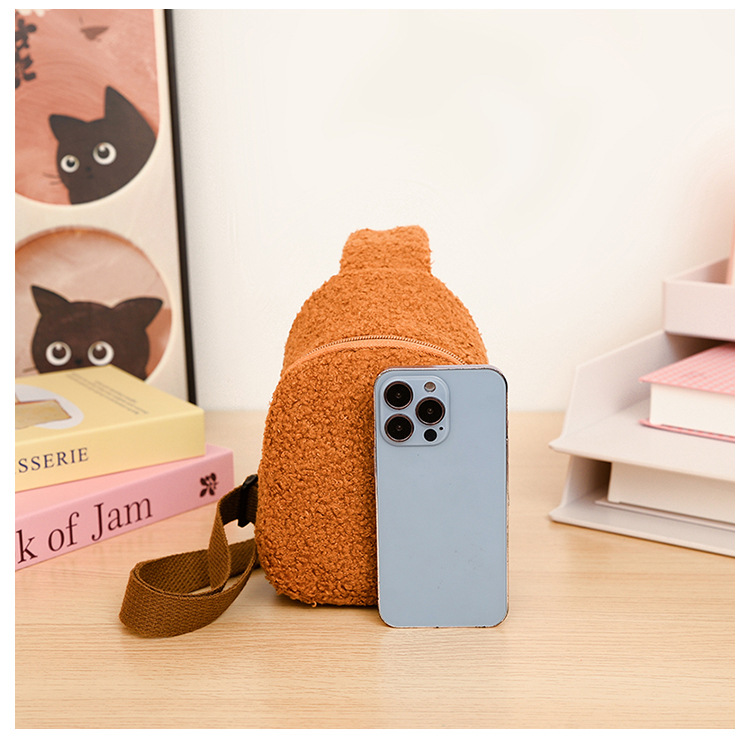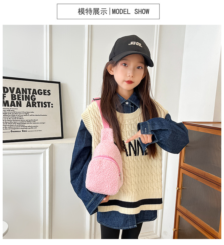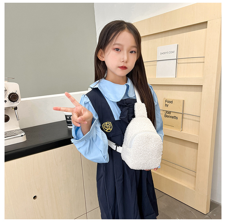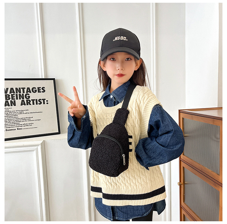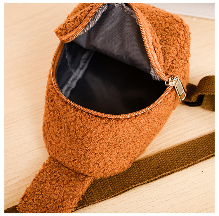 Bolsas de niños al por mayor transfronterizas bolsas de pecho de peluche de color sólido otoño y invierno nuevas niñas al aire libre mochila de hombro
