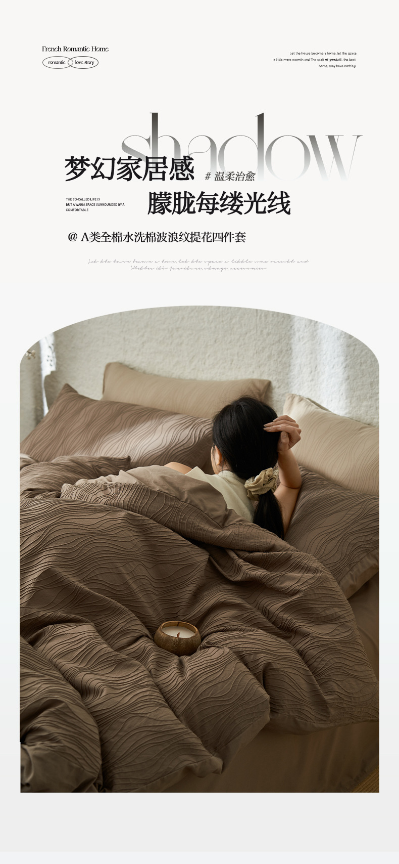 Classe A algodón 100% algodón cuatro piezas Jacquard tres capas de gaza cubierta sábanas de algodón lavado con agua cama cama cama de cama