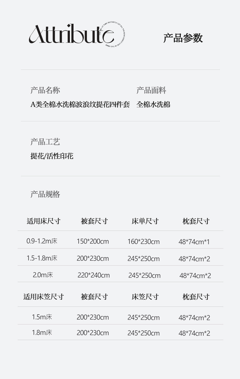 | Especificaciones de tamaño | Set de tres piezas de cama de 0,9 - 1,2 m (cuchilla de cama 150 * 200cm / sábanas 160 * 230cm / funda de almohada * 1), cama de 1,5 m conjunto de cuatro piezas (cuchilla 200 * 230cm / sábanas 250 * 250cm / funda de almohada * 2), cama de 1.8m cuatro piezas (cubierta de colcha 200 * 230cm / sábanas 250 * 250cm / funda de almohada * 2), 2.0m cama cuatro piezas (cubierta de colcha 220 * 240cm / sábanas 250 * 250cm / funda de almohada * 2), 1.5m cama cuatro piezas (cubierta de colcha 200 * 230cm / cama 150 * 200cm / funda de almohada * 2), 1.8m cama cuatro piezas (cubierta de colcha 200 * 230cm / cama 180 * 200cm / funda de almohada * 2) |