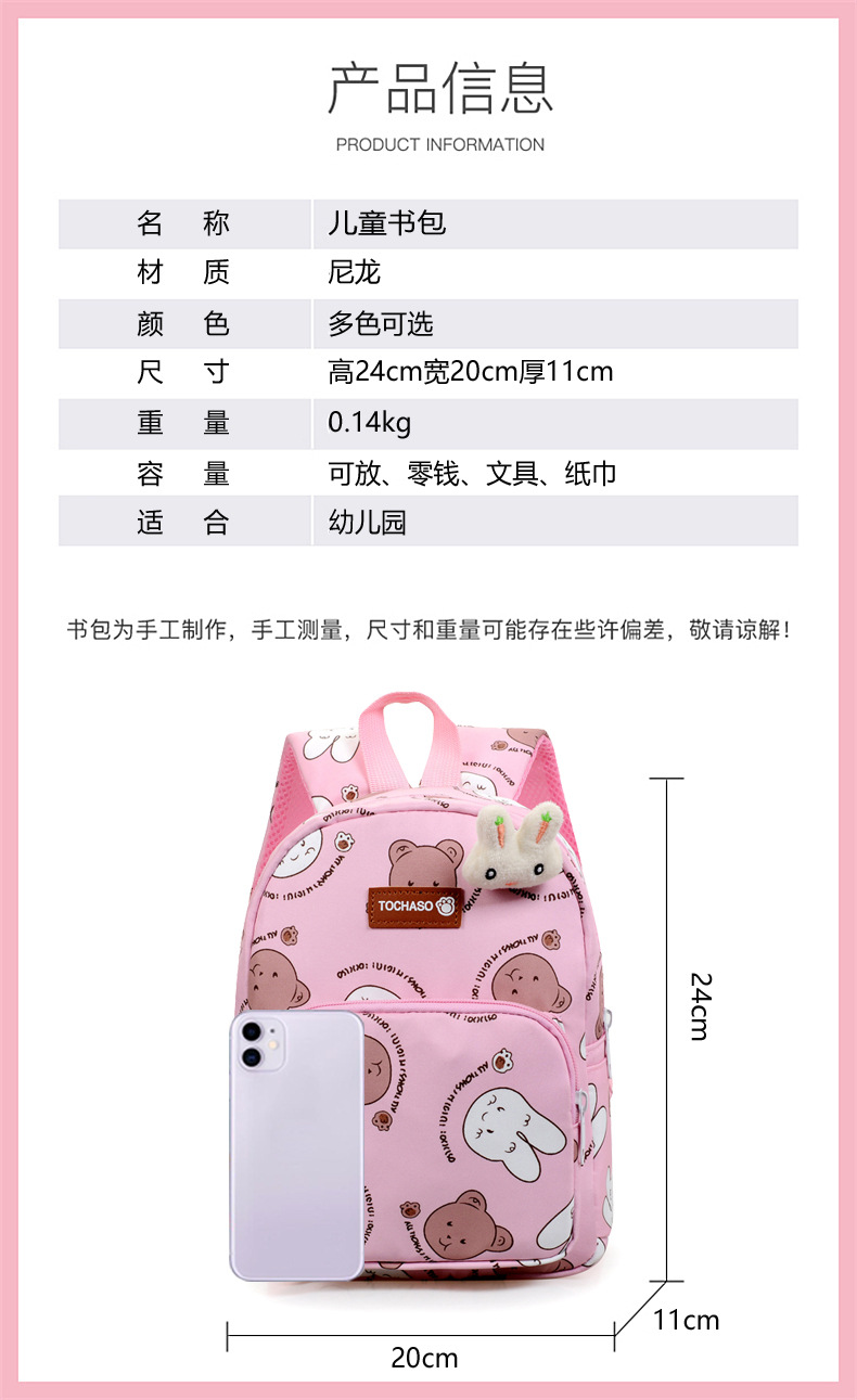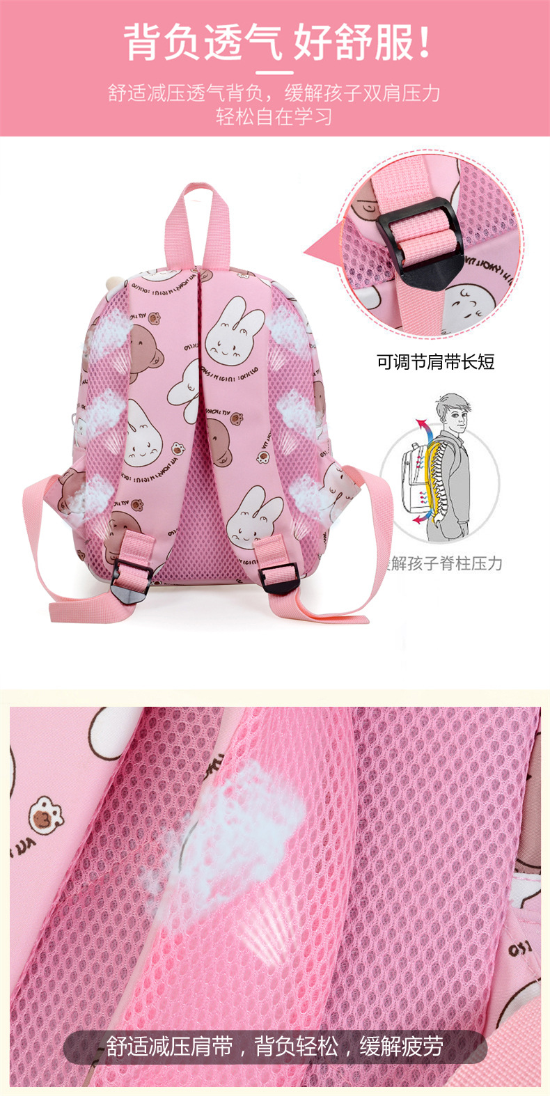 Cute conejo mochila de niñas preescolar mochila de escolares nueva mochila de niños de dibujos animados