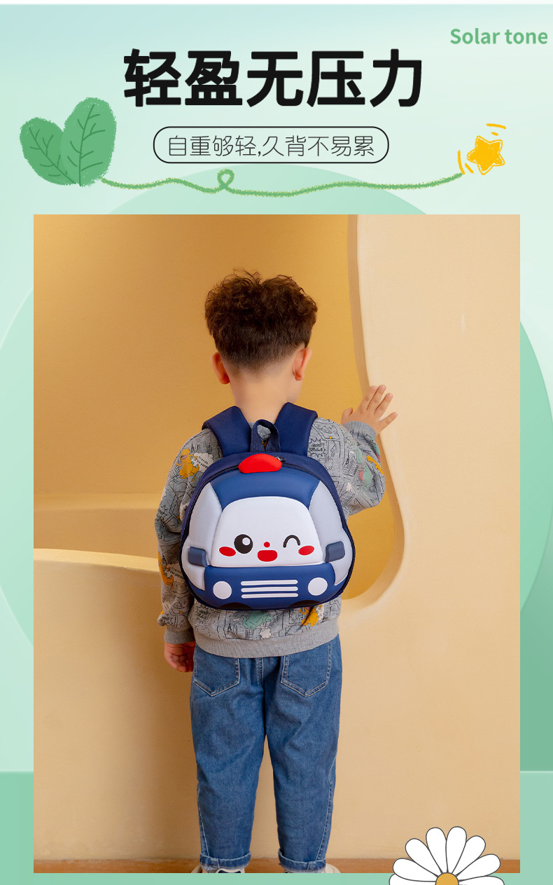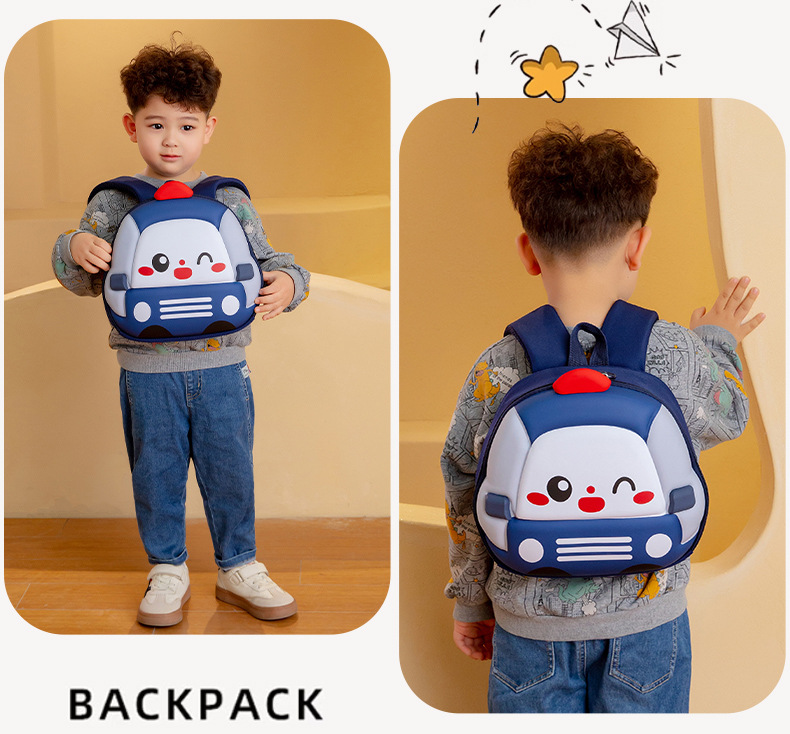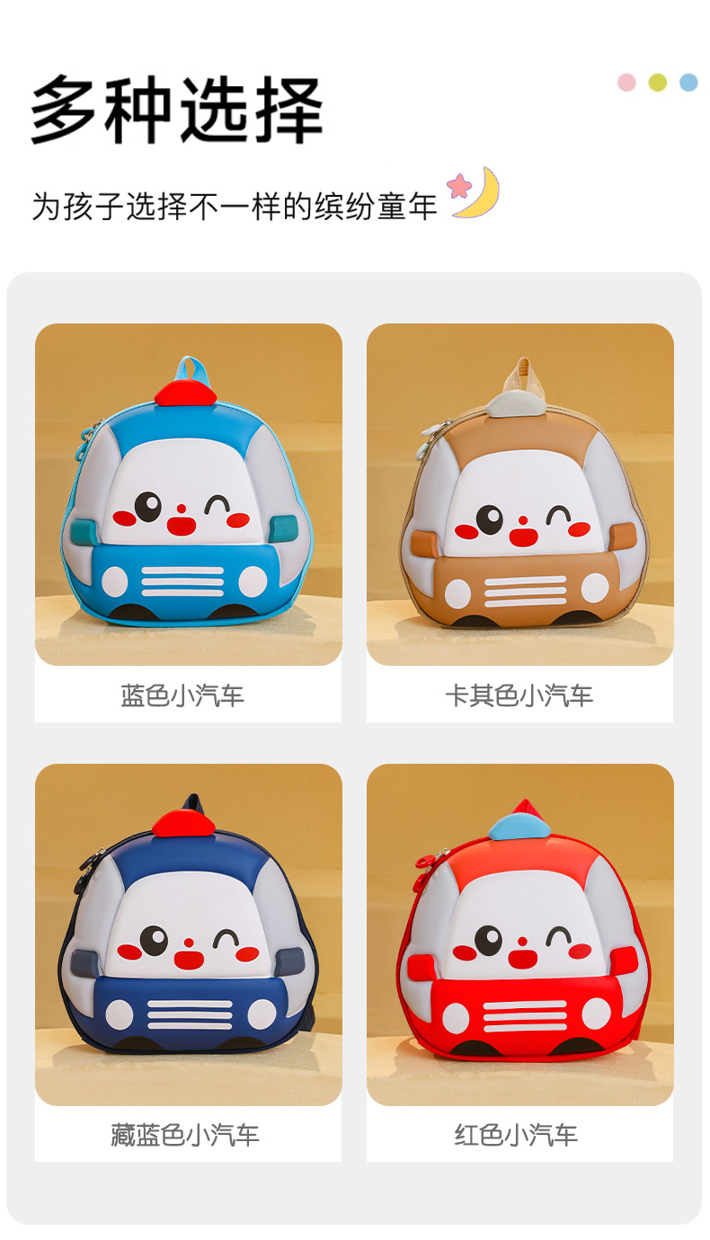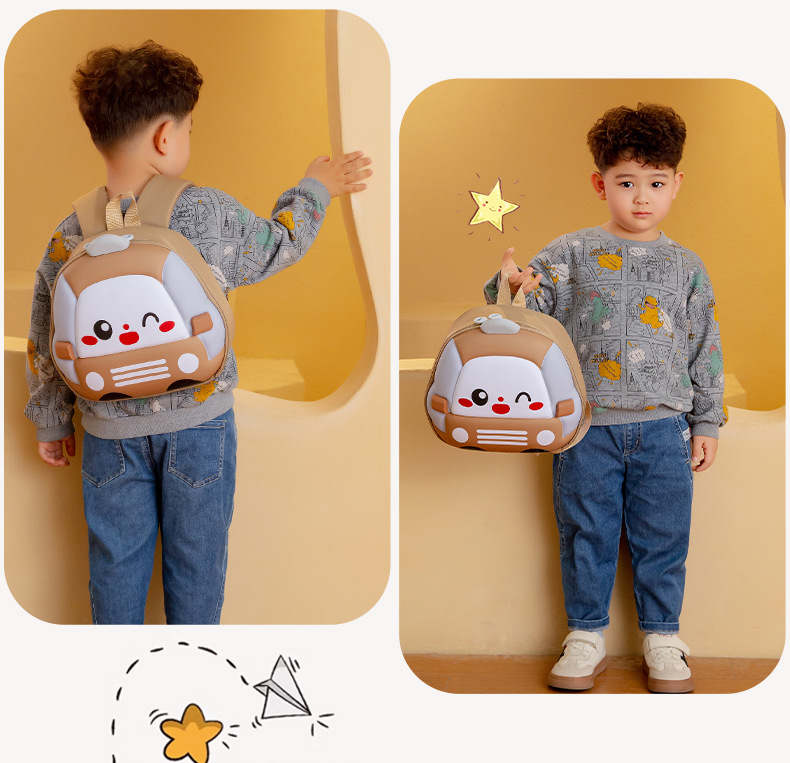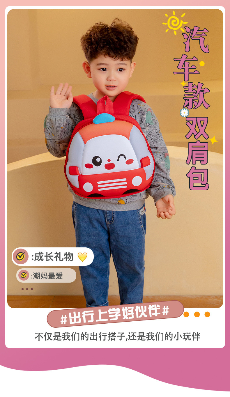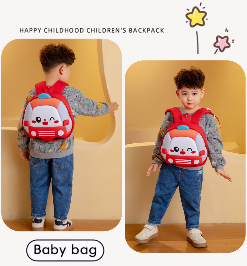 Mochila de niños de dibujos animados coches tridimensionales mochila de niños de jardín de infantes mochila transpirable de clase media y grande mochila de niños pequeños