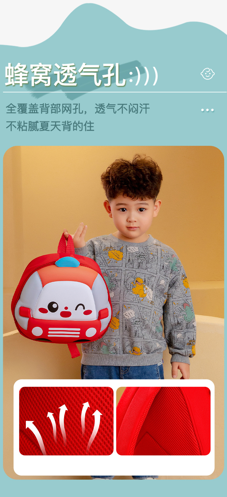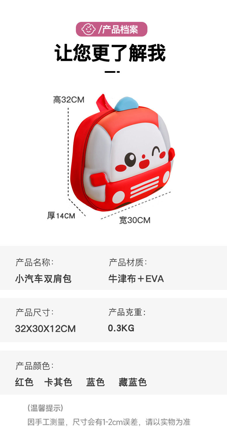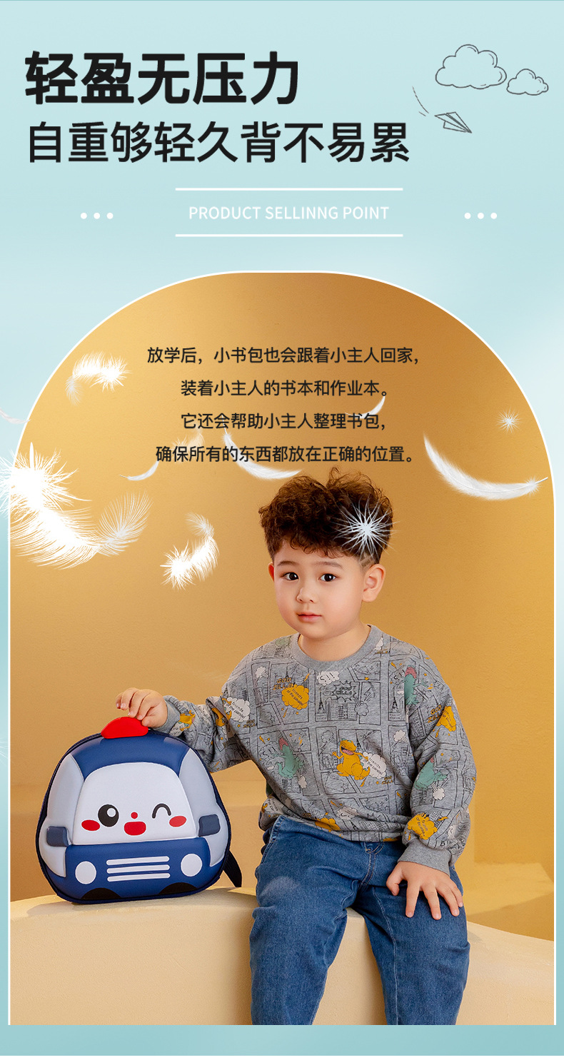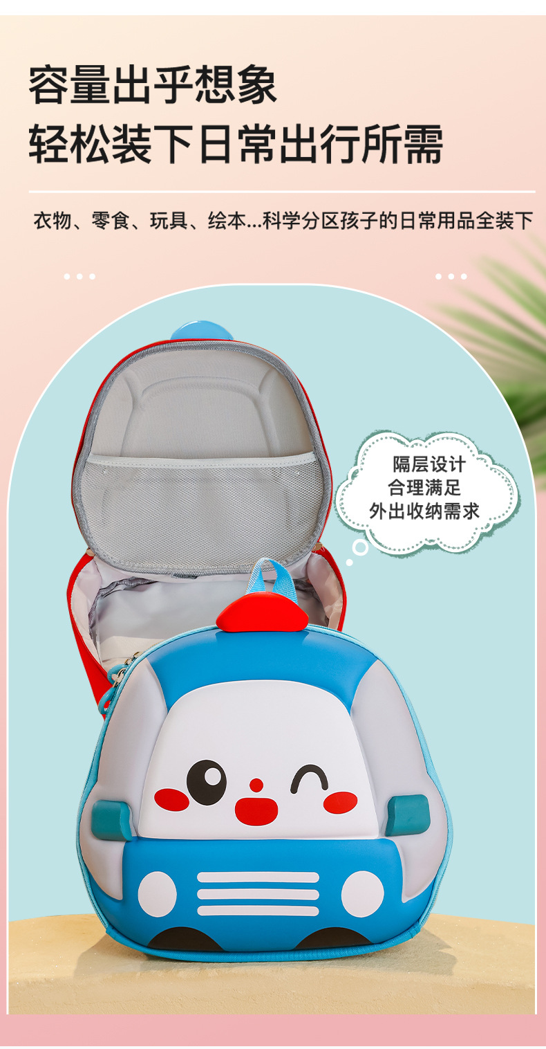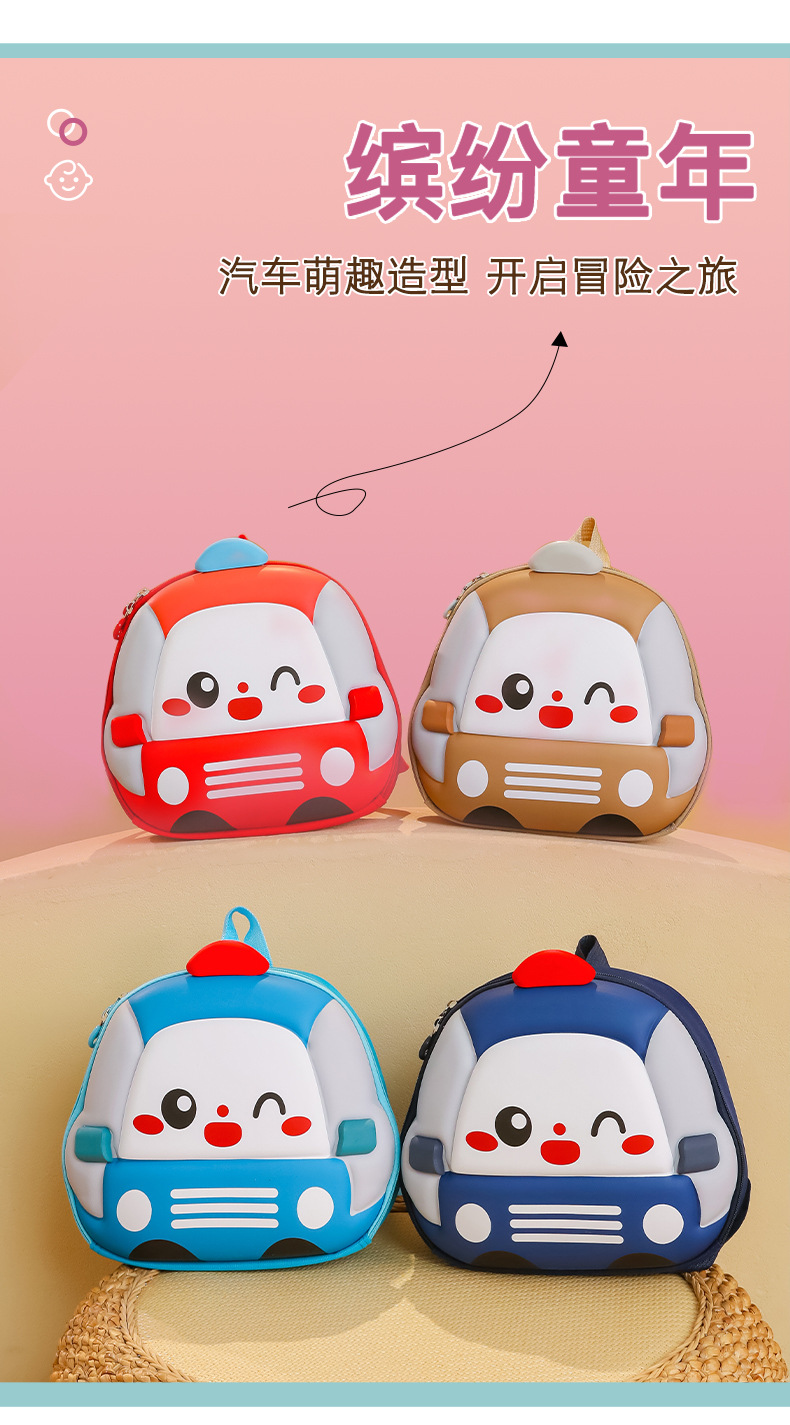 Mochila de niños de dibujos animados coches tridimensionales mochila de niños de jardín de infantes mochila transpirable de clase media y grande mochila de niños pequeños