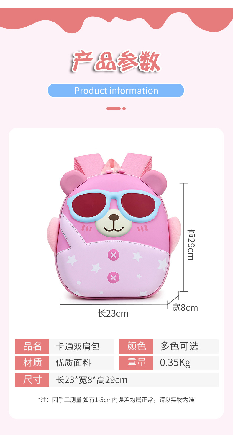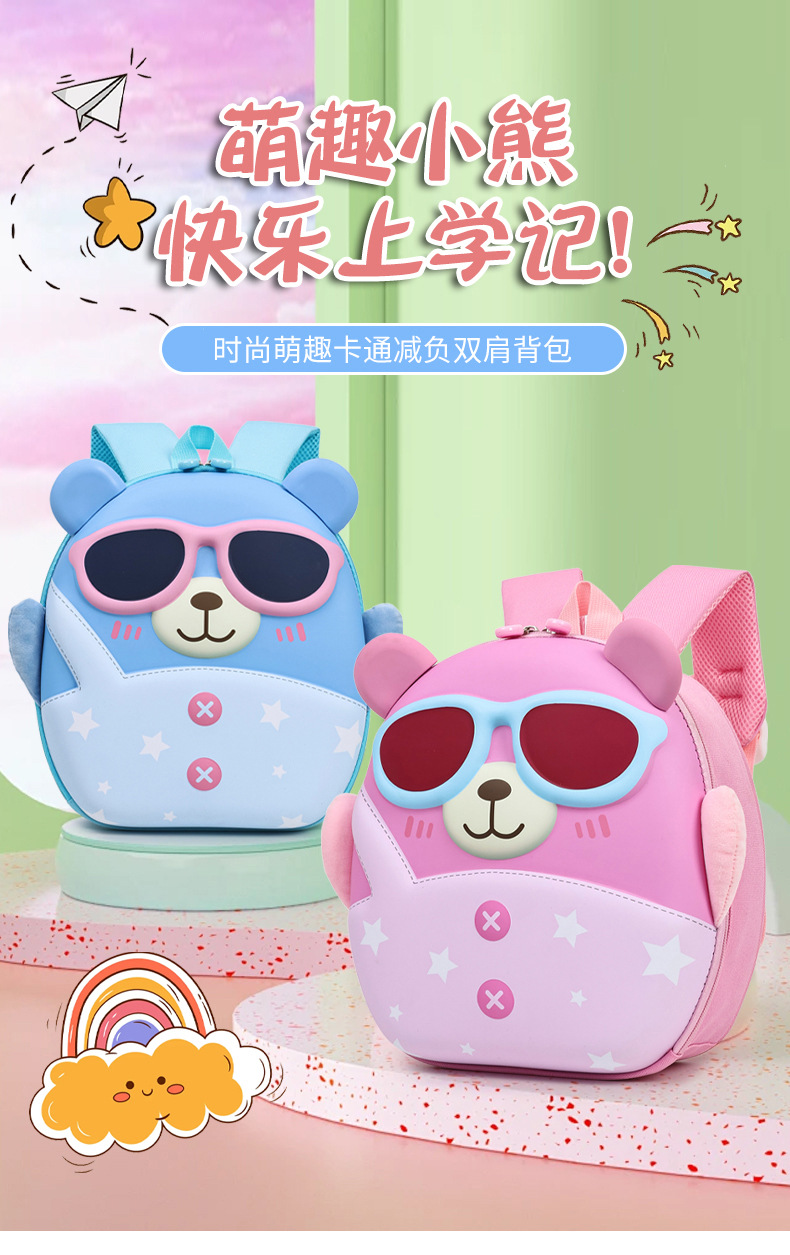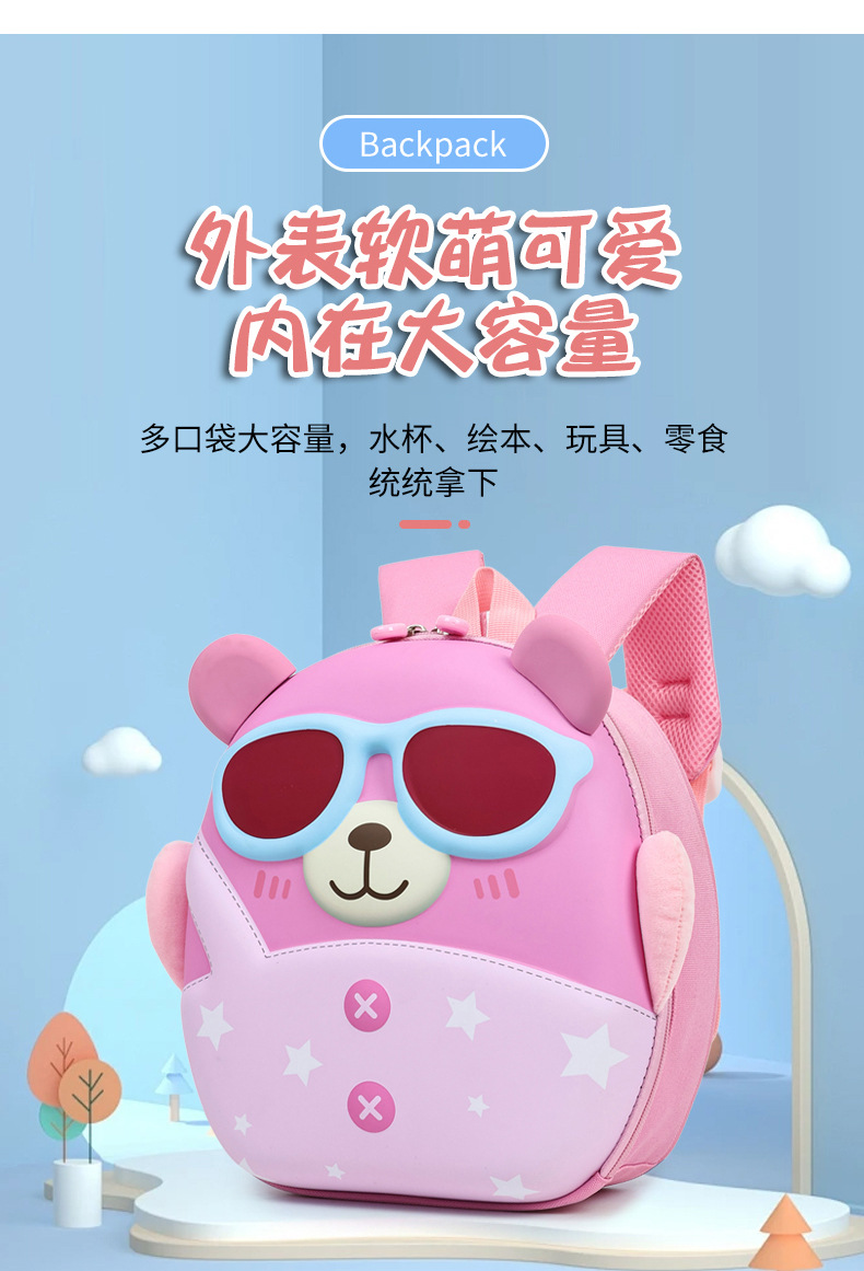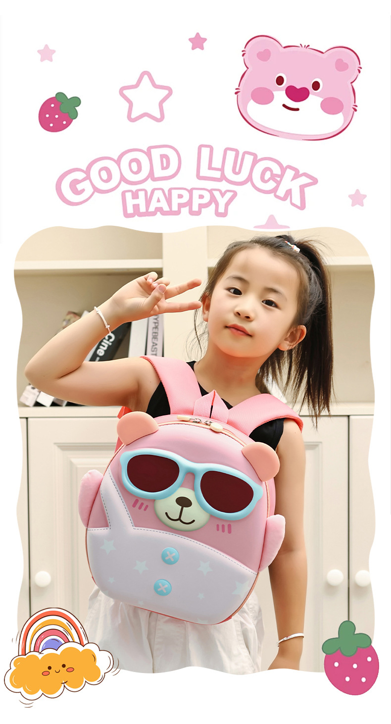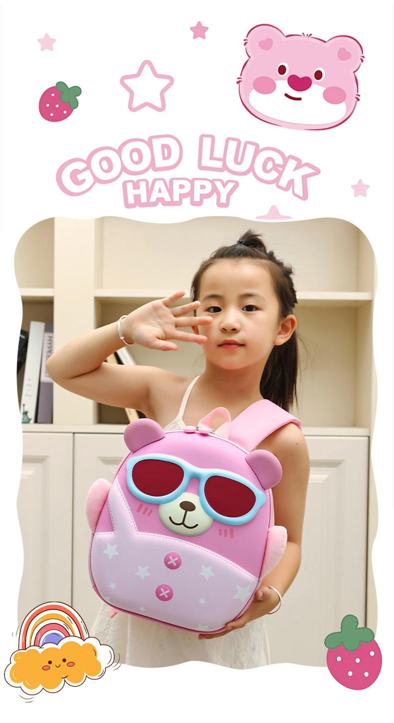 Mochila de niña encantadora, caricatura tridimensional oso, mochila de jardín de infantes, mochila de preescolar transpirable para niños