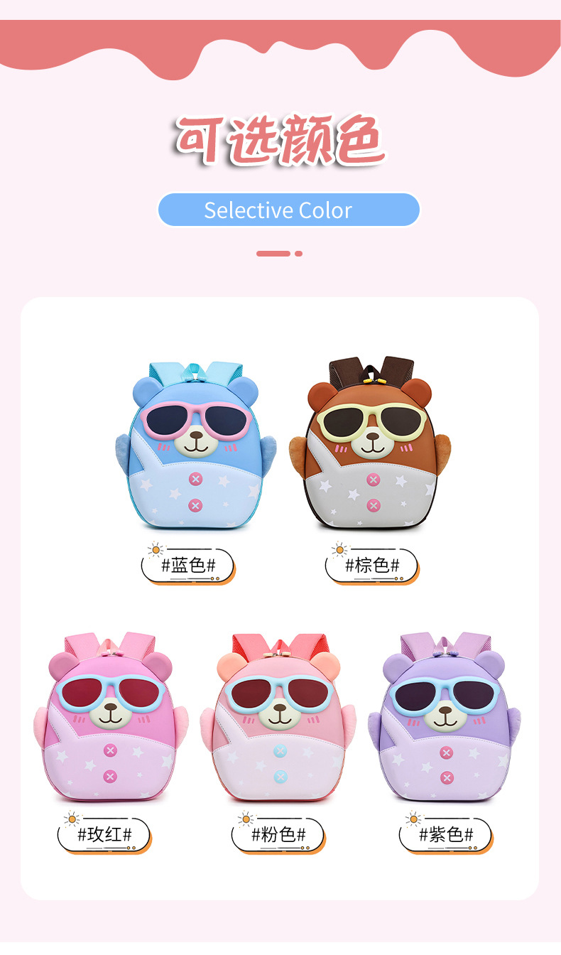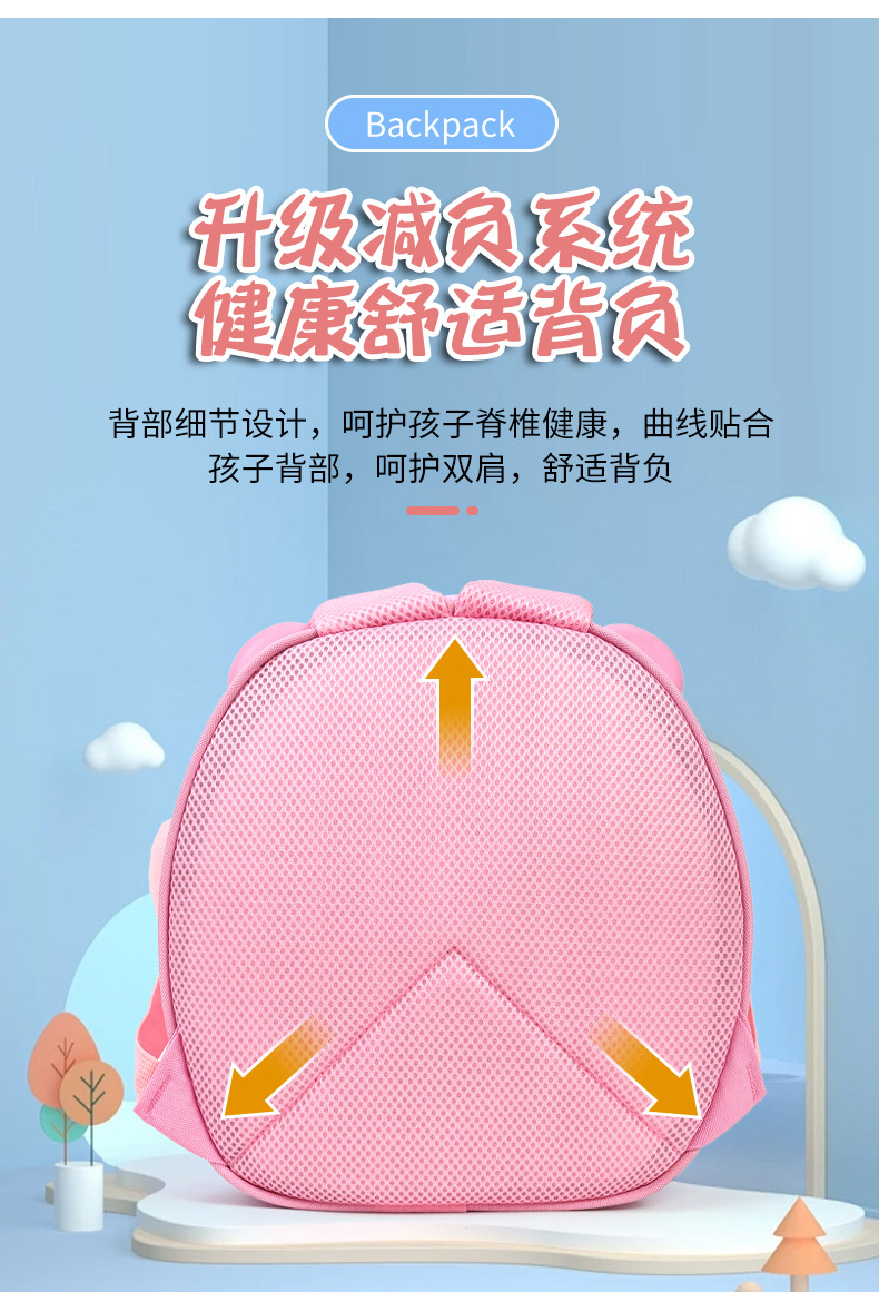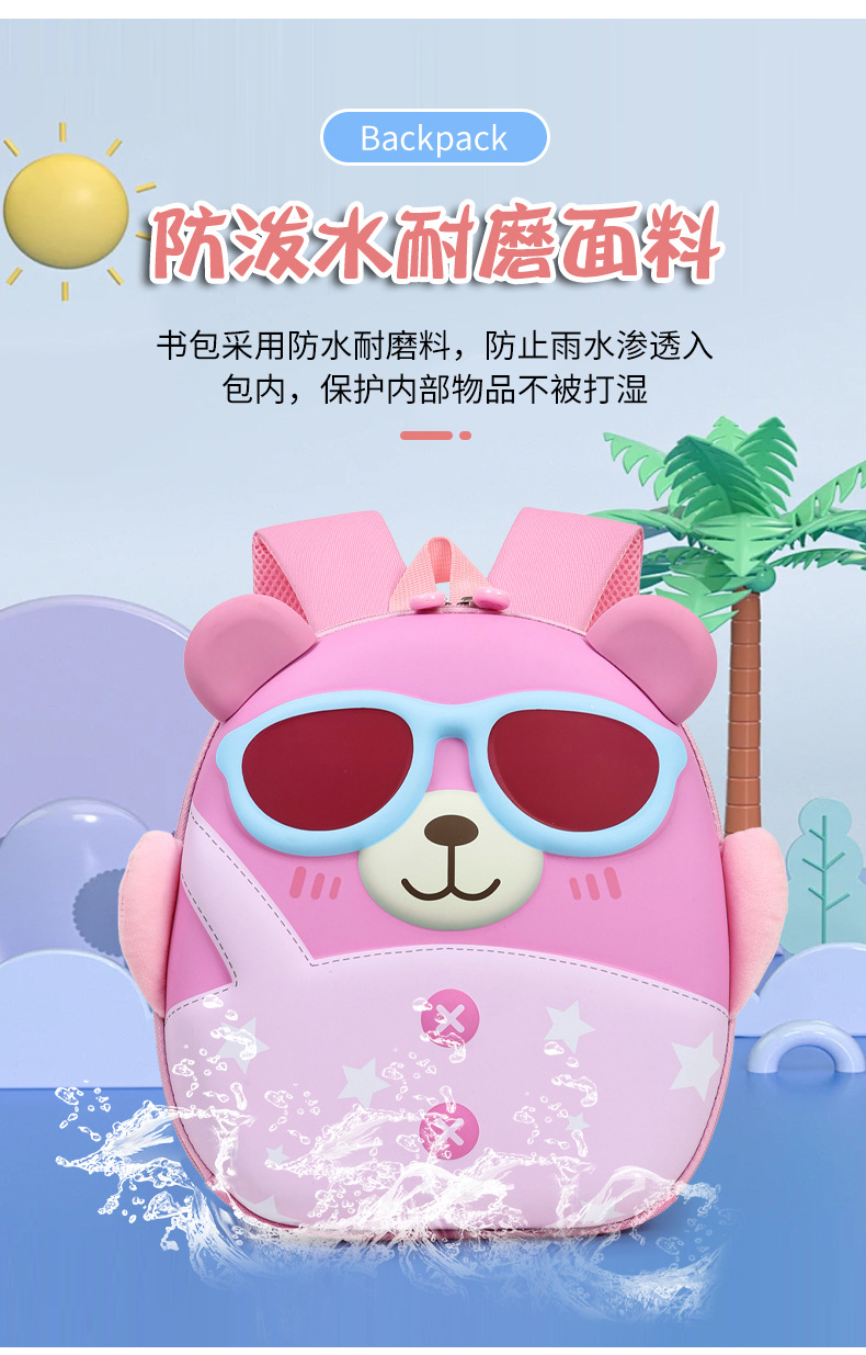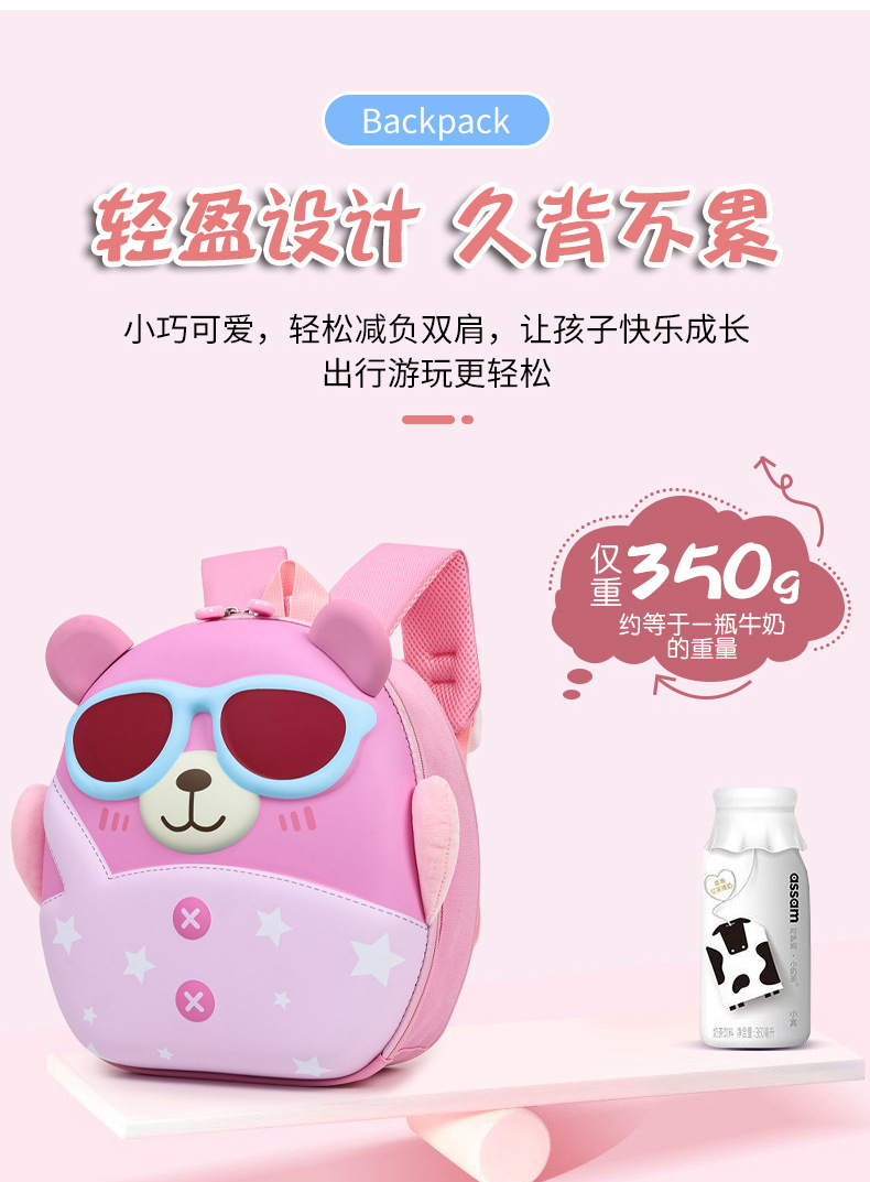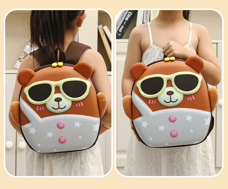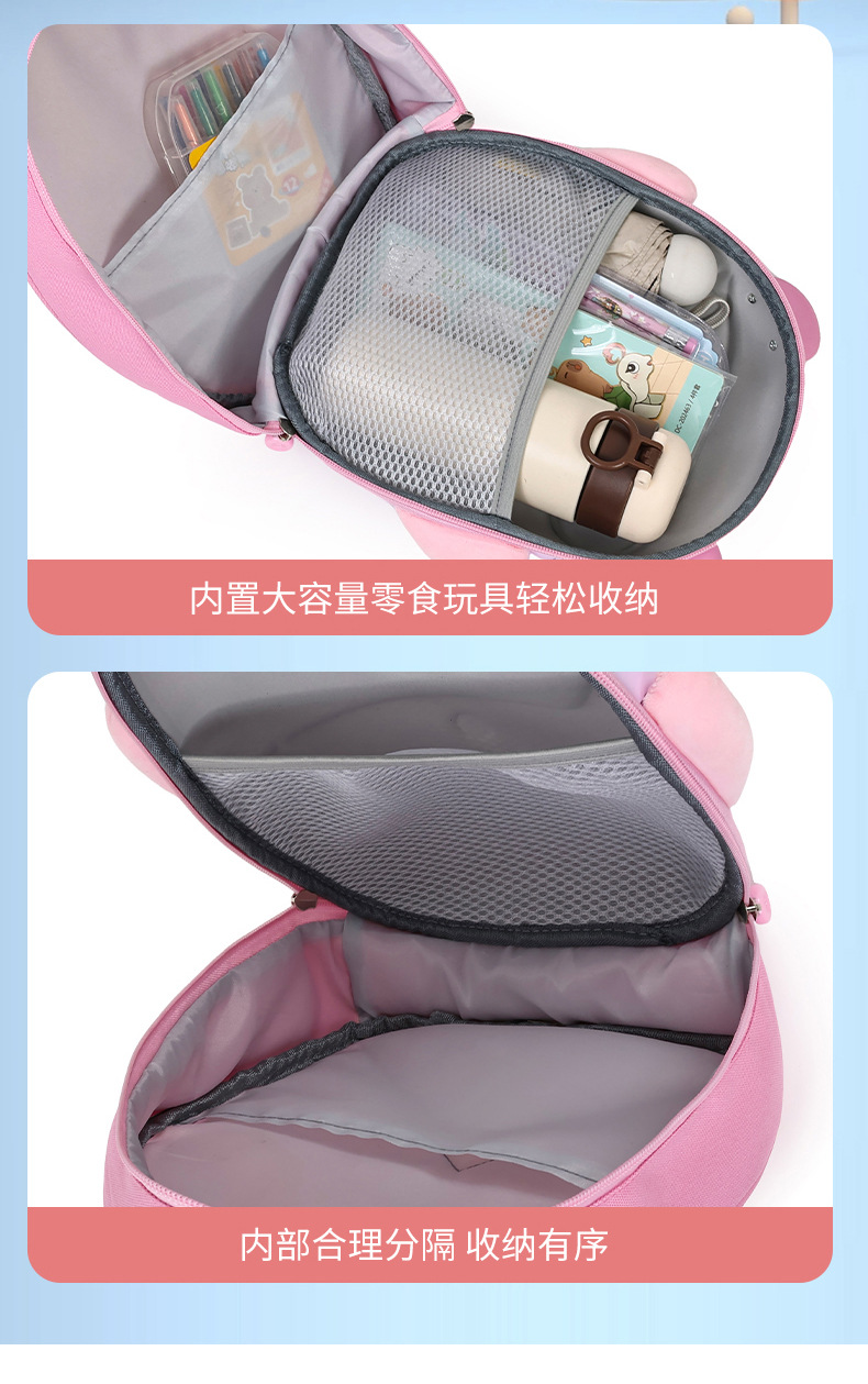 Mochila de niña encantadora, caricatura tridimensional oso, mochila de jardín de infantes, mochila de preescolar transpirable para niños