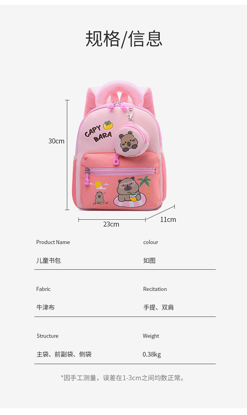 Mochila para niñas lindas, nueva mochila infantil Capibara, mochila transpirable para niños de 3 años y 5 años