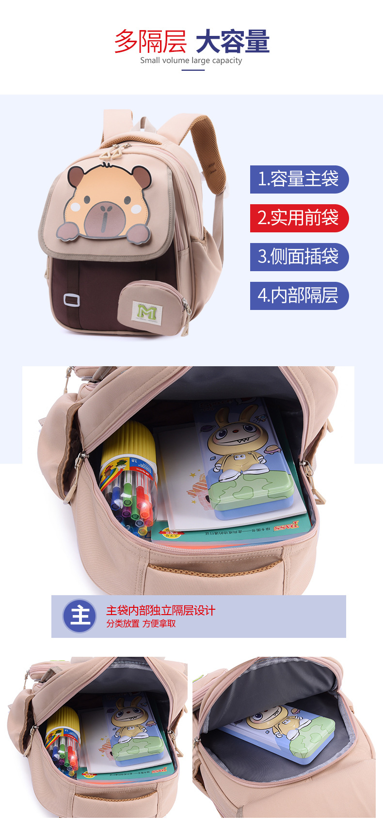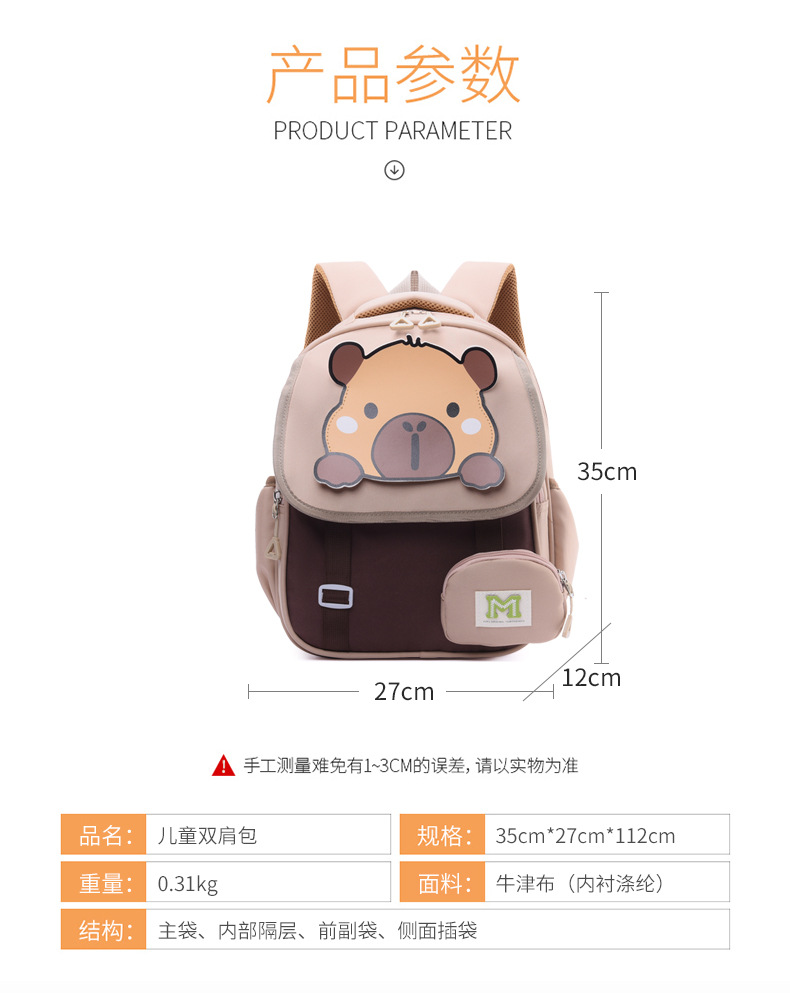 Mochila infantil Capibara caricatura lindas niñas mochila preescolar mochila para niños