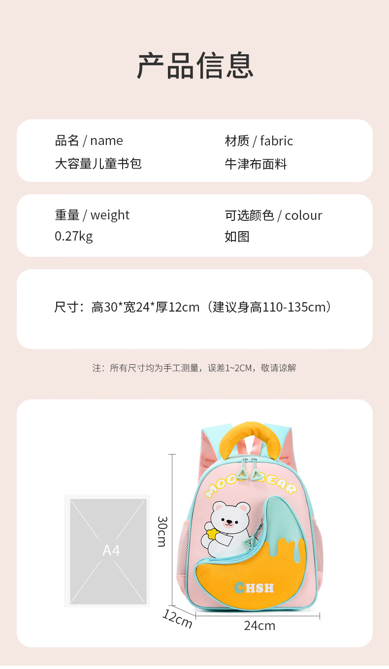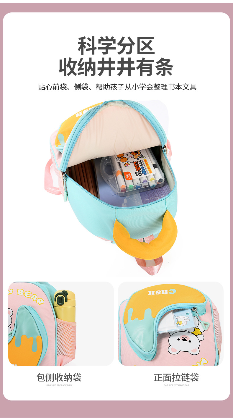 Mochila infantil de dibujos animados lindos osos niñas mochila transpirable 3 años de edad 5 años de edad preescolar mochila para niños pequeños