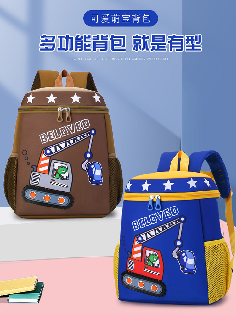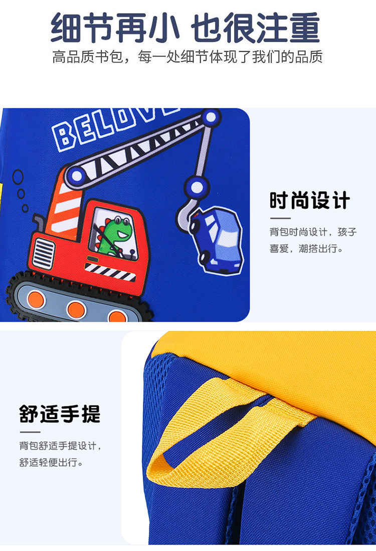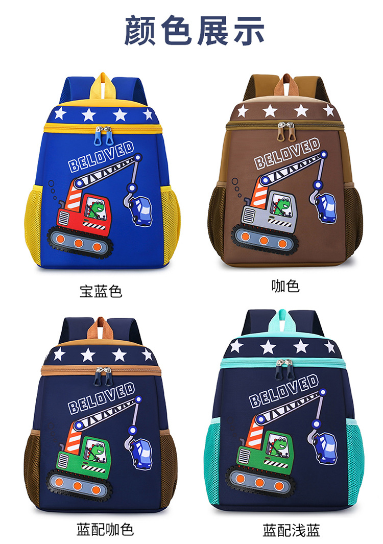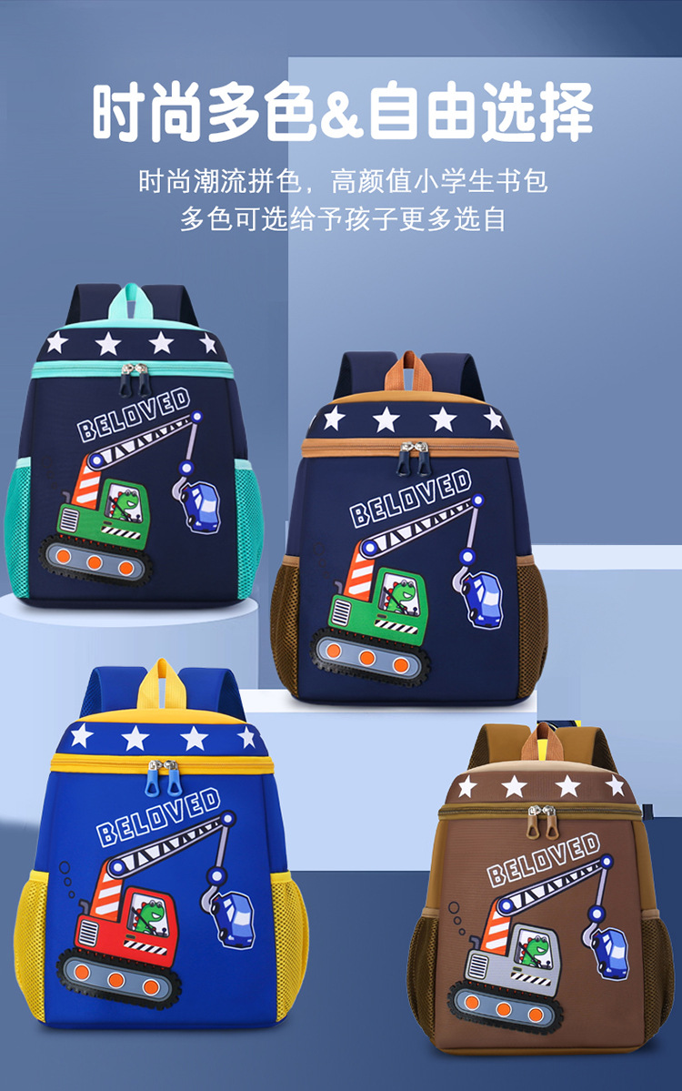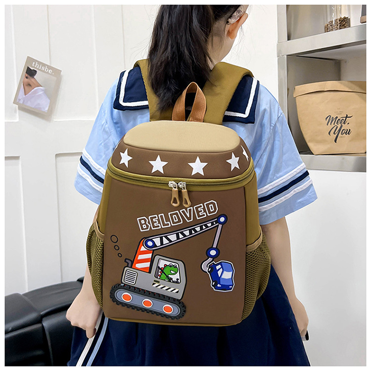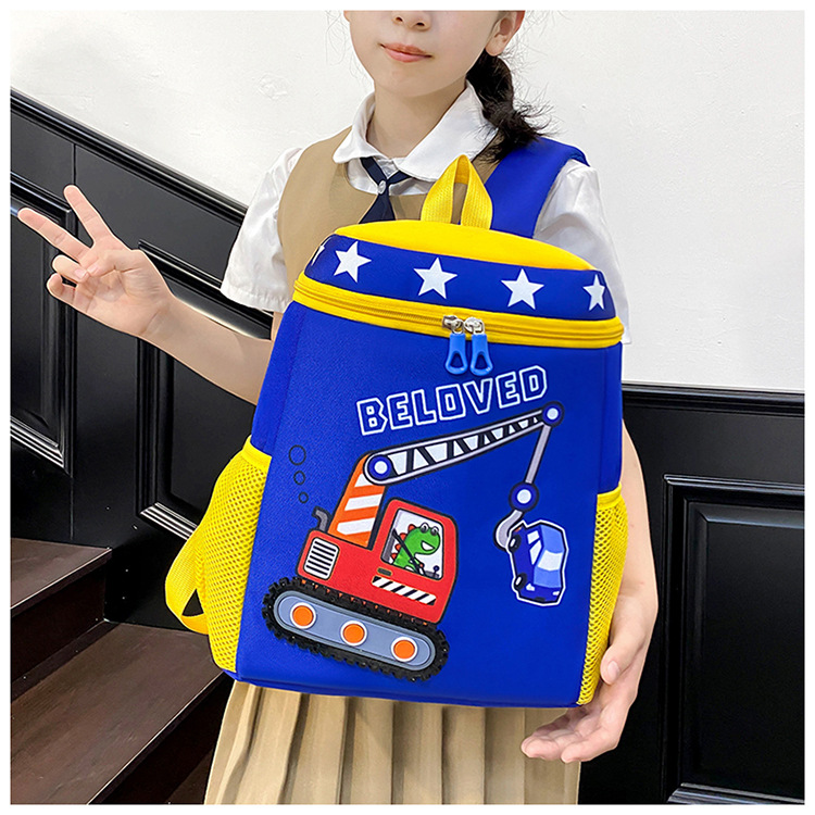 Mochila infantil de dibujos animados, coche de ingeniería, mochila escolar para niños, jardín de infantes, mochila transpirable para niñas de clase media y grande, luz