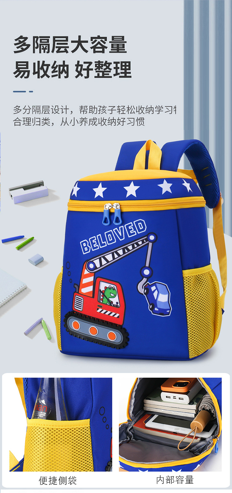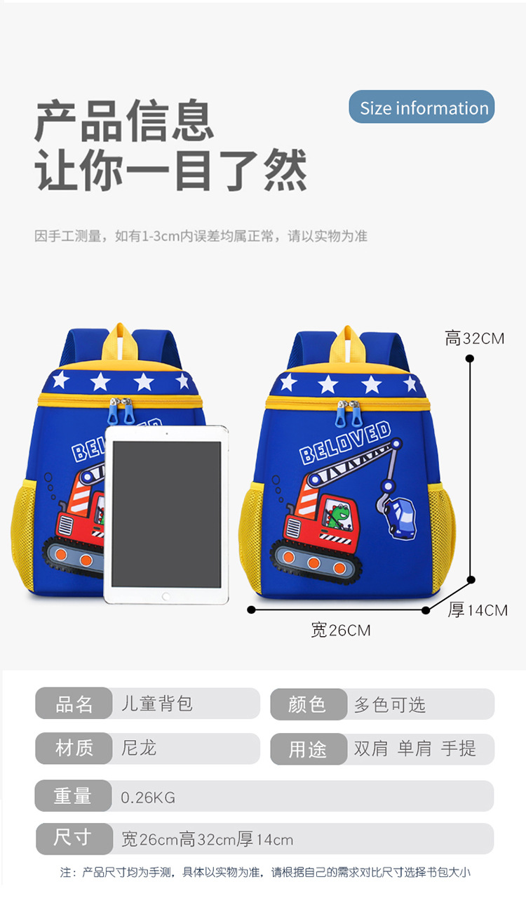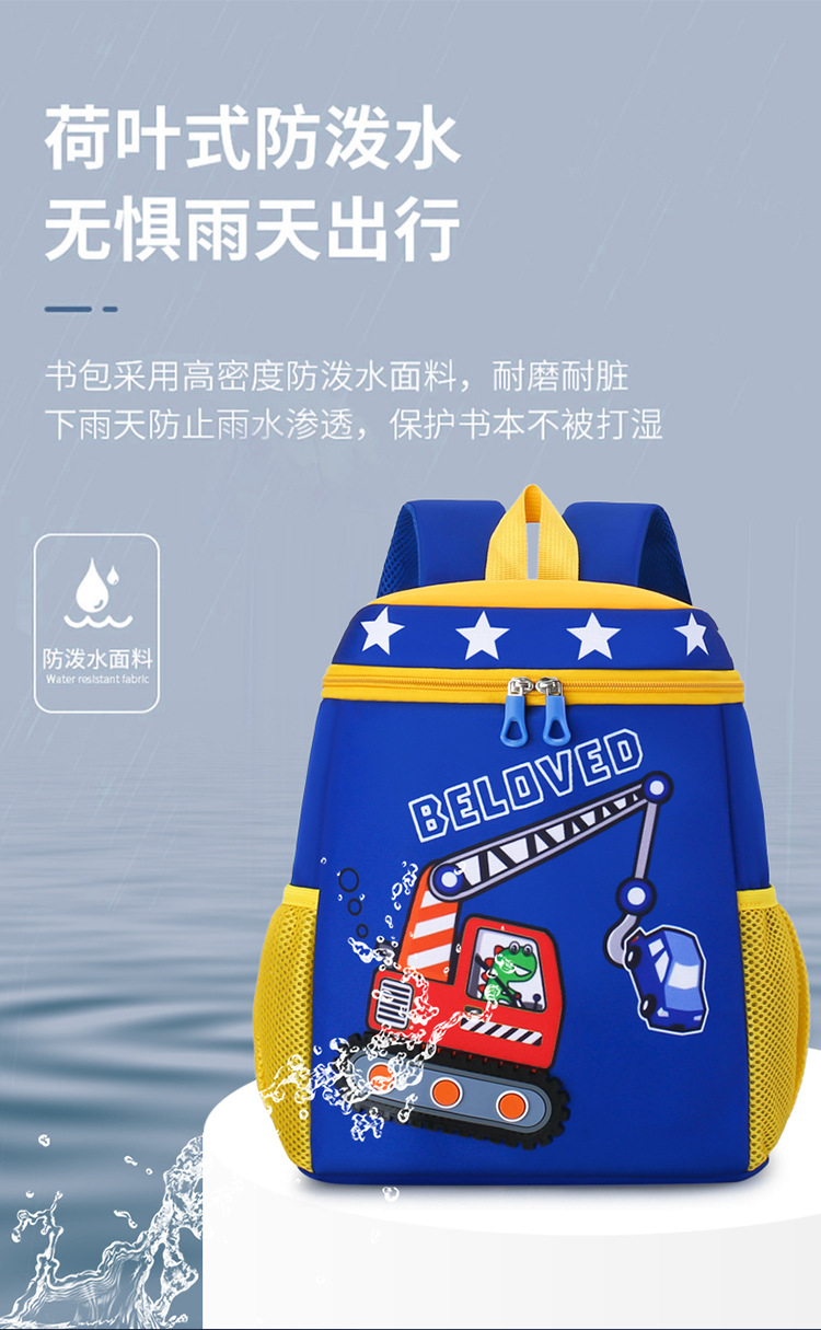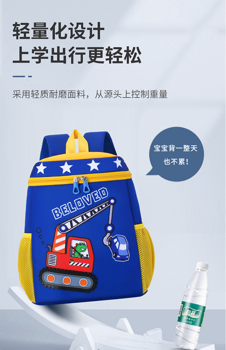 Mochila infantil de dibujos animados, coche de ingeniería, mochila escolar para niños, jardín de infantes, mochila transpirable para niñas de clase media y grande, luz