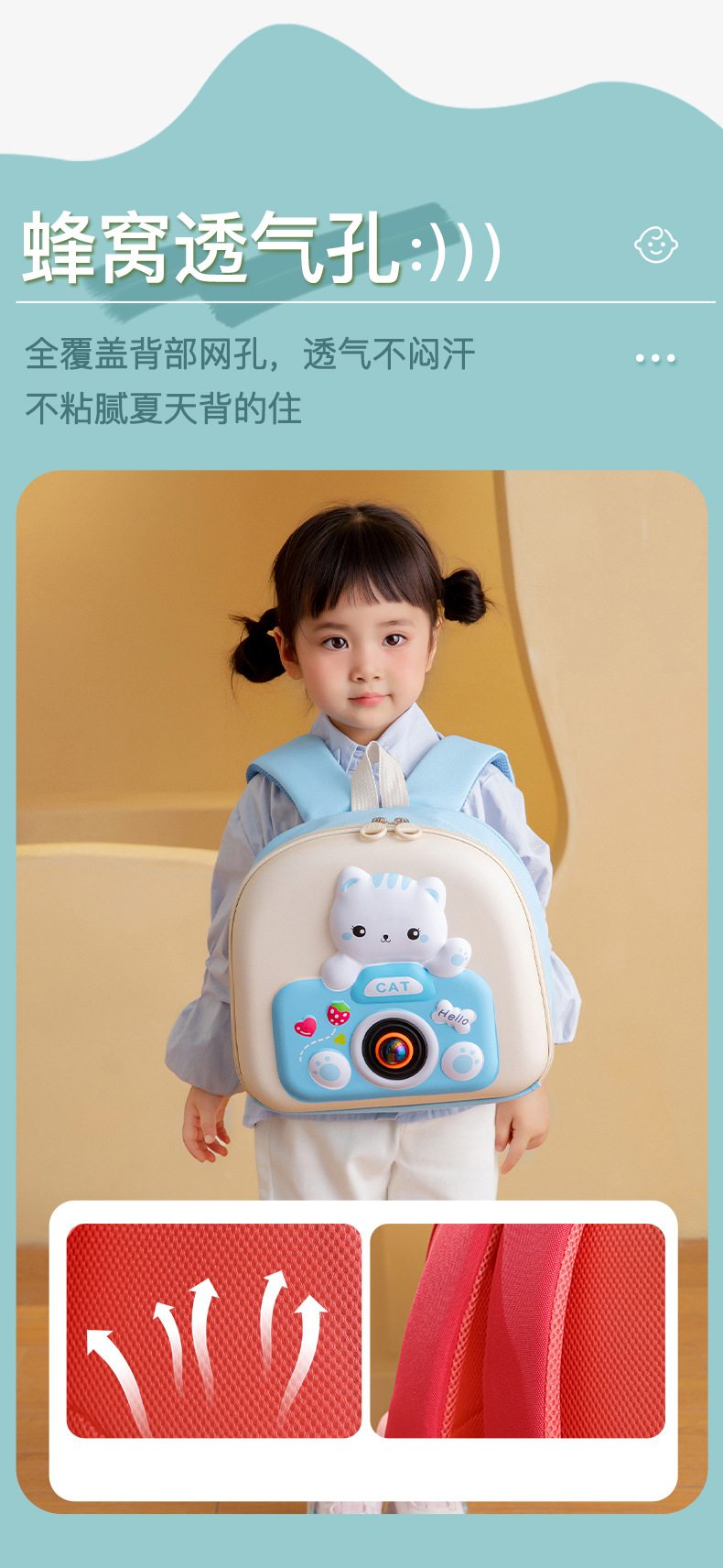 Mochila infantil infantil de dibujos animados lindo gatito niñas mochila transpirable preescolar 3 años 5 años mochila para niños