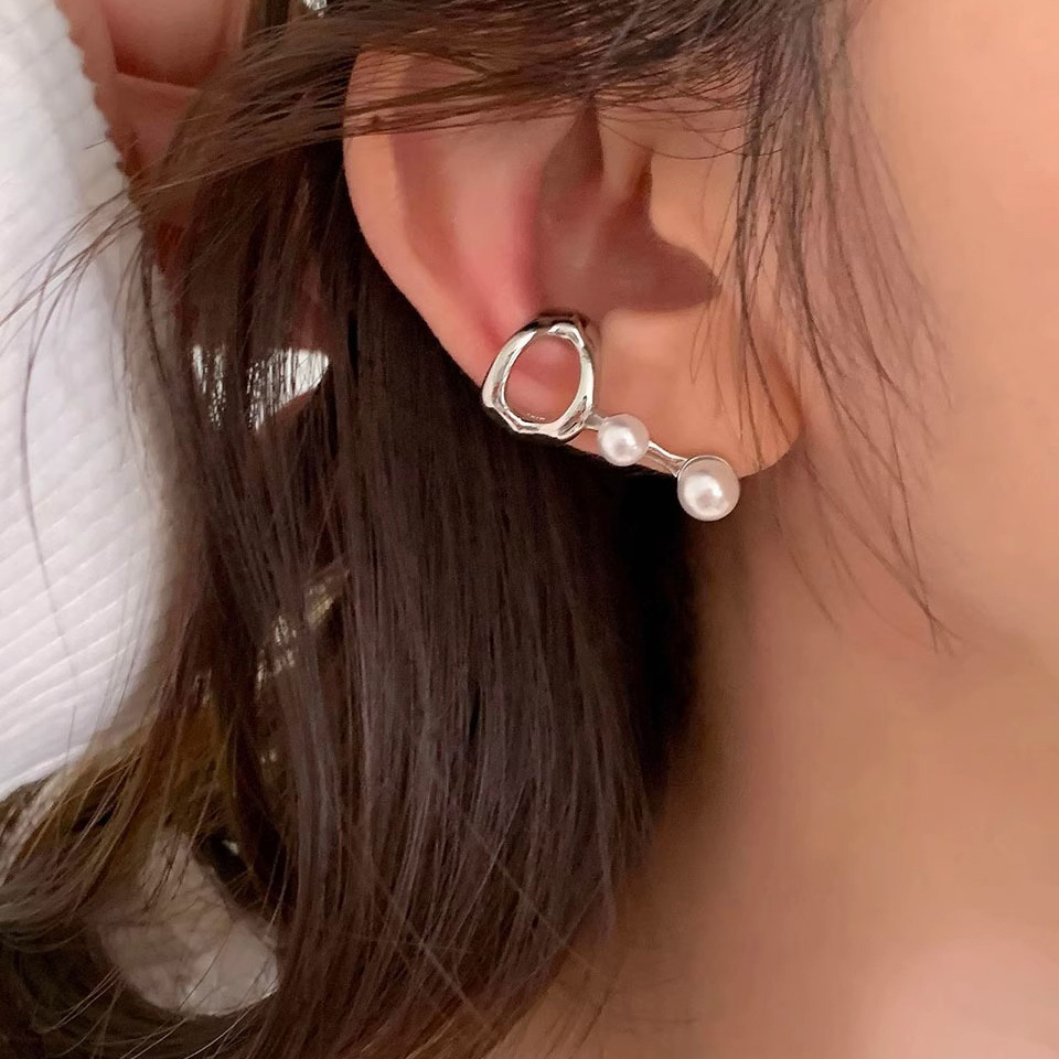 Los nuevos pendientes de perlas de agua dulce de Corea del Sur, pendientes mate minimalistas de metal, temperamento de moda, clips de pelo corto simples y versátiles