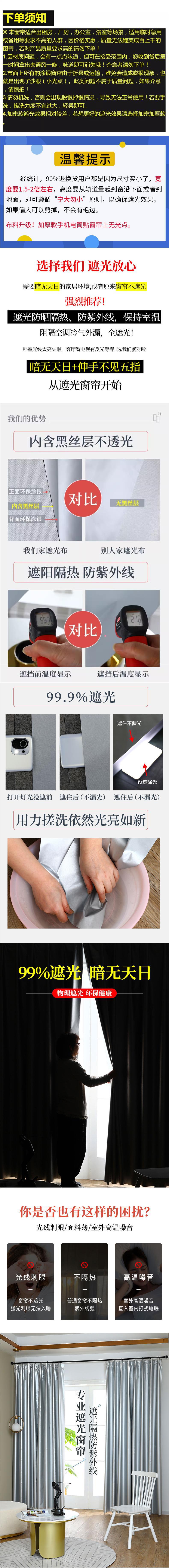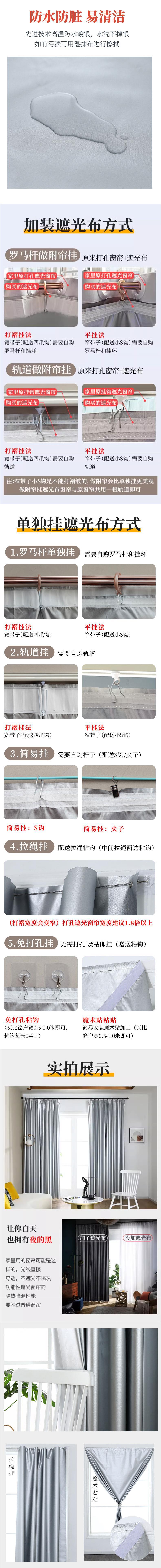 Cortina de protección térmica totalmente opacada gancho de dormitorio simple opaco nuevo tela plateada más gruesa para protegerse del sol como nubes