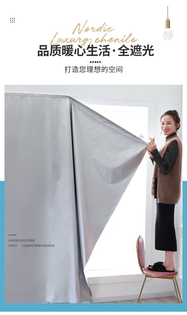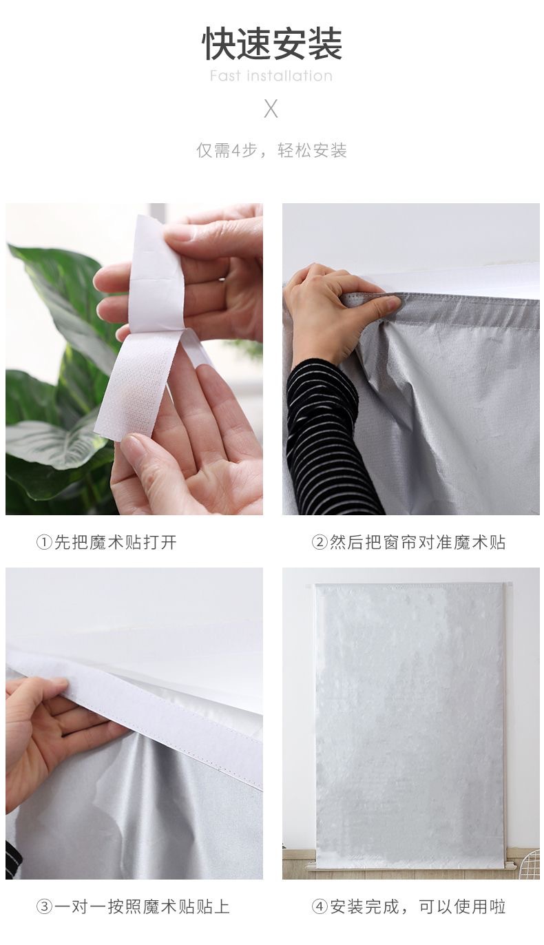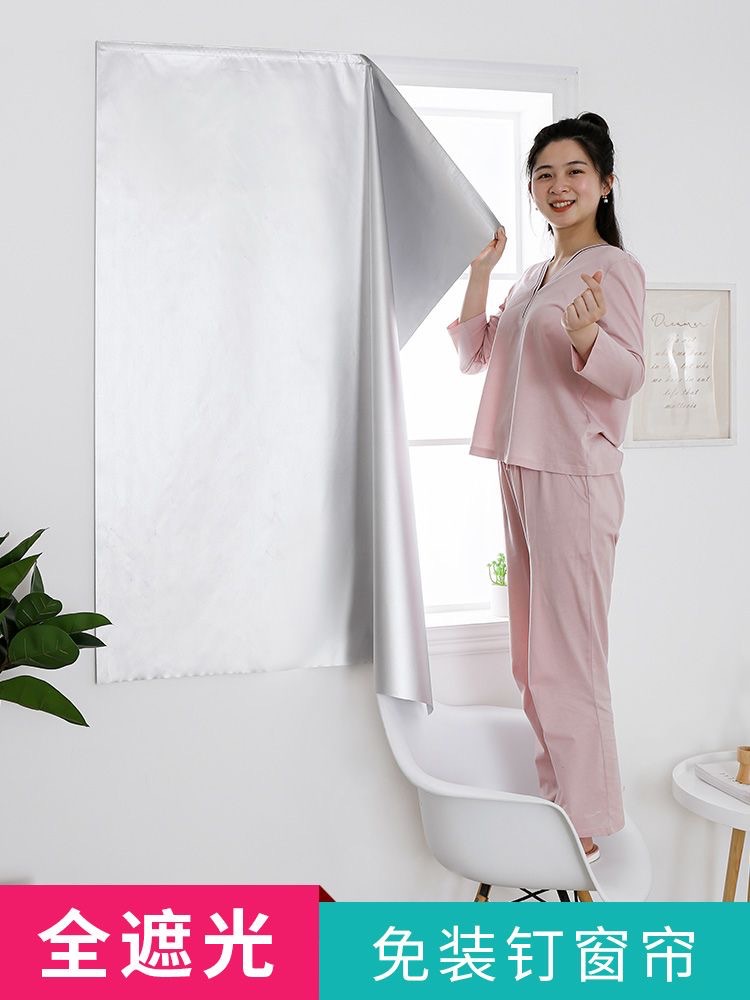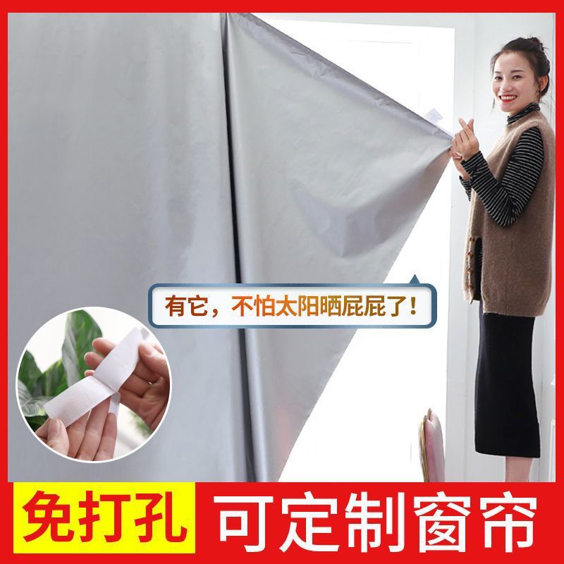 Cortina de sombra cortina sin agujeros autoadhesivo dormitorio casero velcro cortina de sombra dormitorio alquiler cortina productos terminados