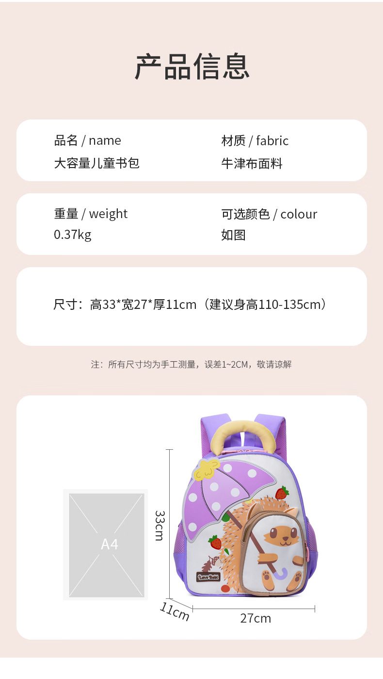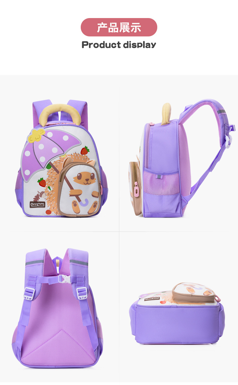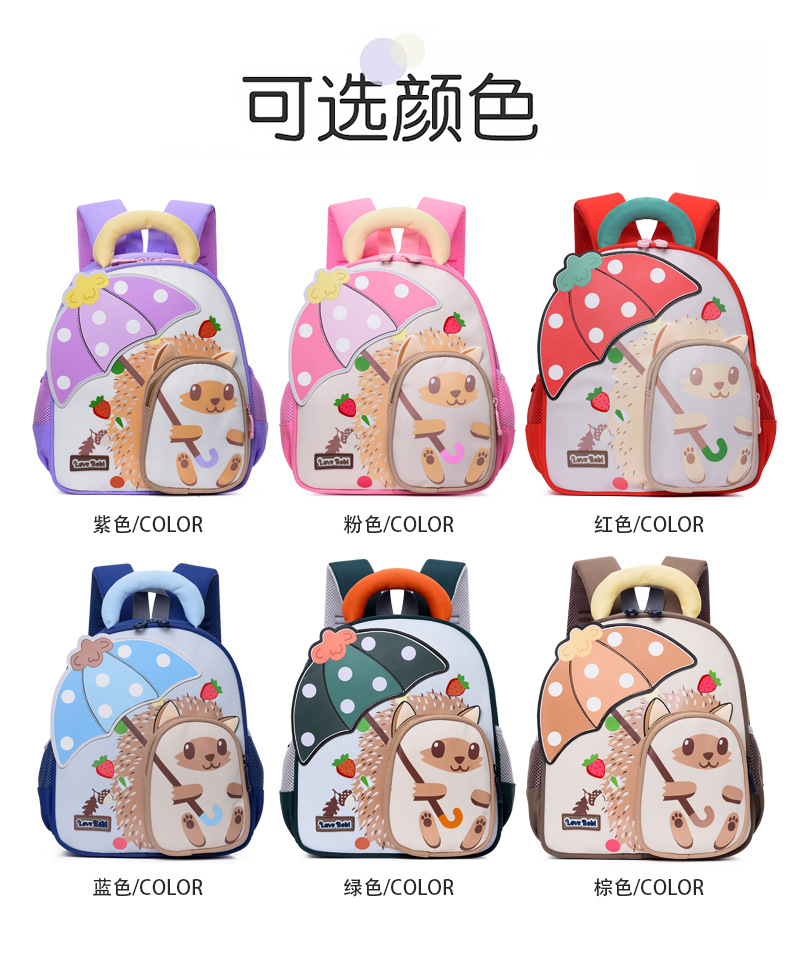 Mochila escolar de jardín de infantes para niños Mochila de preescolar de dibujos animados pequeño erizo