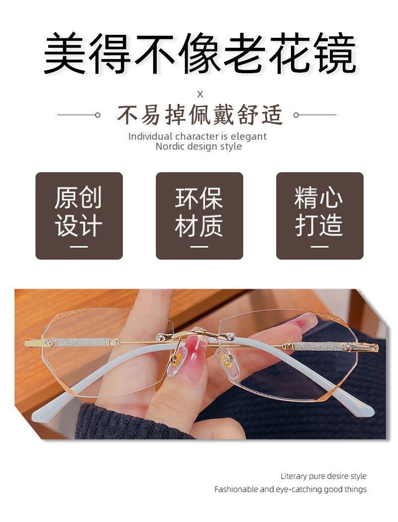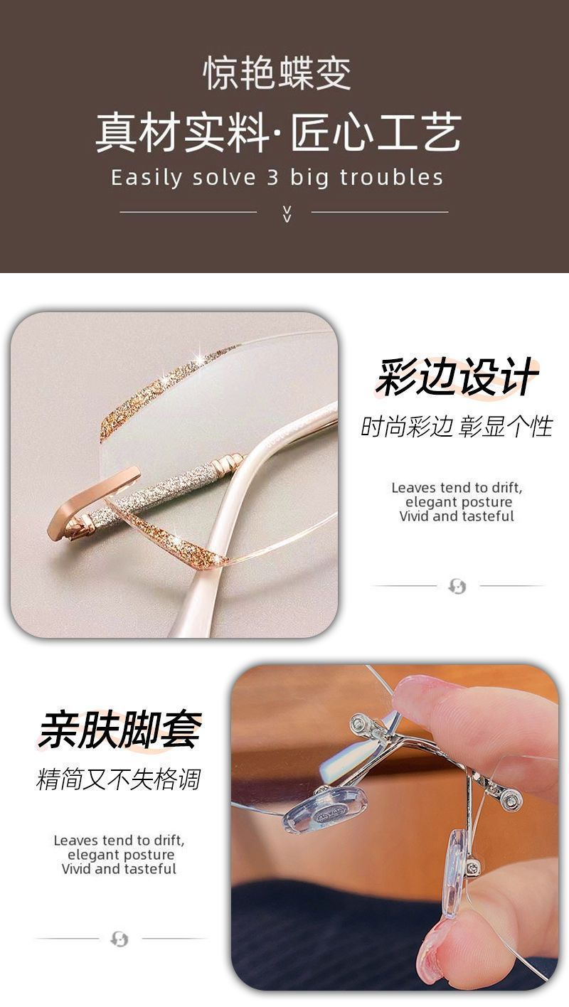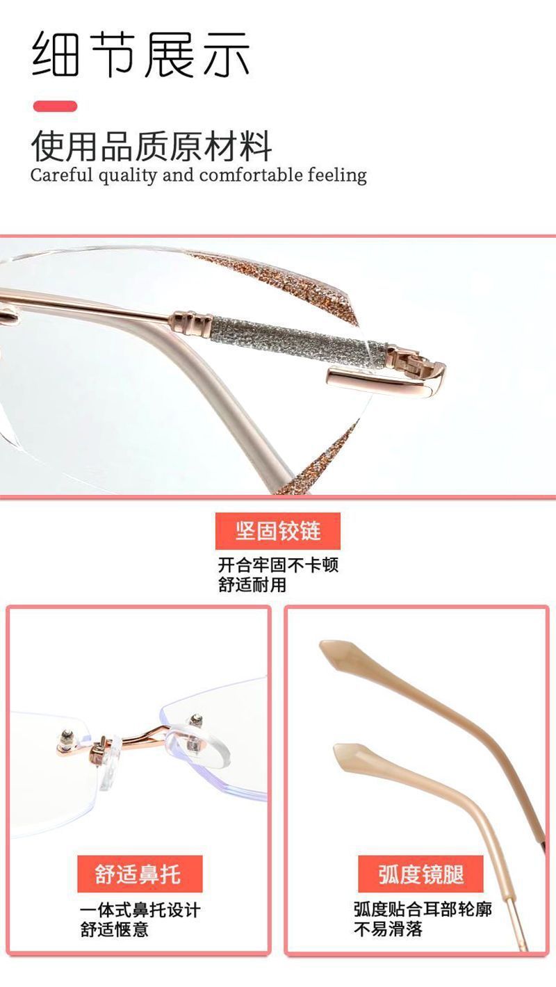 Nuevas gafas de corte sin marcos de alta calidad Starlight Glass Brilliant Edge para gafas de leopardo con grado de gafas de explosión a prueba de luz azul
