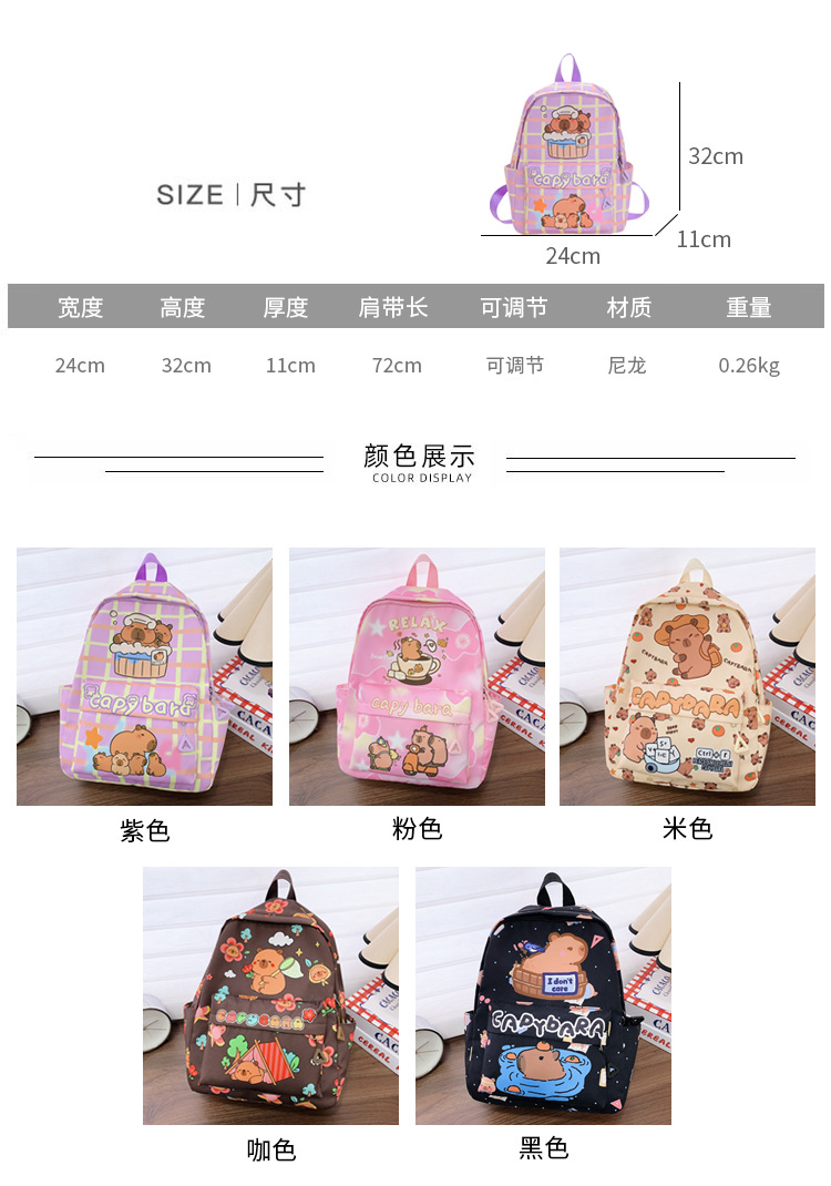 Nuevas mochilas transfronterizas para niños jardín de infantes para niños niñas lindas mochilas de dibujos animados al aire libre ocio capibara