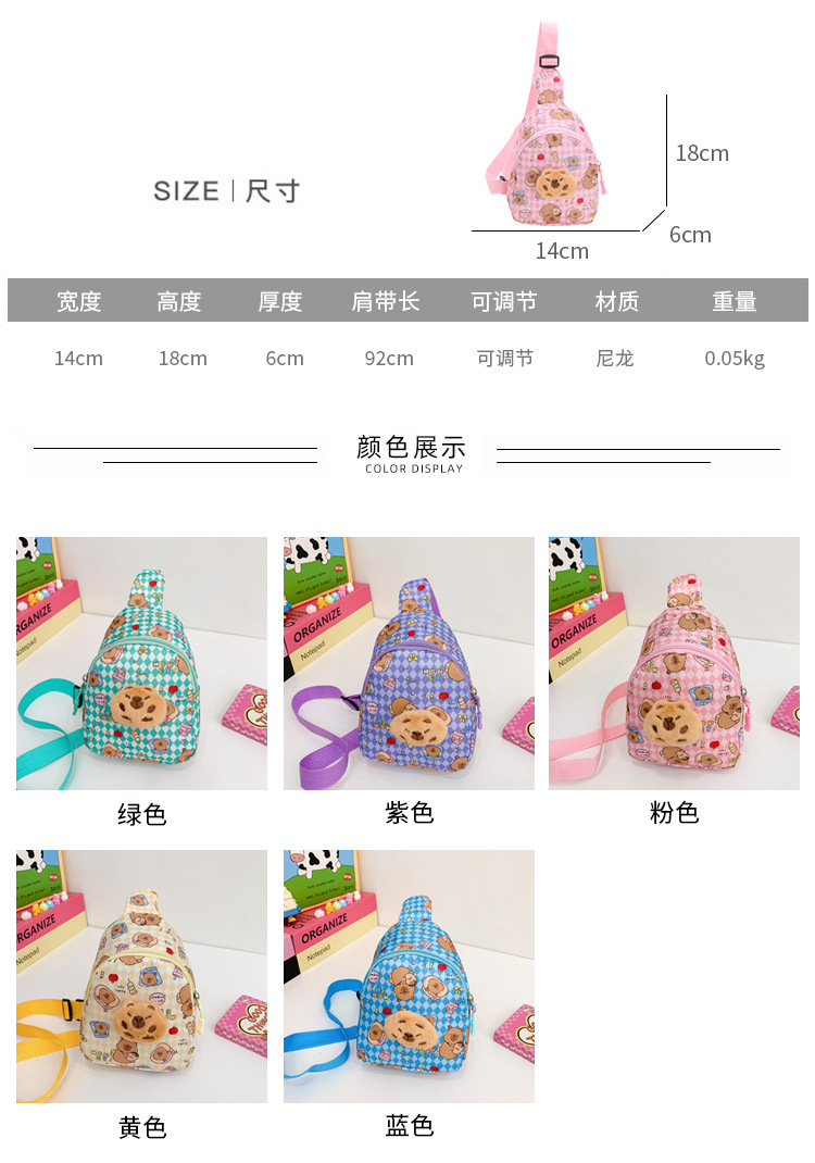 Bolso de niños encantador, bolso de mochila infantil de dibujos animados, bolso de cambio para bebés extranjeros, bolso de pecho de niña al aire libre