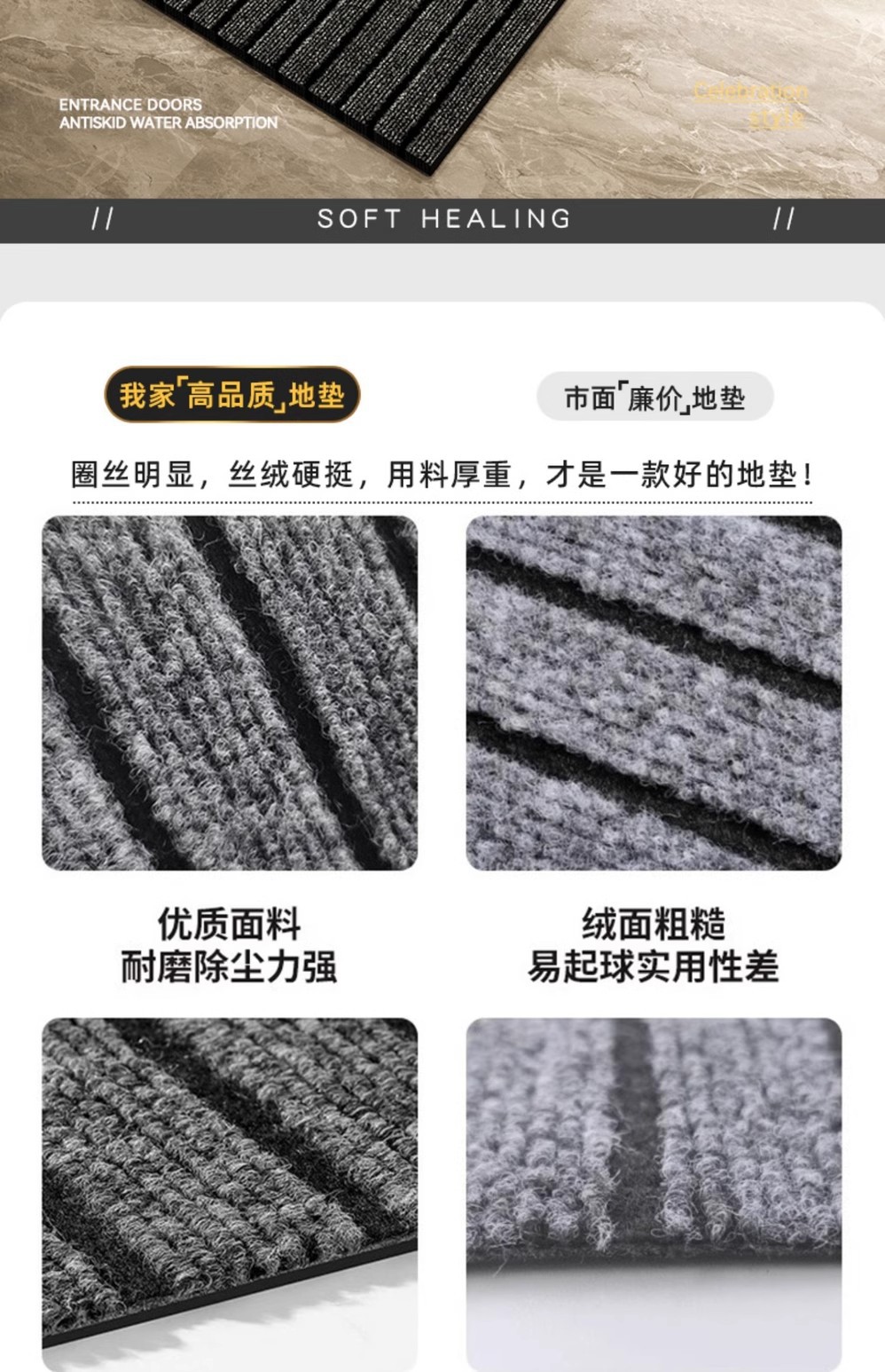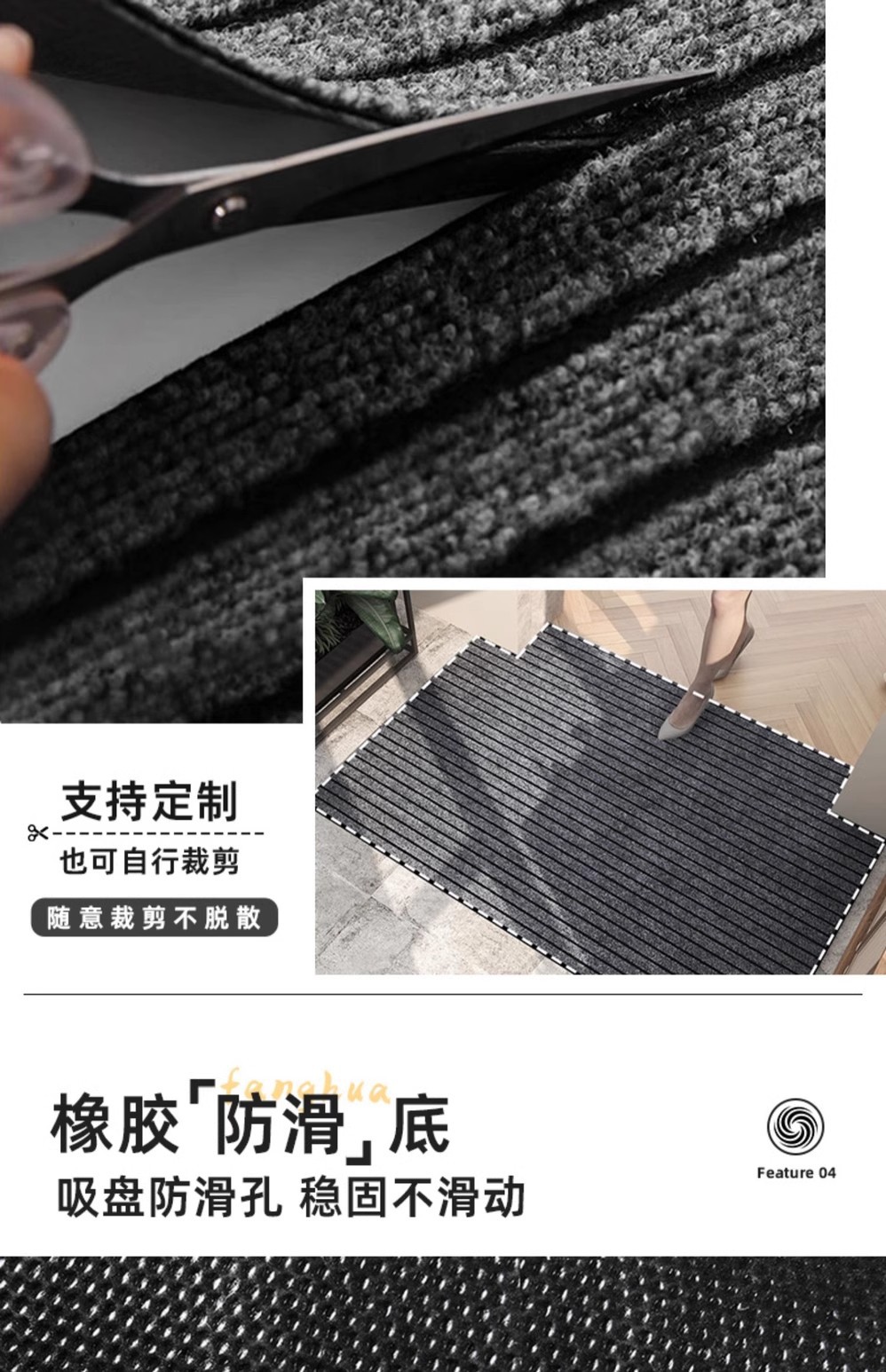 Alfombra de piso de alta sensación puerta alfombra de pie puerta alfombra de puerta doméstica anti-sucia eliminación de polvo tira de corte