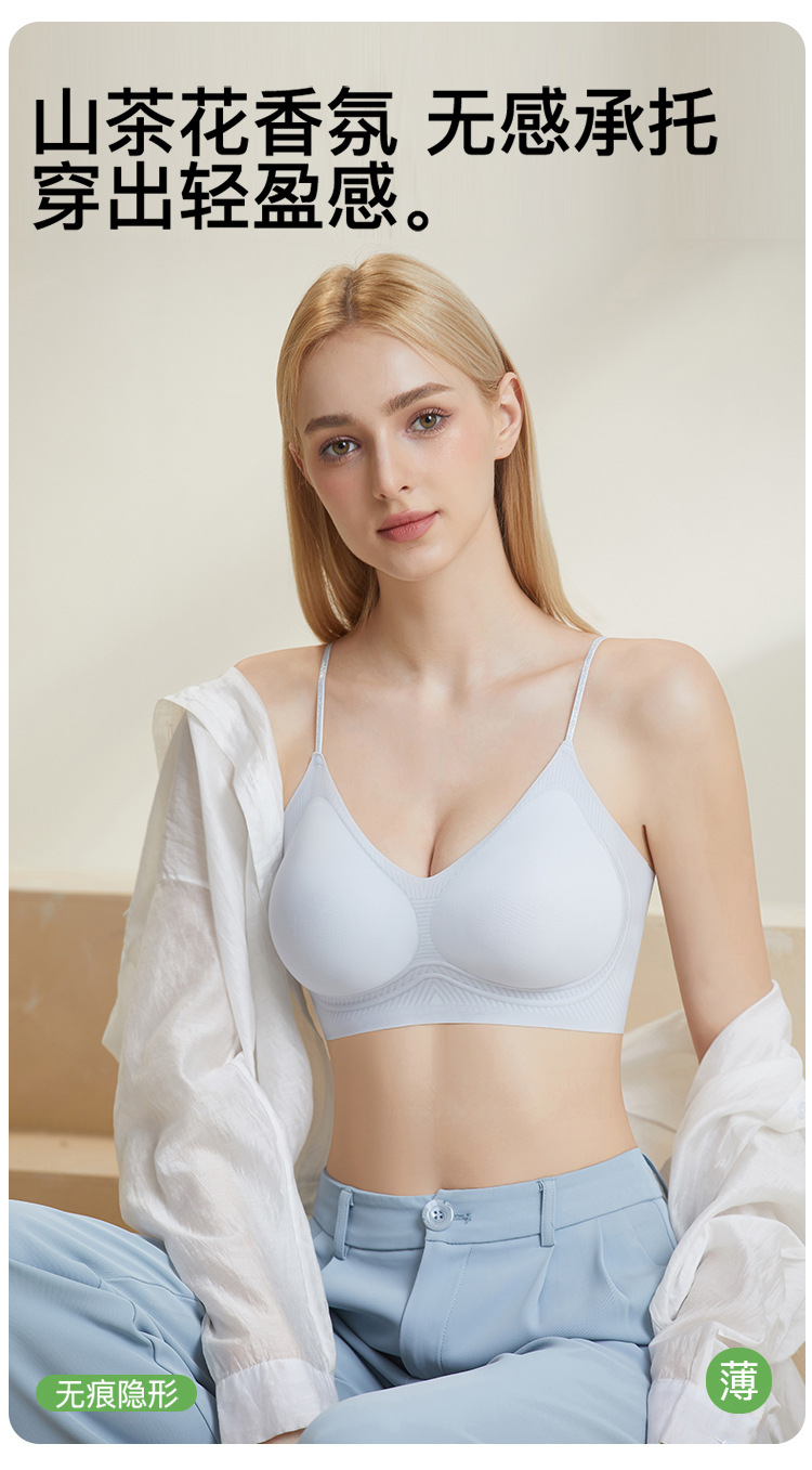 Ropa interior femenina estilo fino de verano sin costuras fragancia de camelia fresca hermosa espalda femenina ropa interior con tirantes finos base líquida ropa interior invisible