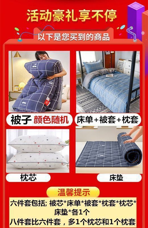 Sopa de cama, conjunto completo de seis piezas, un conjunto completo de ropa de cama, dormitorio de estudiantes individuales, conjunto de ropa de cama de ocho piezas