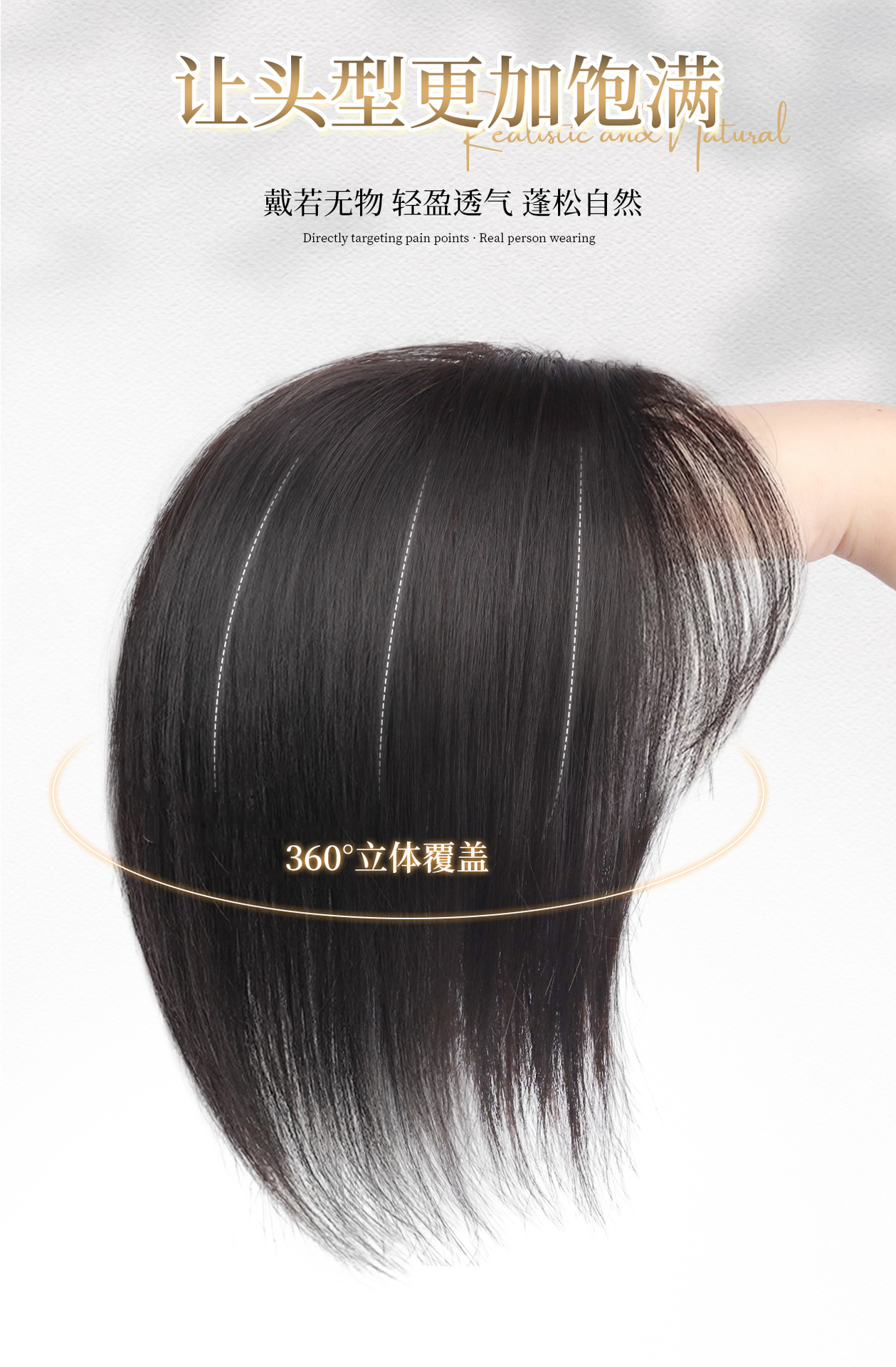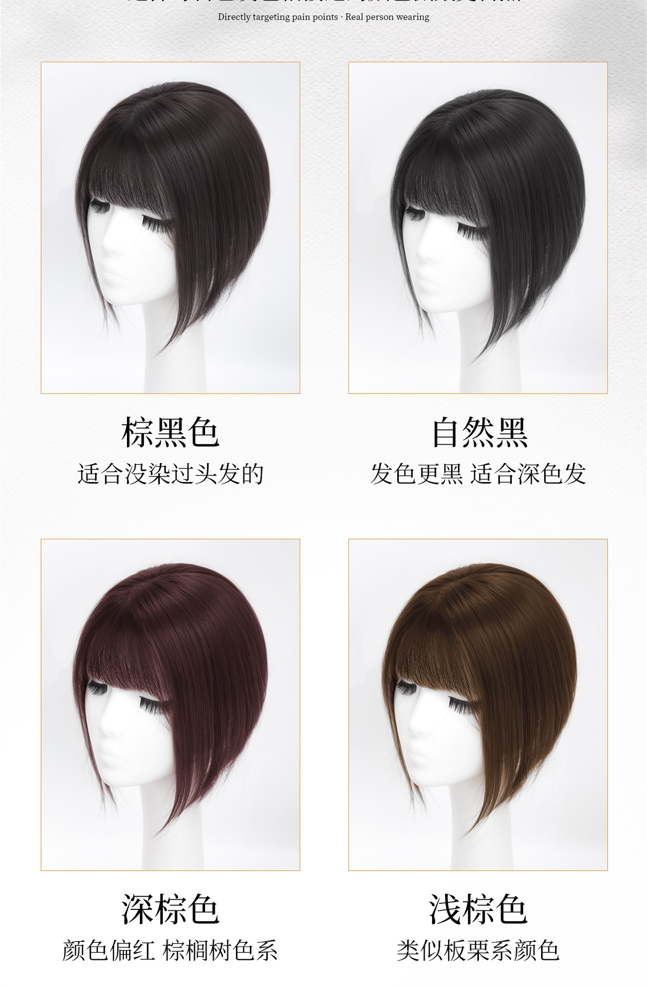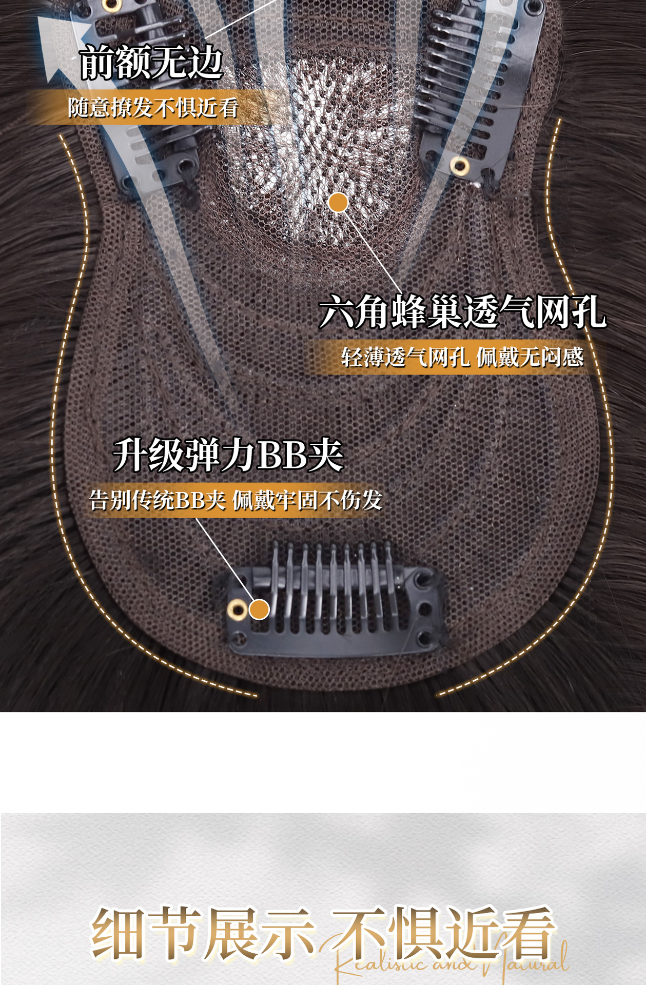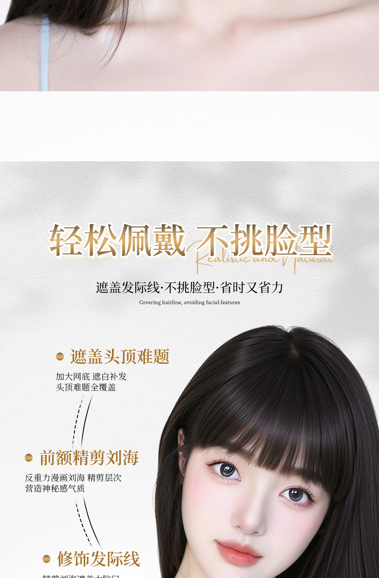 Peruca de mujer cabeza natural simulación de cabello caricatura franja reposición de cabello esponjoso cráneo alto blanqueamiento sin marcas franjas falsas