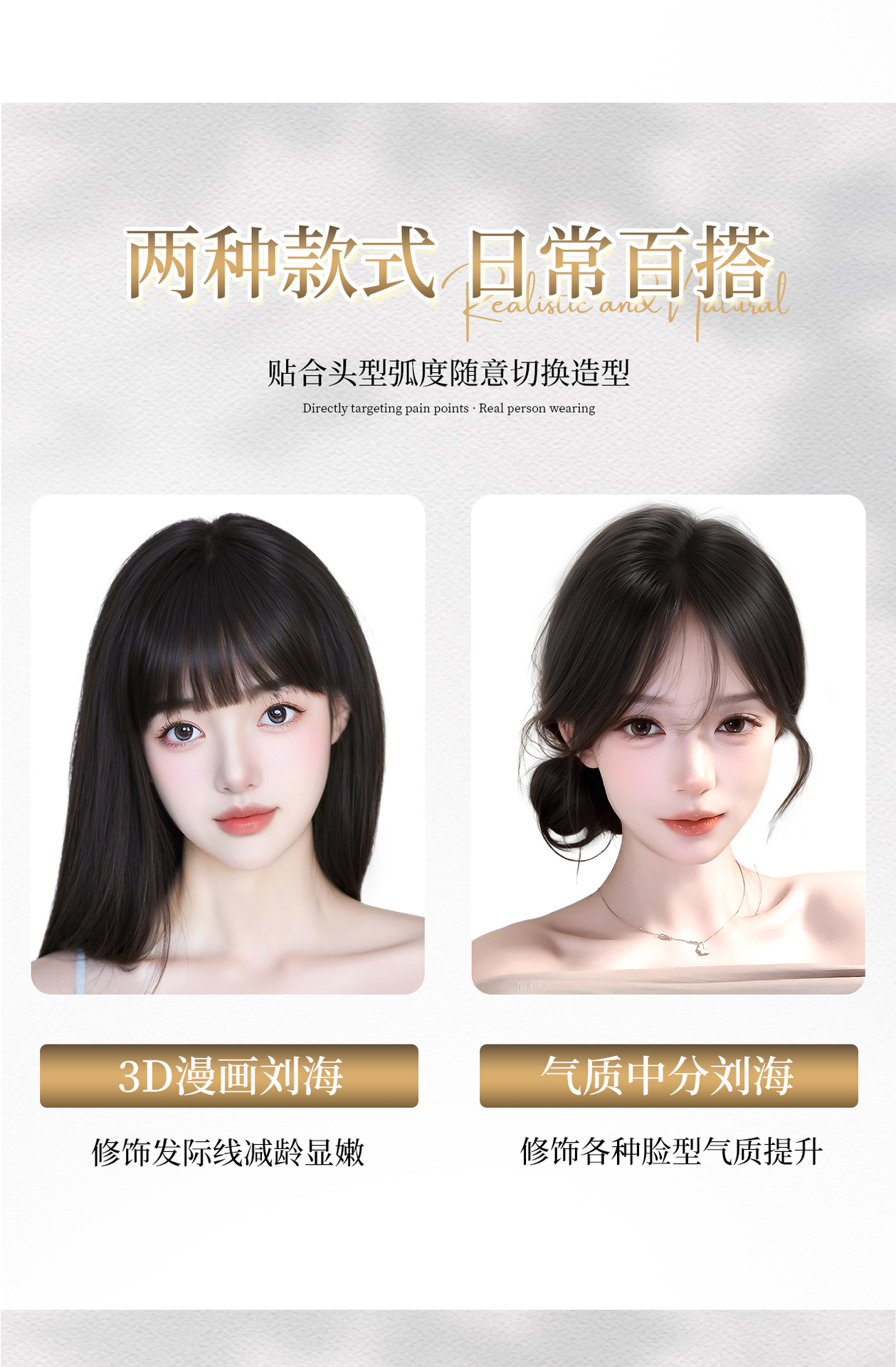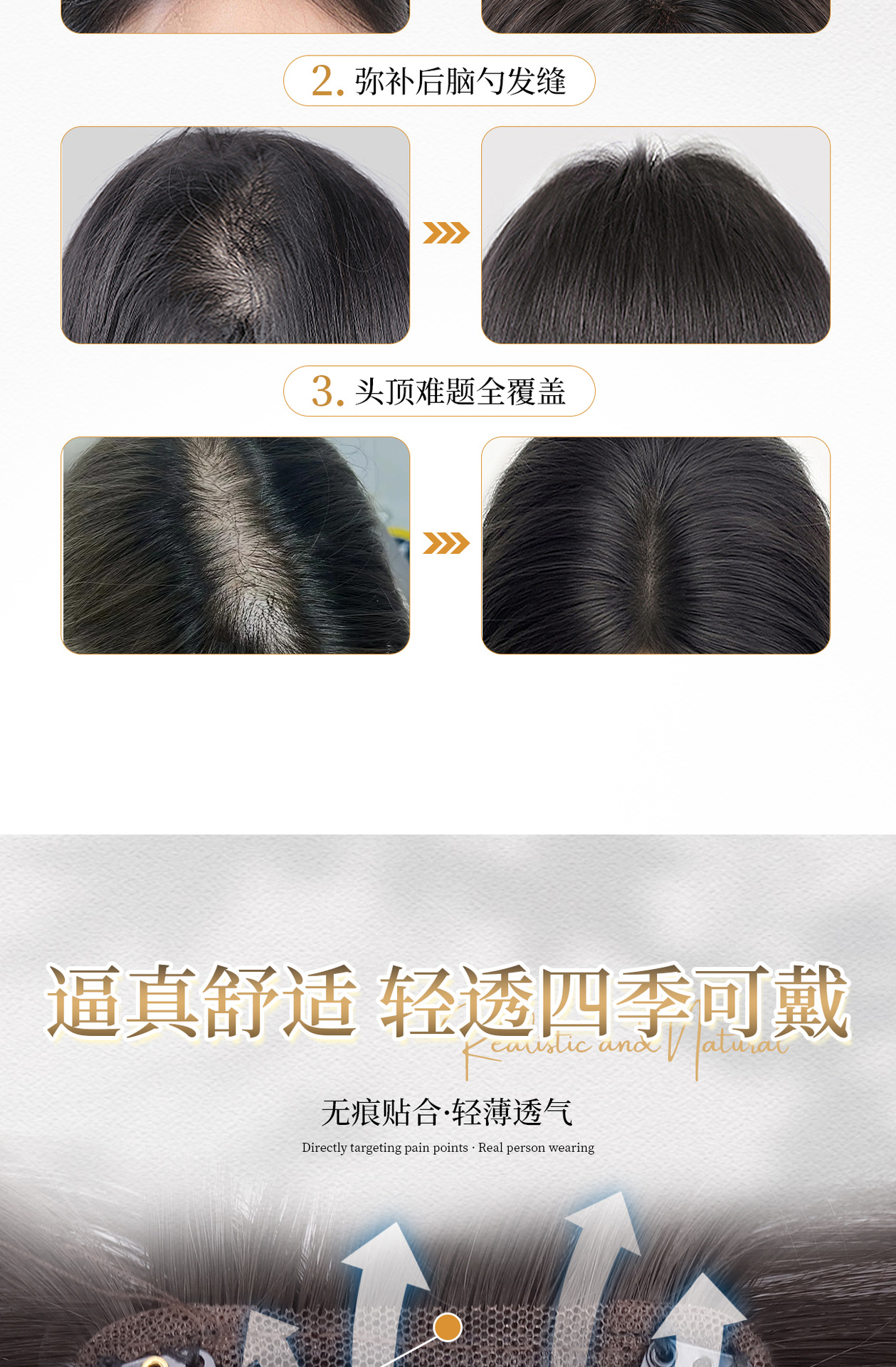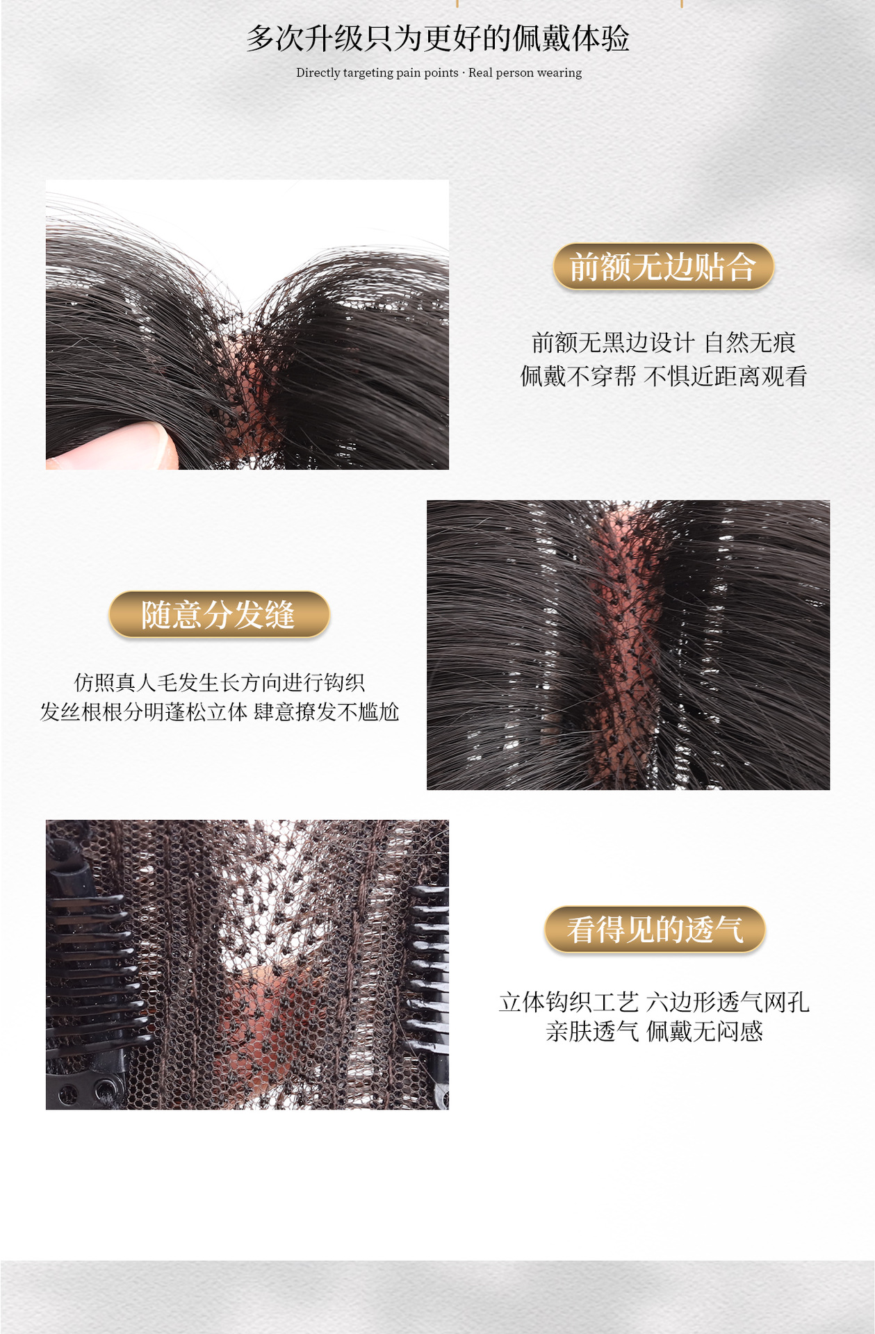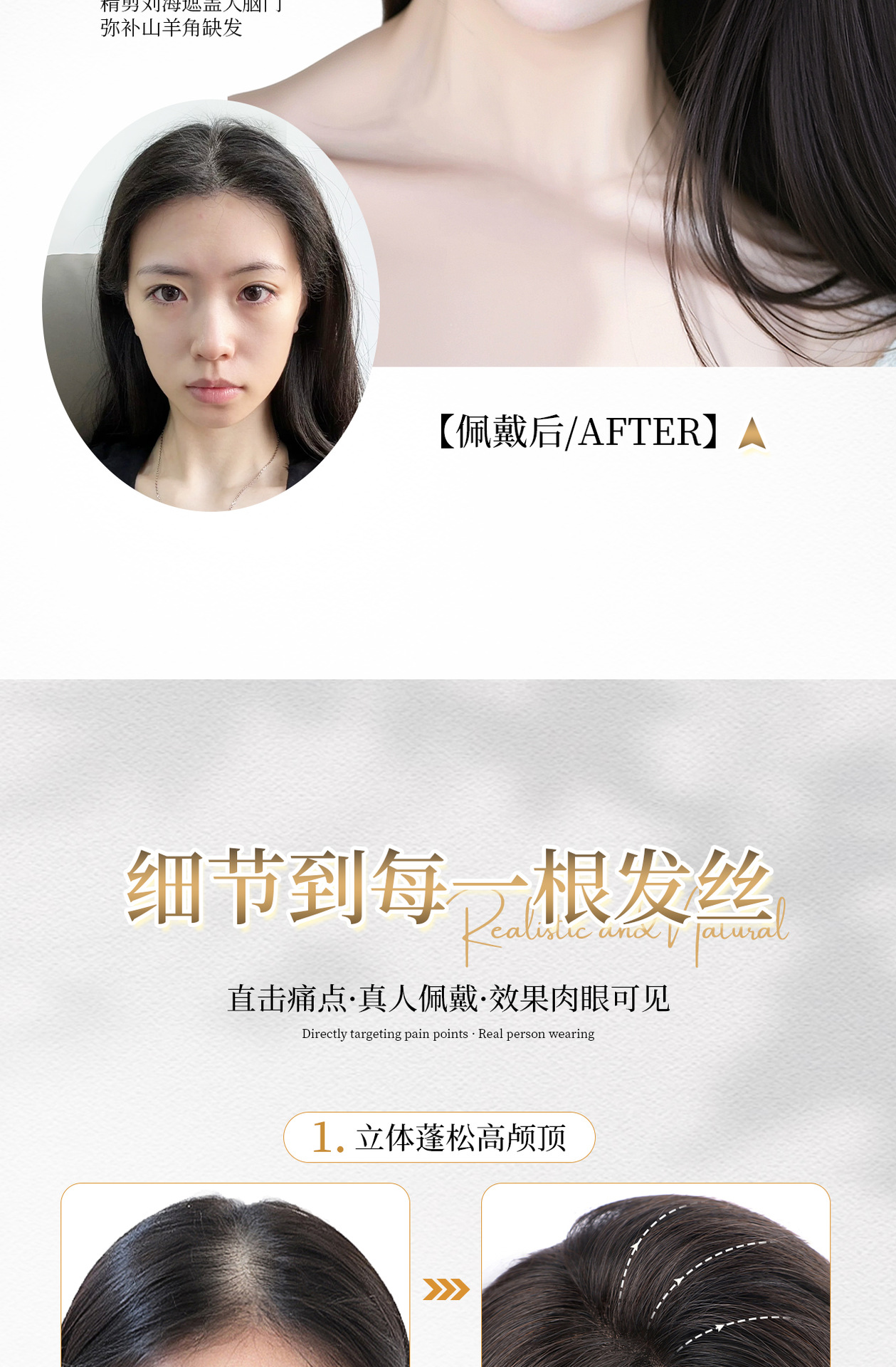 Peruca de mujer cabeza natural simulación de cabello caricatura franja reposición de cabello esponjoso cráneo alto blanqueamiento sin marcas franjas falsas