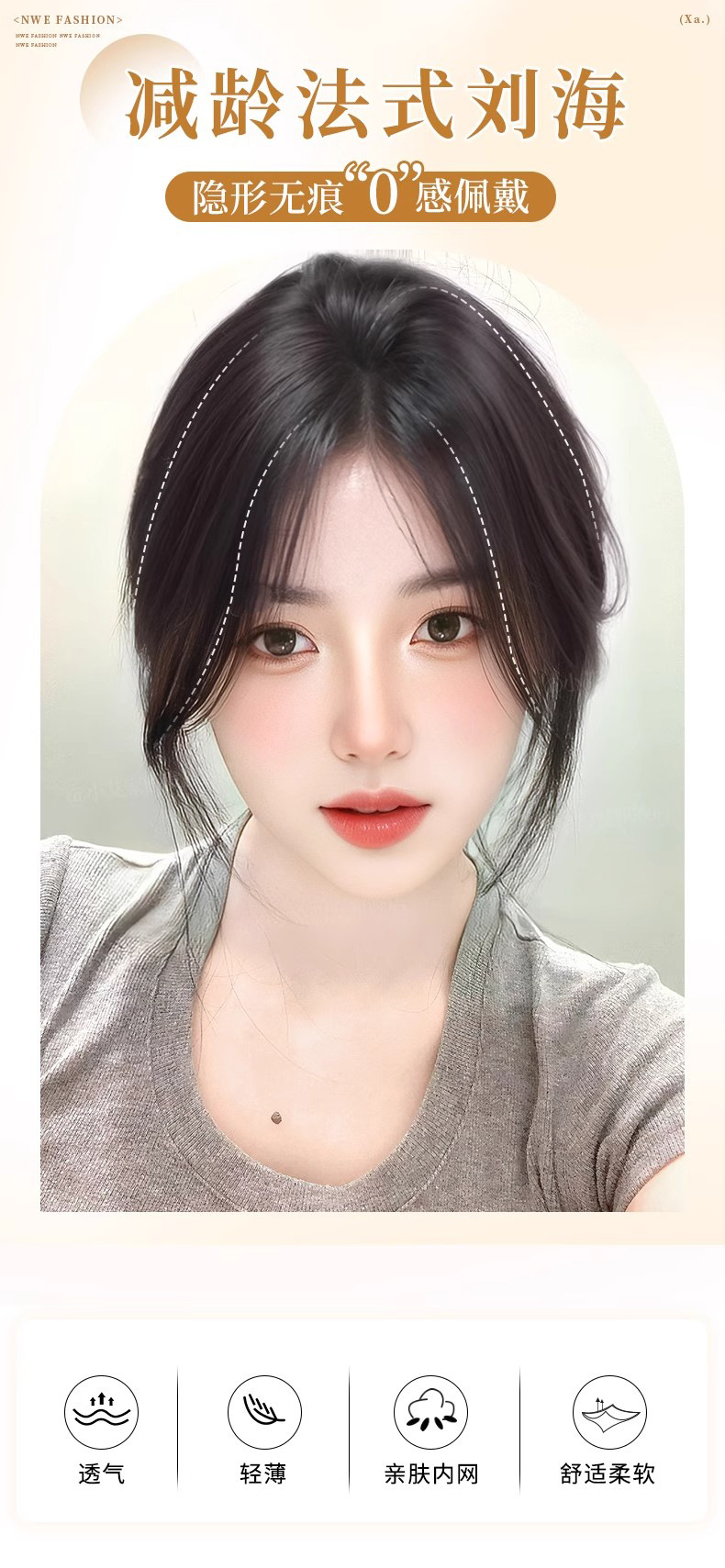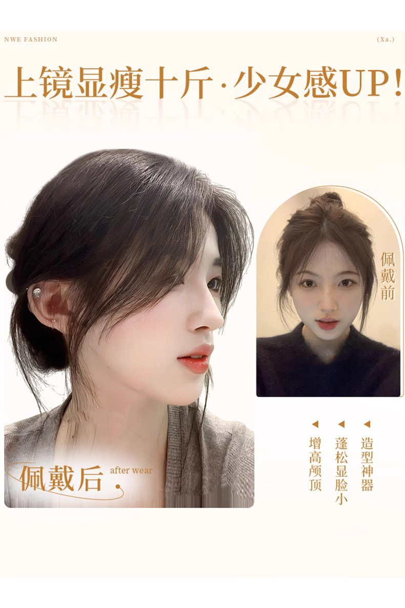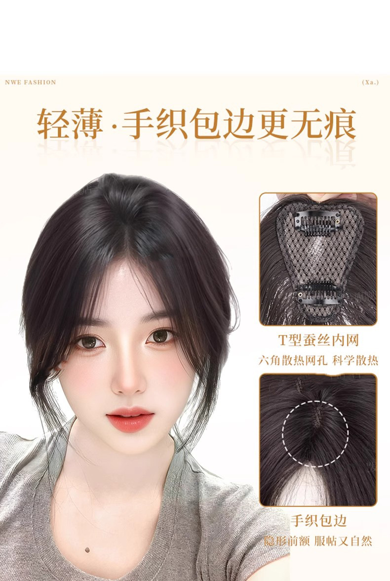 Peluca, flequillo femenino, cabello blanco en la parte superior de la cabeza, peluca ligera, frente natural, línea del cabello, flequillo falso de ocho caracteres