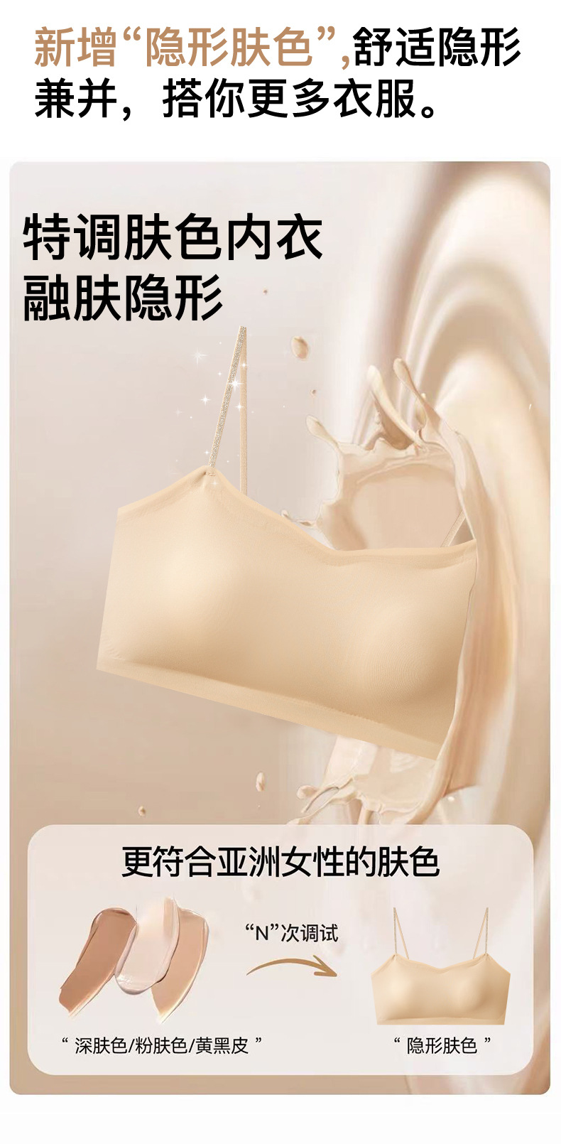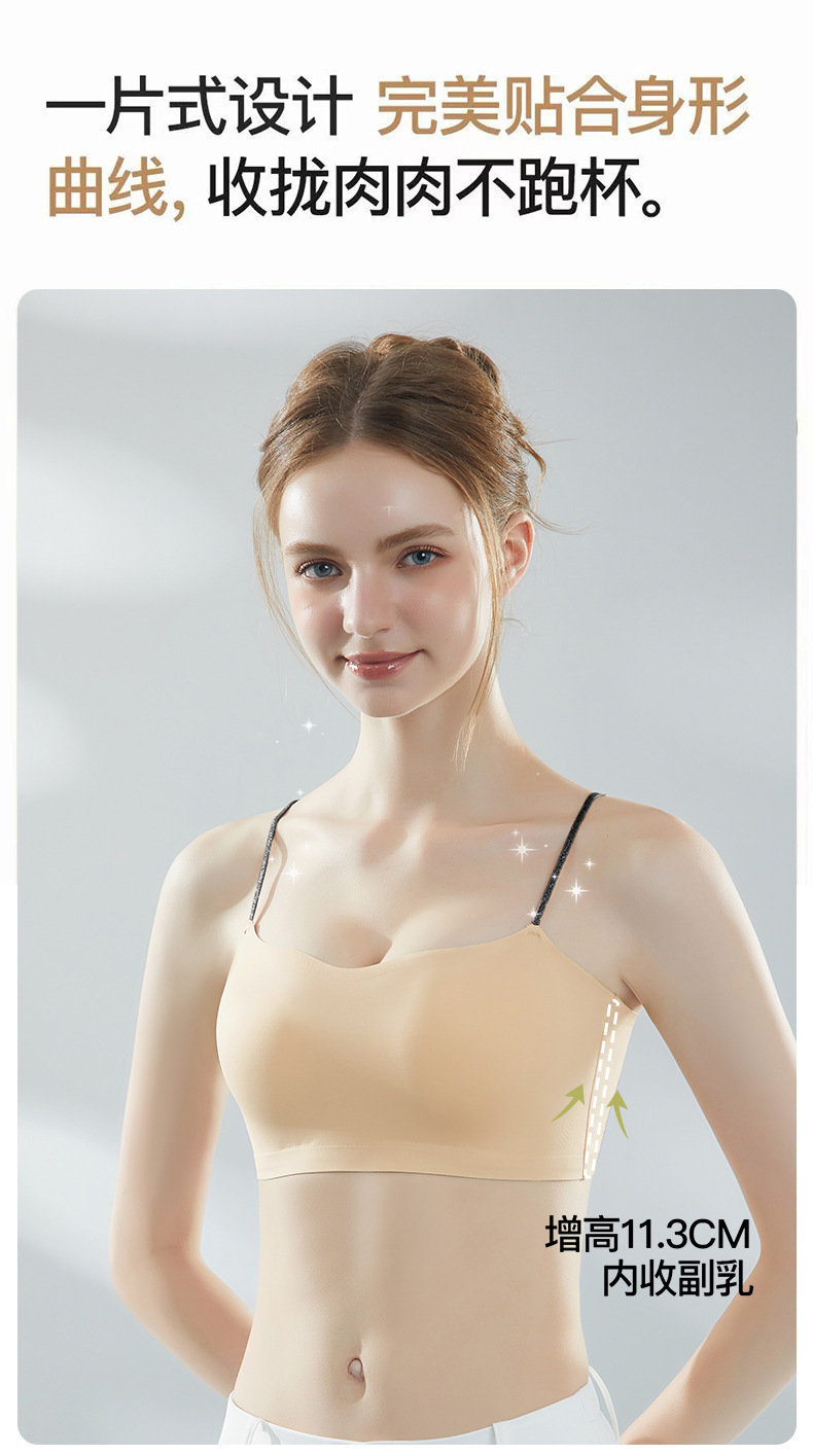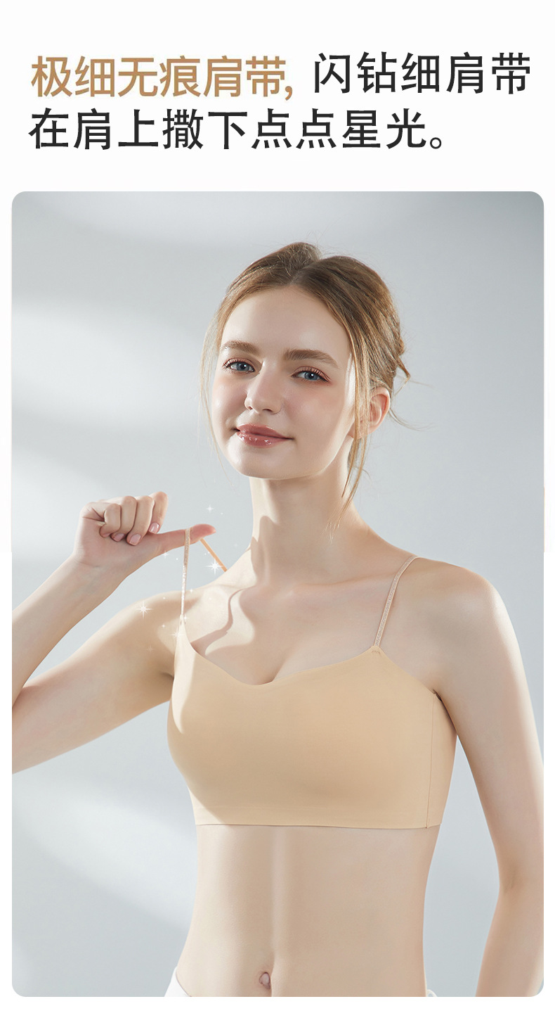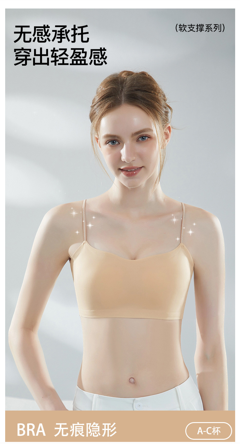 Ropa interior de tubo con tirantes finos para hombros descubiertos para mujer, estilo fino de verano, pecho pequeño, estudiantes universitarios, base líquida invisible, sujetador femenino