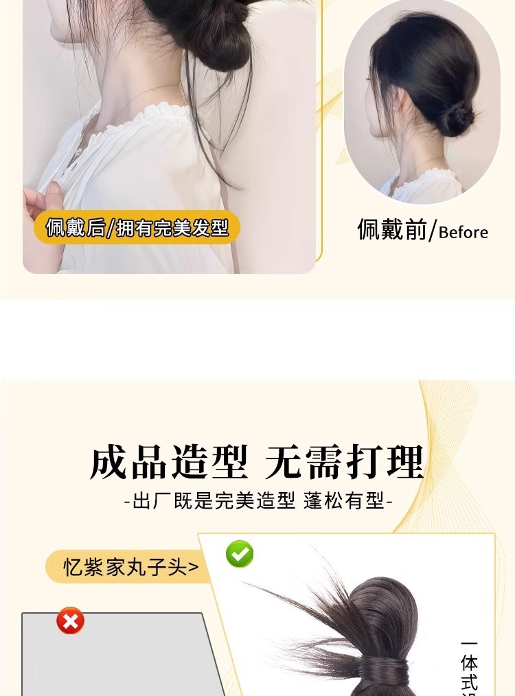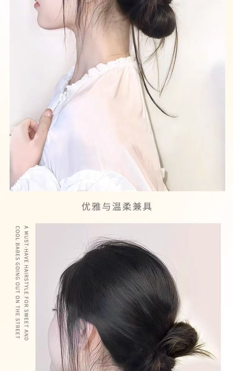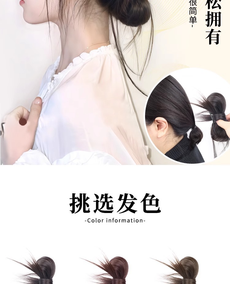 Peluca, anillo para el cabello, cabeza de bola, todo en uno, pinza para el cabello con botones florales de puntero bajo, pinza de plumas de pollo, bolsa para el cabello esponjosa