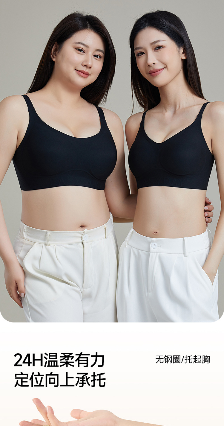 ropa interior de gran tamaño para mujeres con la espalda abierta Pequeño colarse expansión gran fondo invisible sostén de texto líquido 2026 gran taza edición de pecho grande