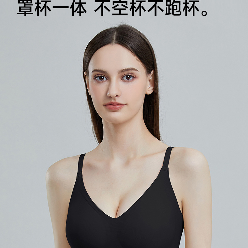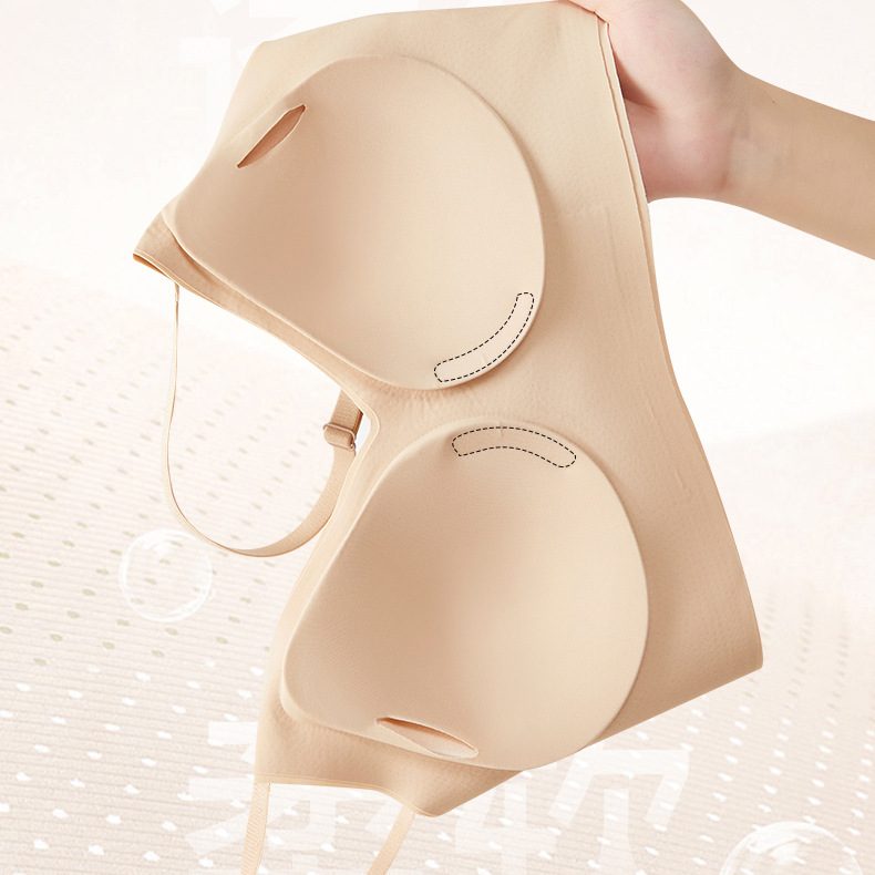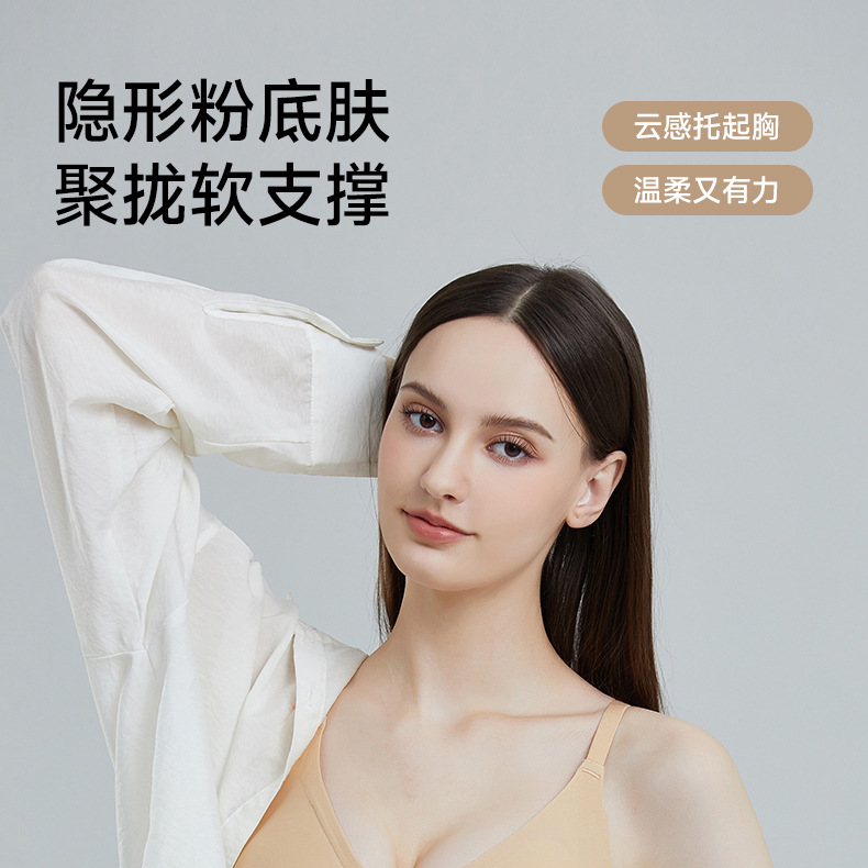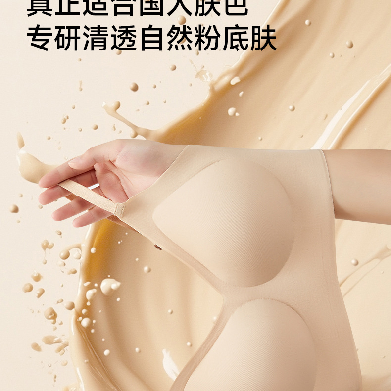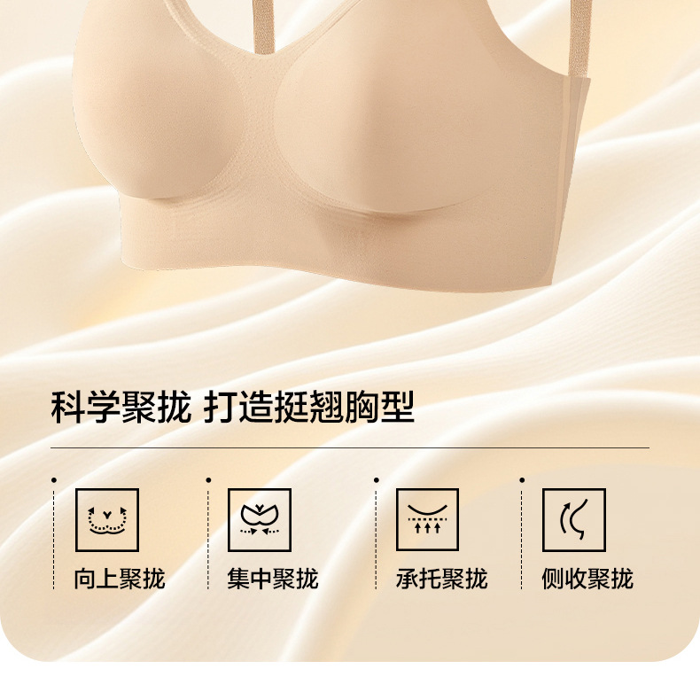 Base líquido sin marcas ropa interior mujer con cojín de pecho taza fija sujetador para ancianos sujetador sin marcas de hombro ancho