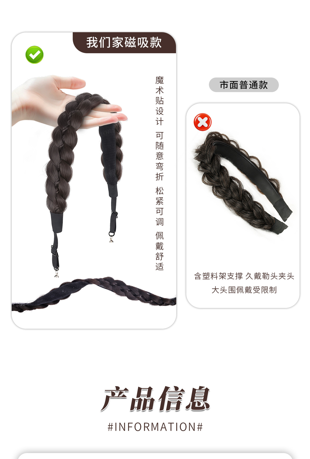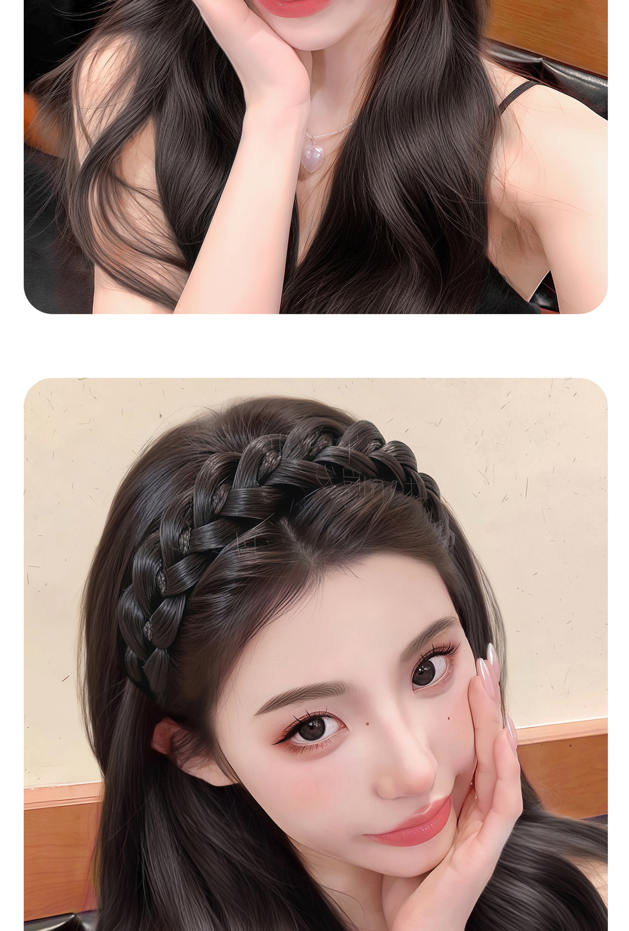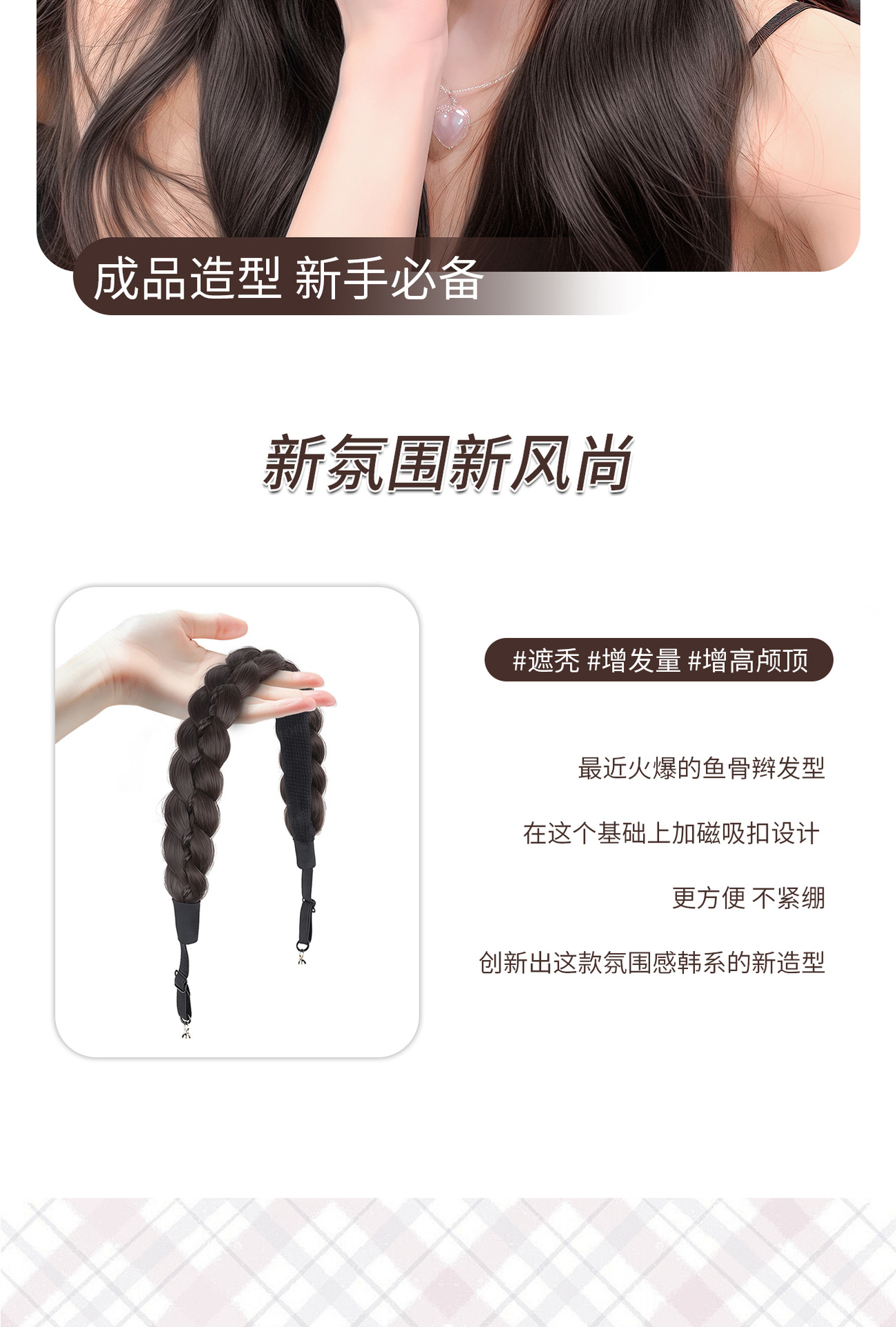 Peruca trenzada Velcro trenzada banda larga trenzada alta cráneo trenzada hueso de pescado succión peruca trenzada banda mujer