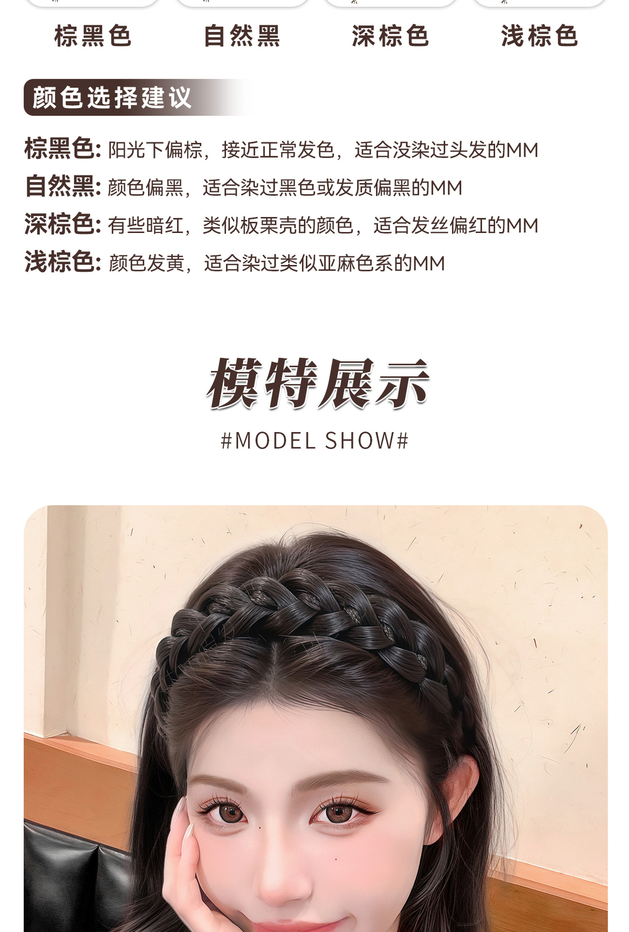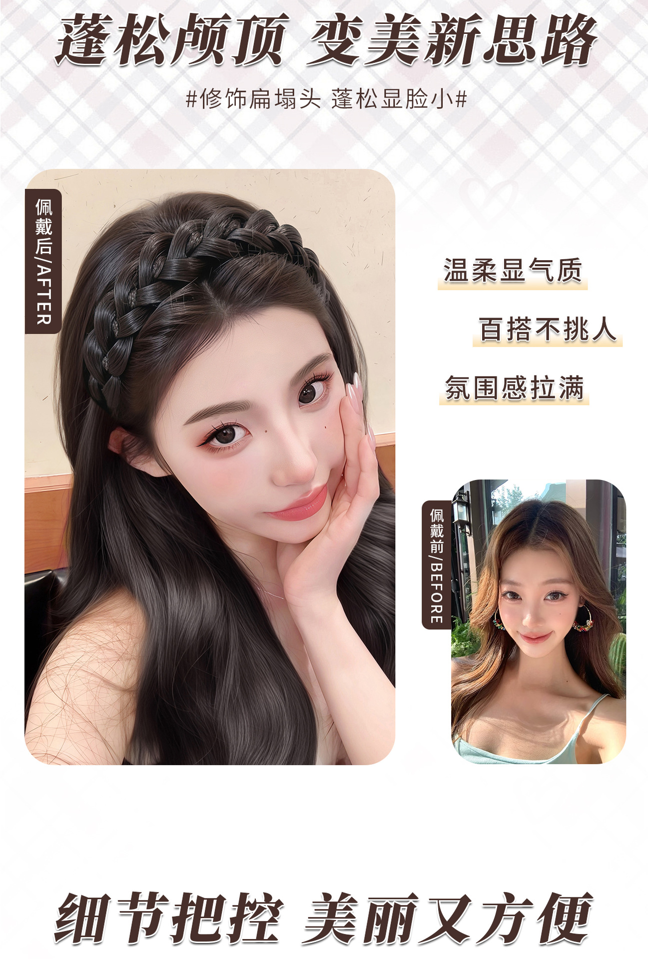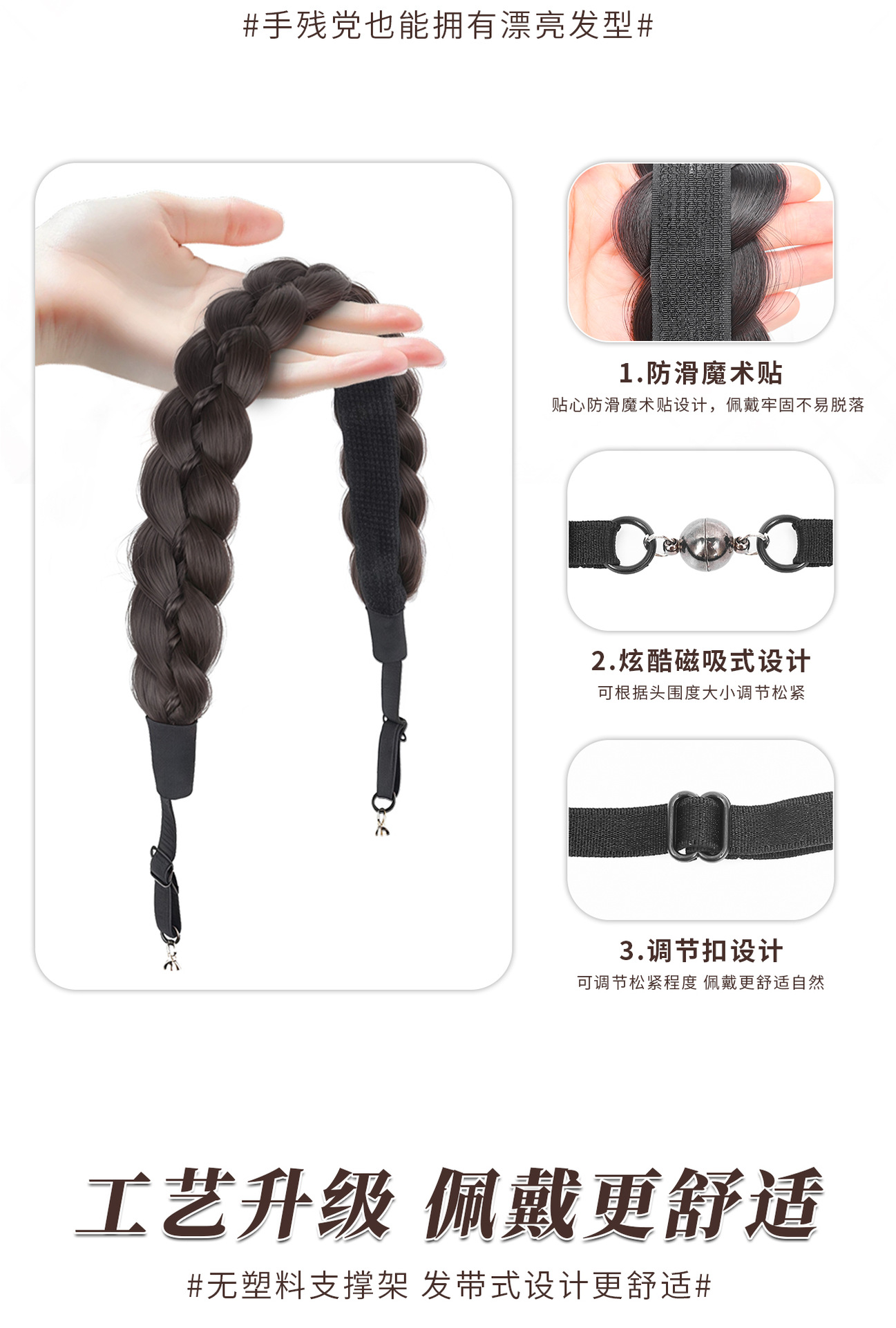 Peruca trenzada Velcro trenzada banda larga trenzada alta cráneo trenzada hueso de pescado succión peruca trenzada banda mujer