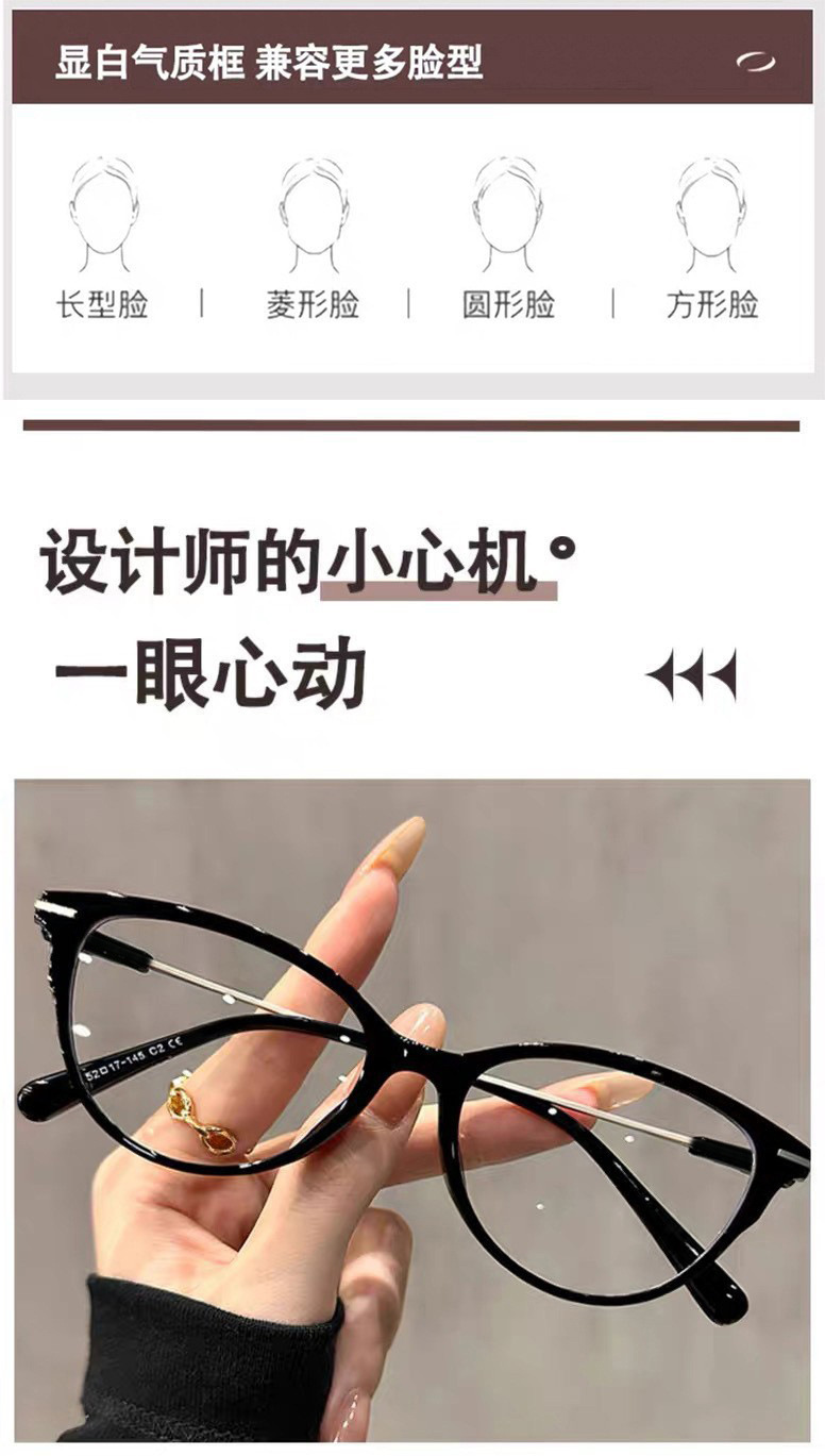 Retro de moda gafas de ojos de gato marco de alto valor facial versátil para mujeres de mediana edad protección de ojos anti-luz azul gafas de flores temperamento