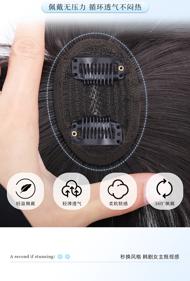 Peruca para mujeres, cabello verdadero en la parte superior de la cabeza, cabello blanco, pelucina natural, pelucina ligera, peluca de frisa.