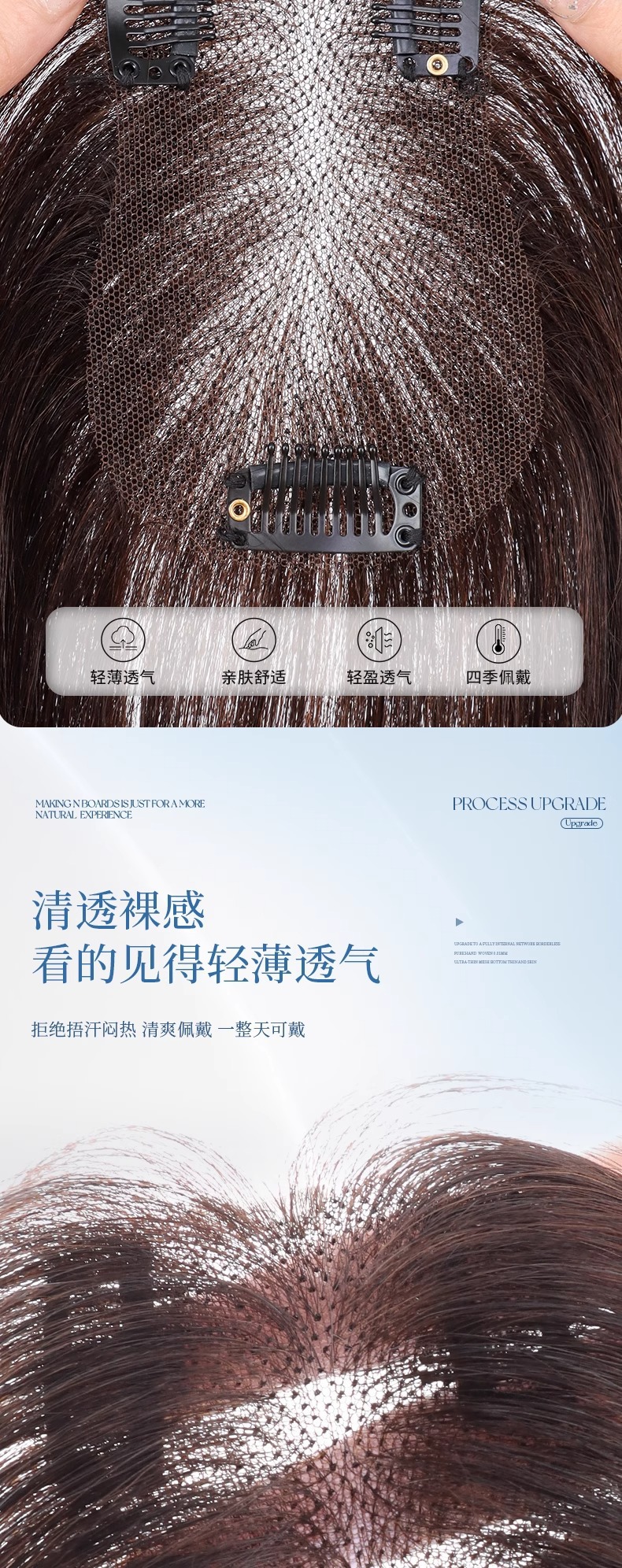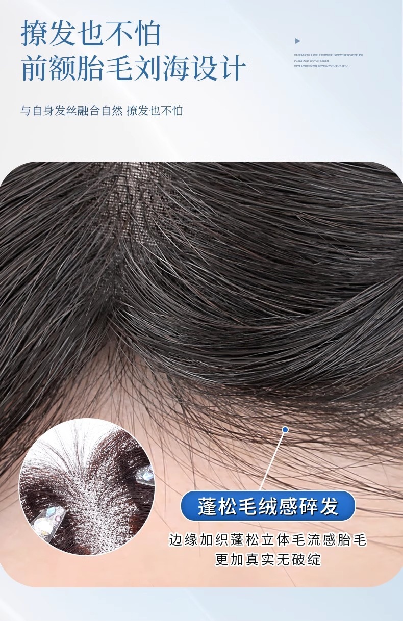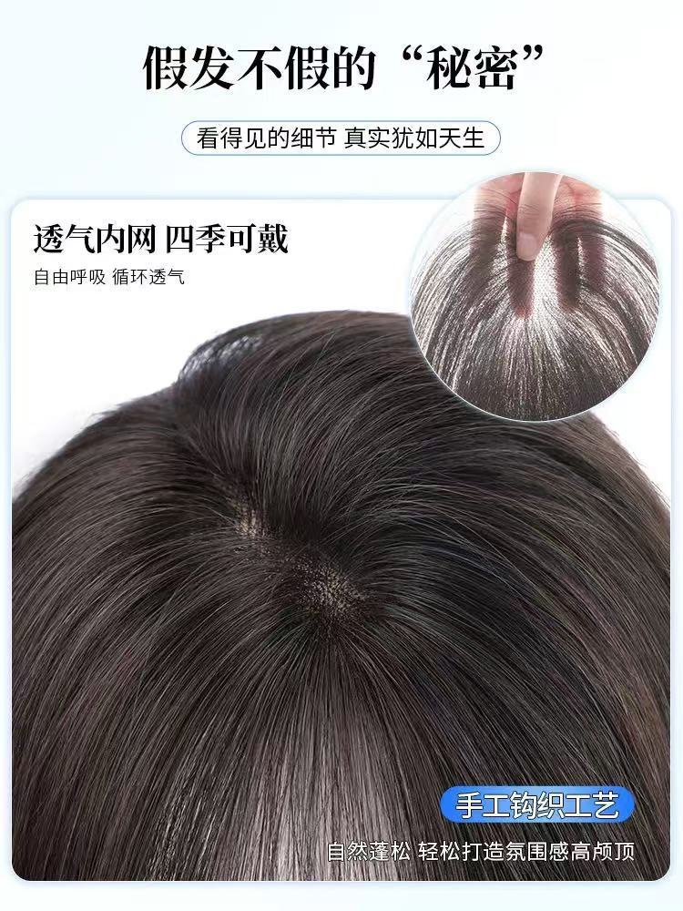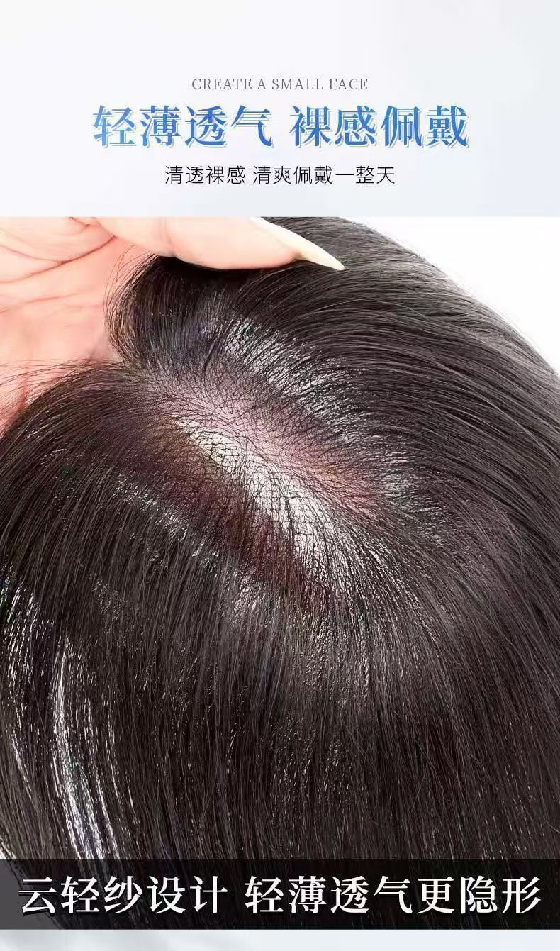 Peruca de mujer, cabello alto, cabello alto, cabello blanco tejido con mano, frente natural, franjas falsas
