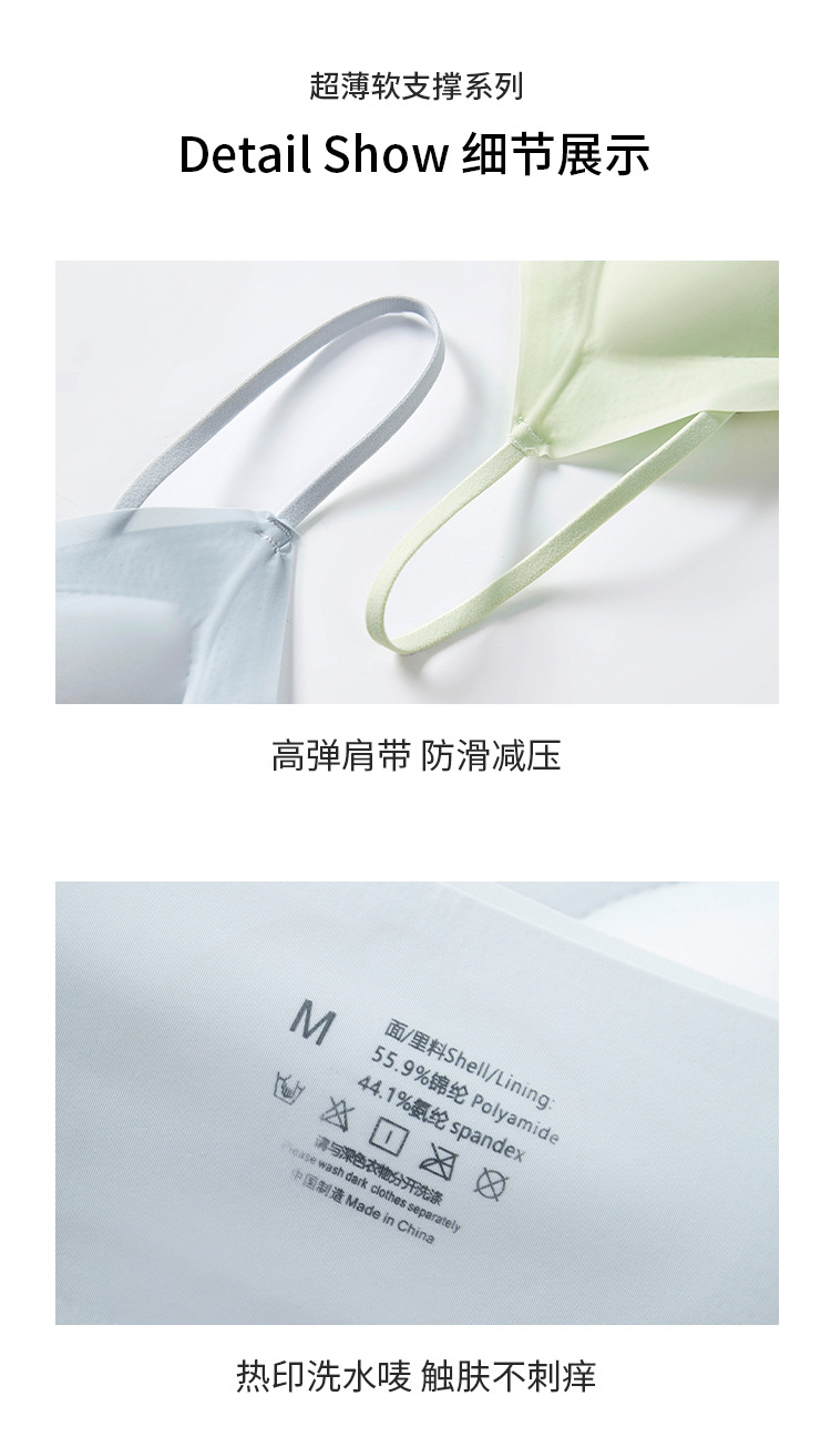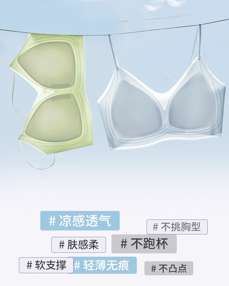 Super delgada ventilación de hielo fija taza cinturón de belleza cojín de pecho ropa interior sin marcas de mujer chaleco delgado acondicionamiento físico cinturón de hombro delgado bra