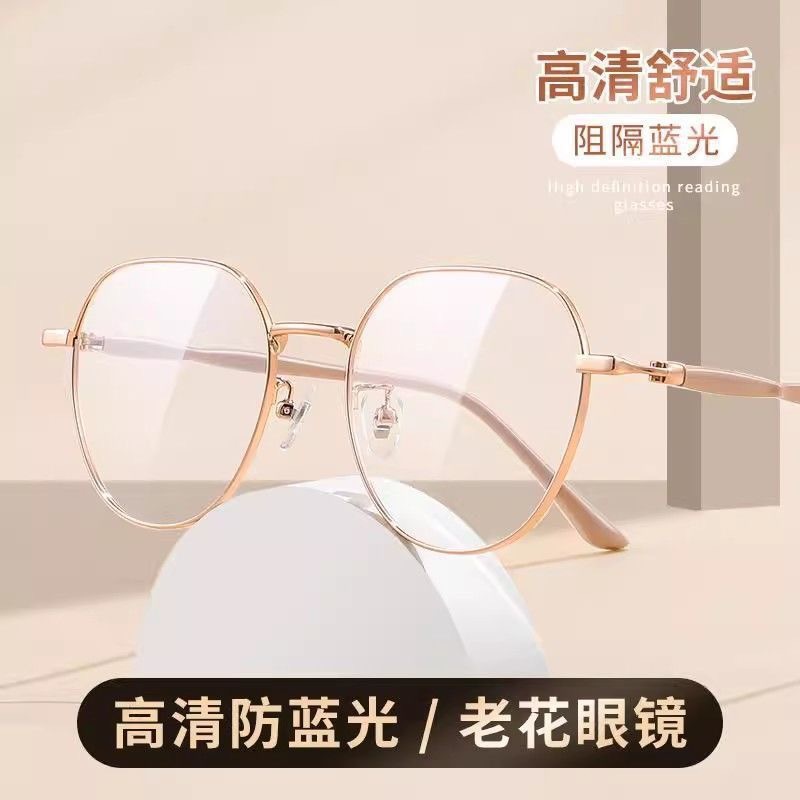 Gafas de lectura explosivas de celebridades de Internet, marco grande de metal, moda, de mediana edad y ancianos, gafas de lectura anti-luz azul de alta definición ultraligeras y cómodas