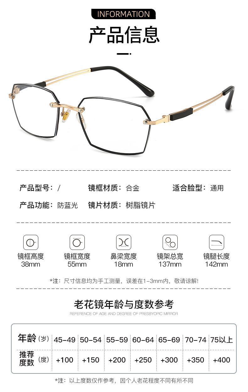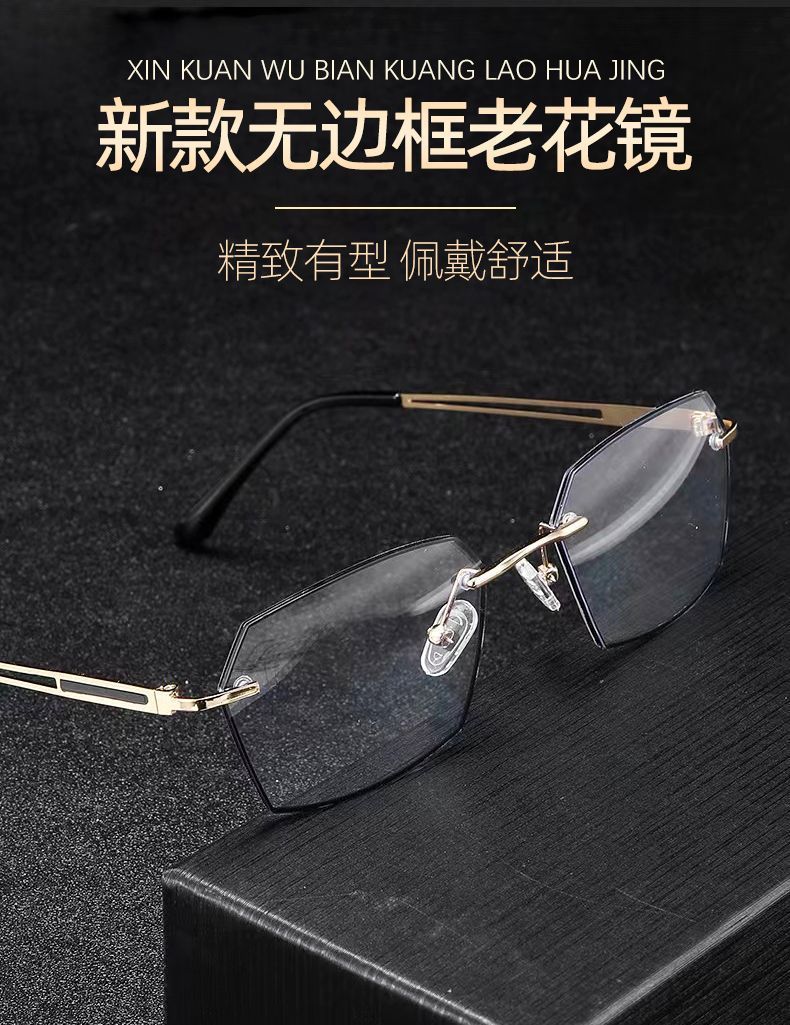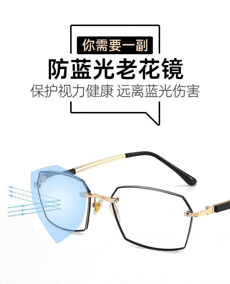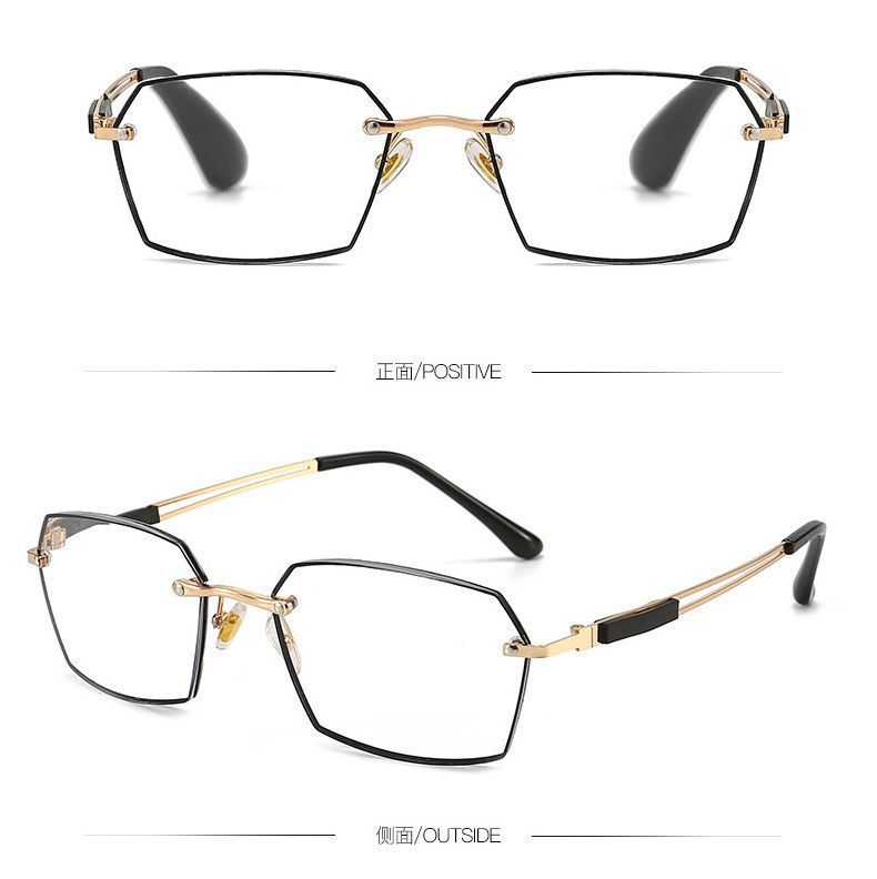 Metálico cuadrado gafas de luz nueva moda sin marco gafas de luz ultra ligera HD anti-luz azul lectura gafas de luz de alta calidad