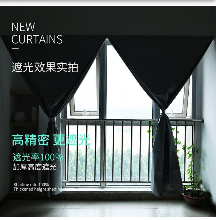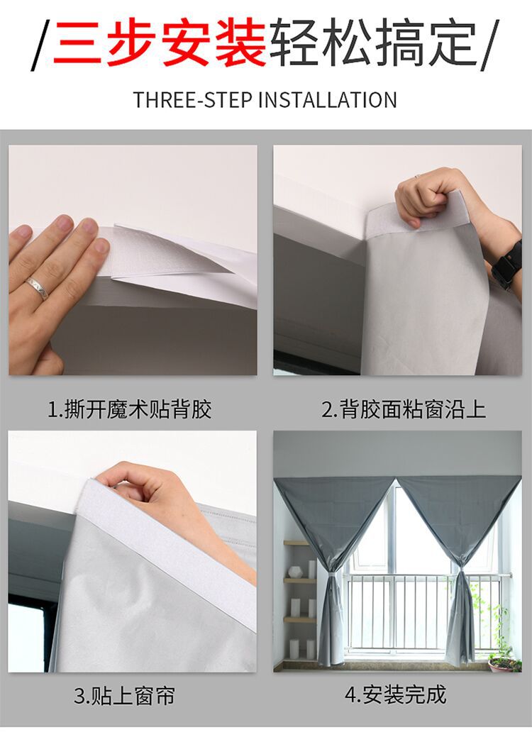 Cortinas de cinta mágica sin taladro, tela opaca, parasol para dormitorio, bloqueo de luz para ventana, protección UV, aislamiento térmico, protección solar.